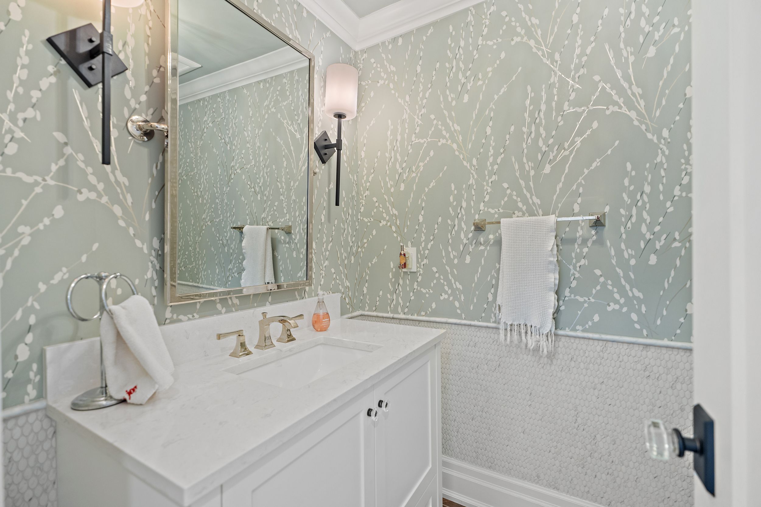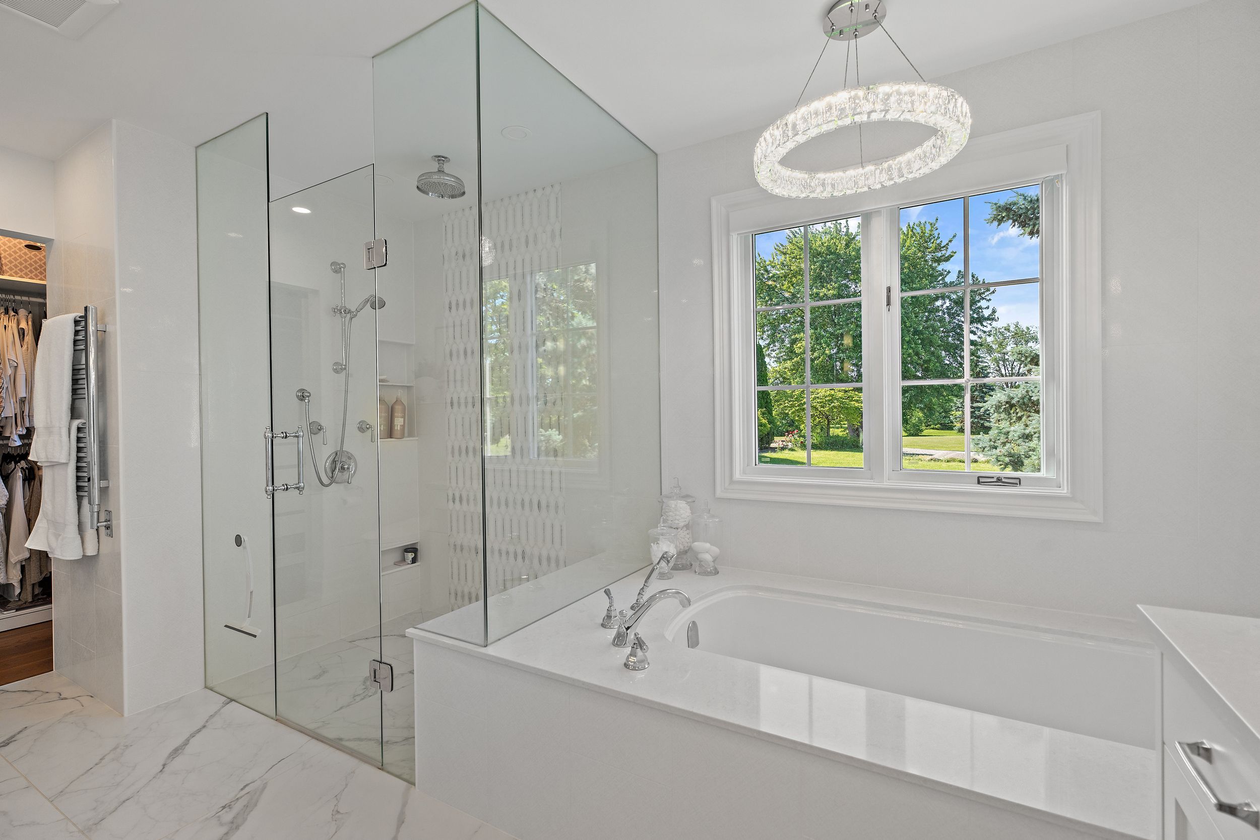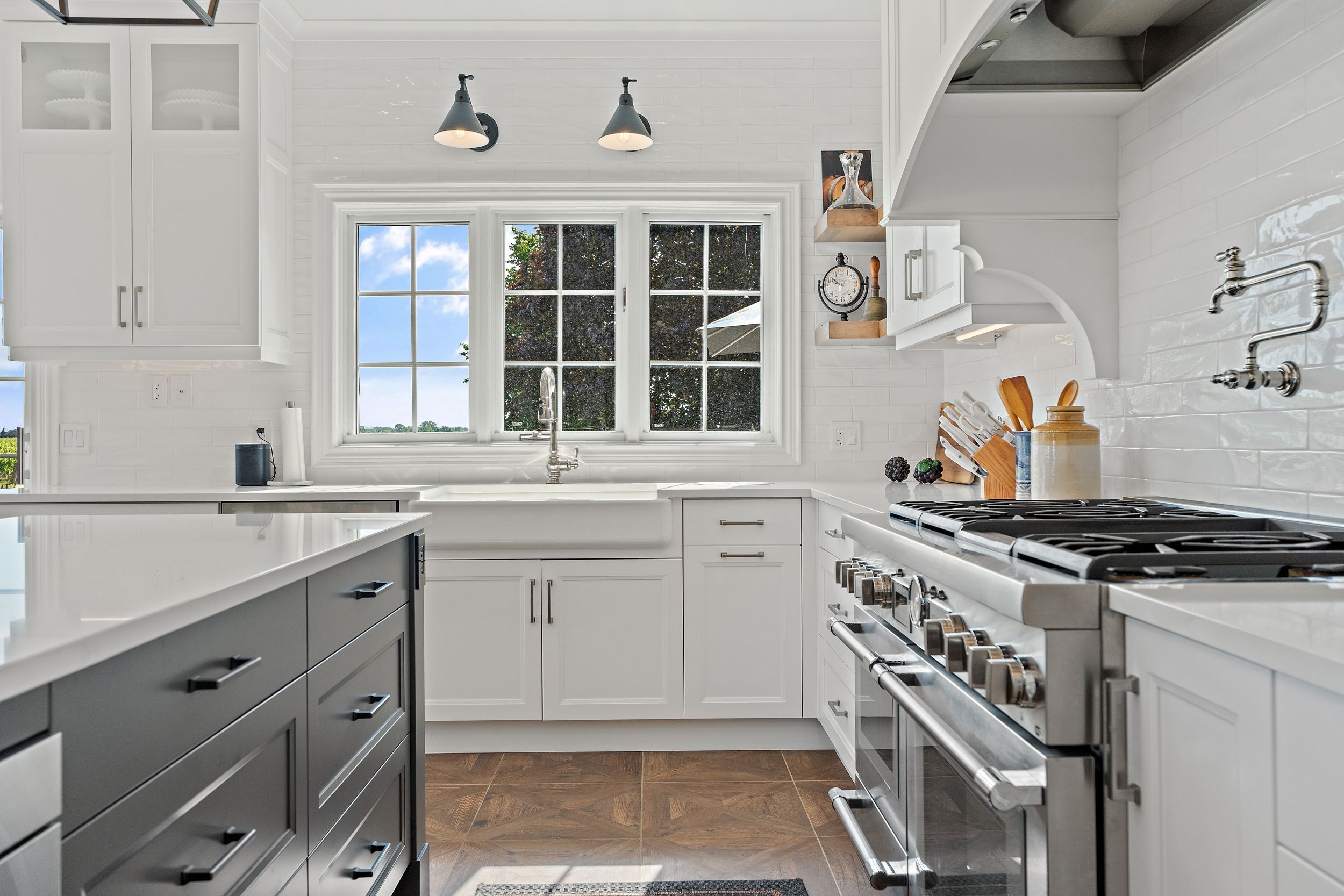 • Chef's kitchen with double quartz islands and premium Thermador appliances.