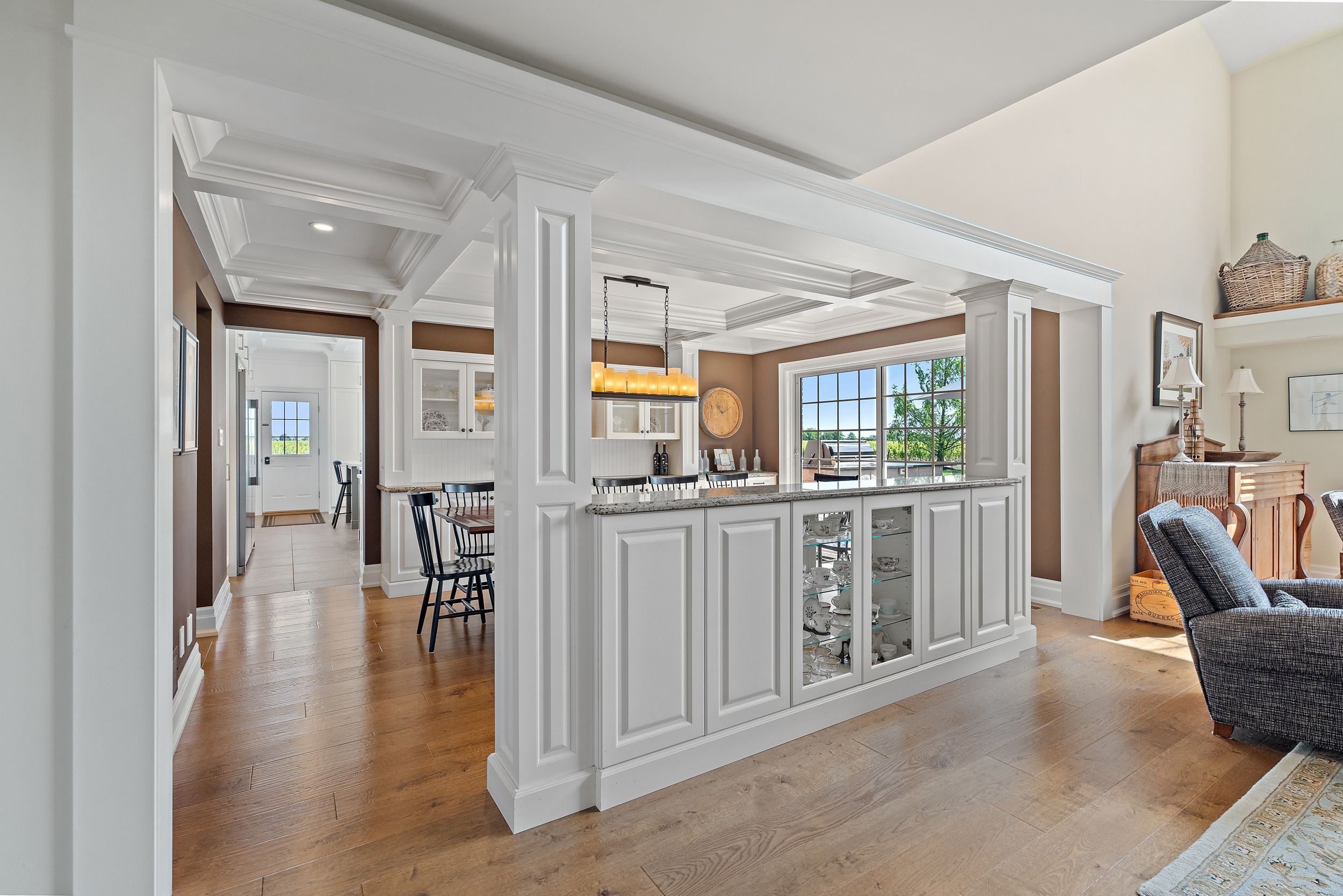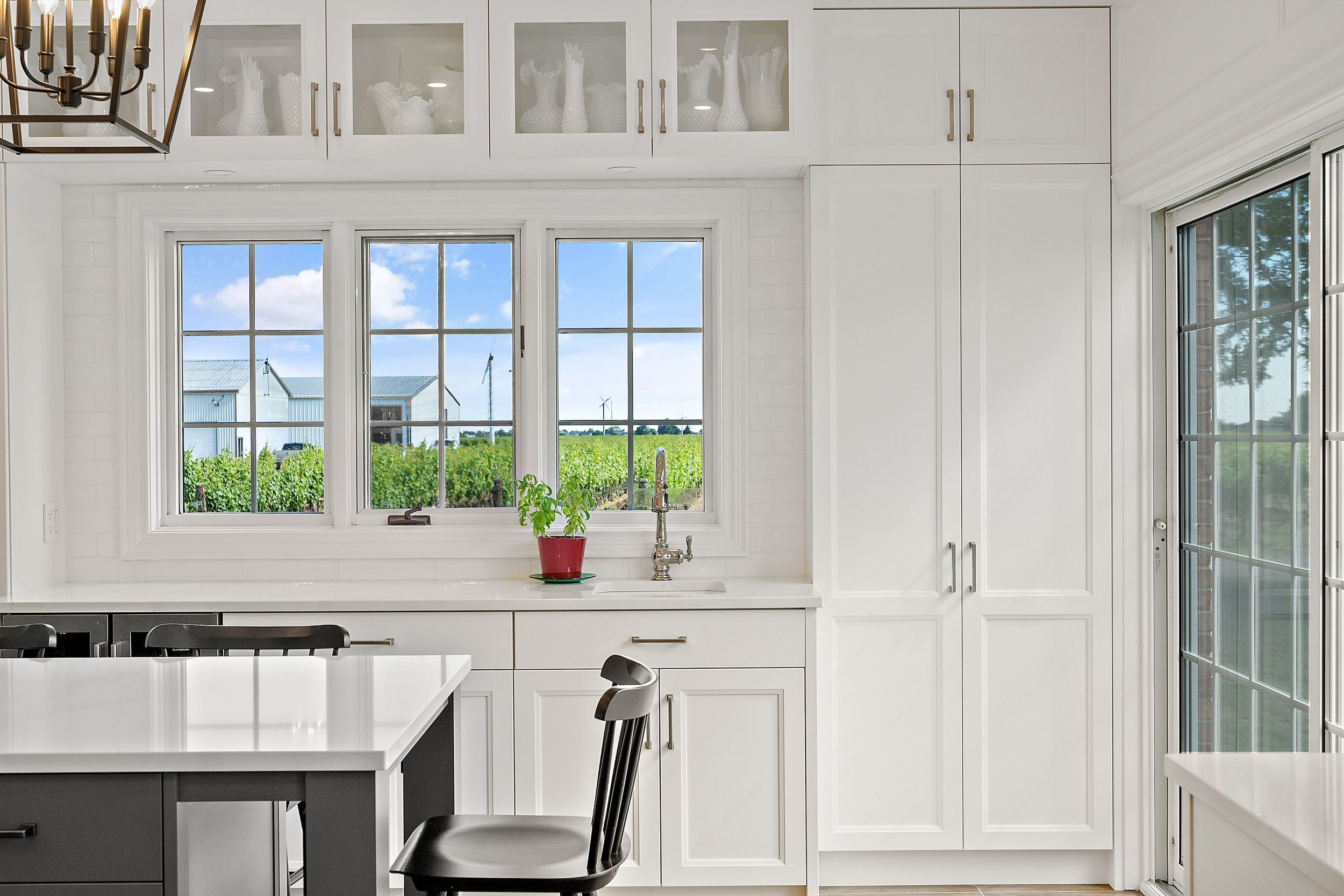 Boasting over 3,400 square feet of beautifully designed living space, this exceptional 3+2 bedroom, 3+1 bathroom estate is set on a serene 1. 6-acre lot in the heart of niagara-on-the-lake, surrounded by picturesque vineyard views. Thoughtfully renovated in 2022 by wendy edwards design inc., the home seamlessly blends contemporary elegance with elevated functionality. The main living space impresses with soaring 16-foot ceilings in the great room, anchored by a striking floor-to-ceiling stone wood-burning fireplace. The chef's kitchen is a true showpiece, featuring double quartz islands and a 48" dual-fuel thermador range with steam oven, six-burner gas cooktop with electric griddle, electric oven, and oversized double exhaust fan-perfectly designed for entertaining and everyday luxury. Two bedrooms offer private balconies, creating tranquil retreats with stunning views. A dedicated home office with custom built-ins and a 9-foot coffered ceiling provides an inspiring workspace. The fully finished lower level offers a complete in-law suite with its own kitchen, bathroom, laundry, gas fireplace, and additional bedrooms-ideal for extended family or guests. Outdoor living is equally impressive, highlighted by a 42" weber natural gas bbq equipped with rotisserie, griddle, sear station, and smoker-perfect for hosting in true wine country style. With bell fibre internet, natural gas, and city water services, this home combines modern convenience with the peaceful beauty of its surroundings. A rare opportunity to experience refined country living in one of niagara-on-the-lake's most sought-after settings-truly an exceptional place to call home.