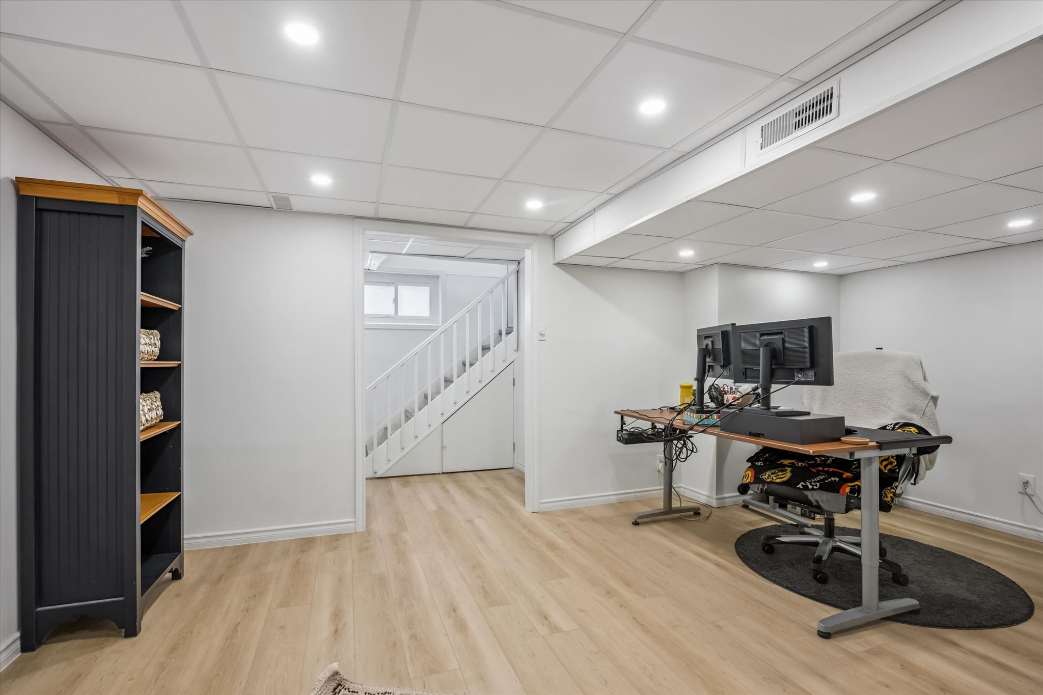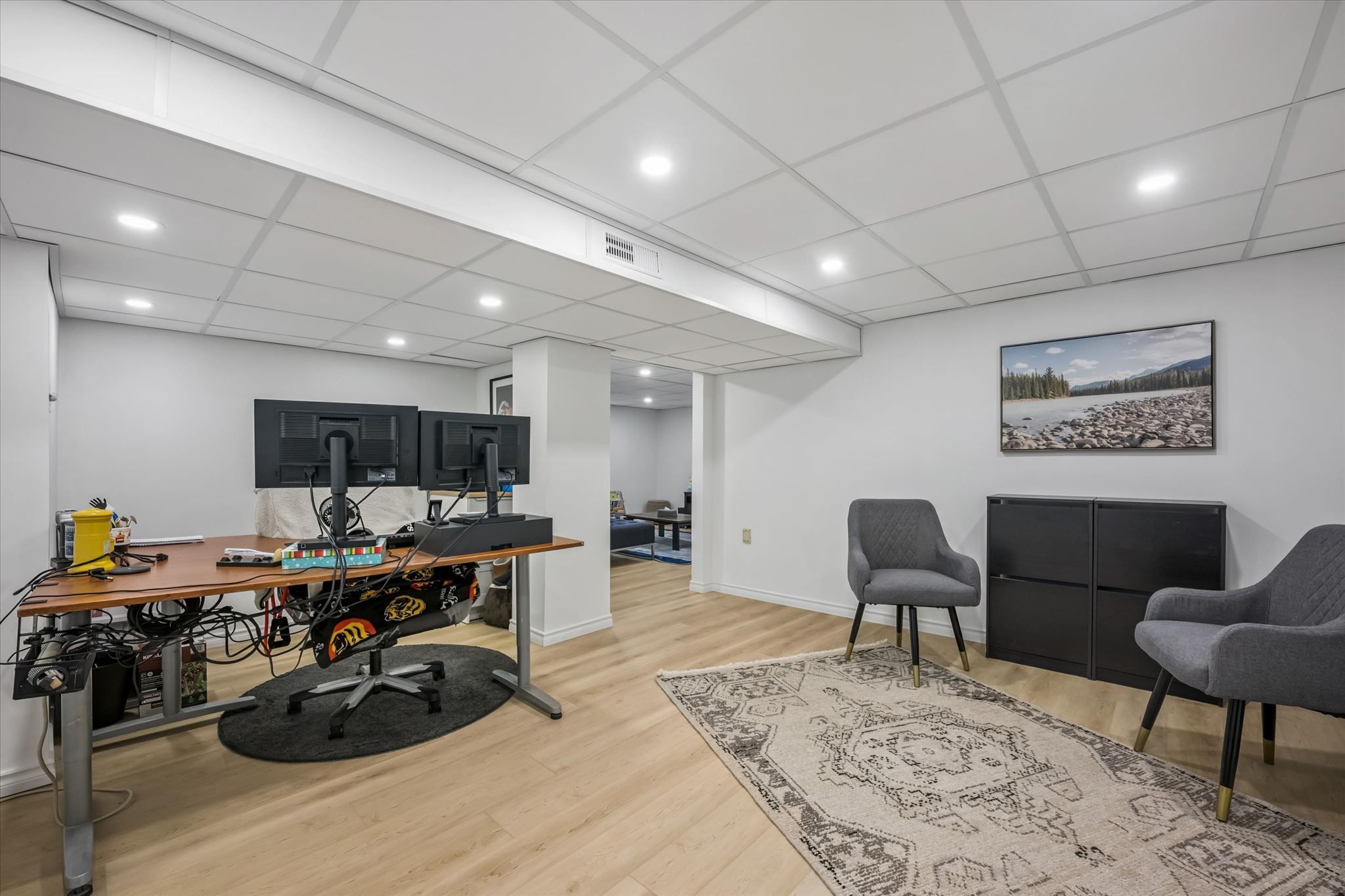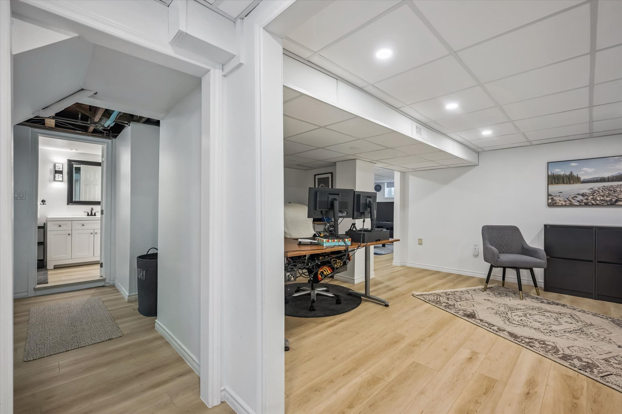 • Refinished lower level offers versatile spaces for home office or gym.