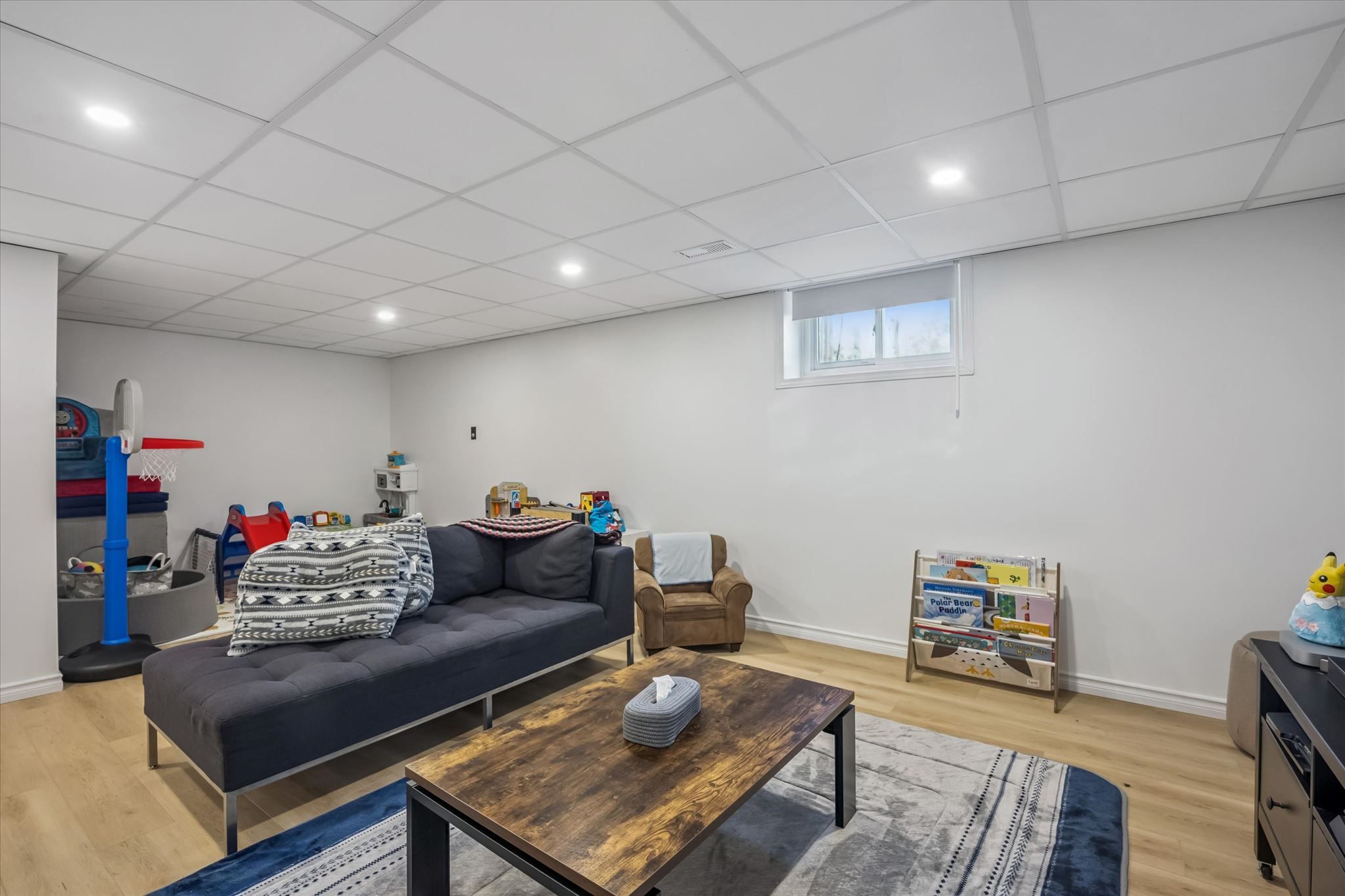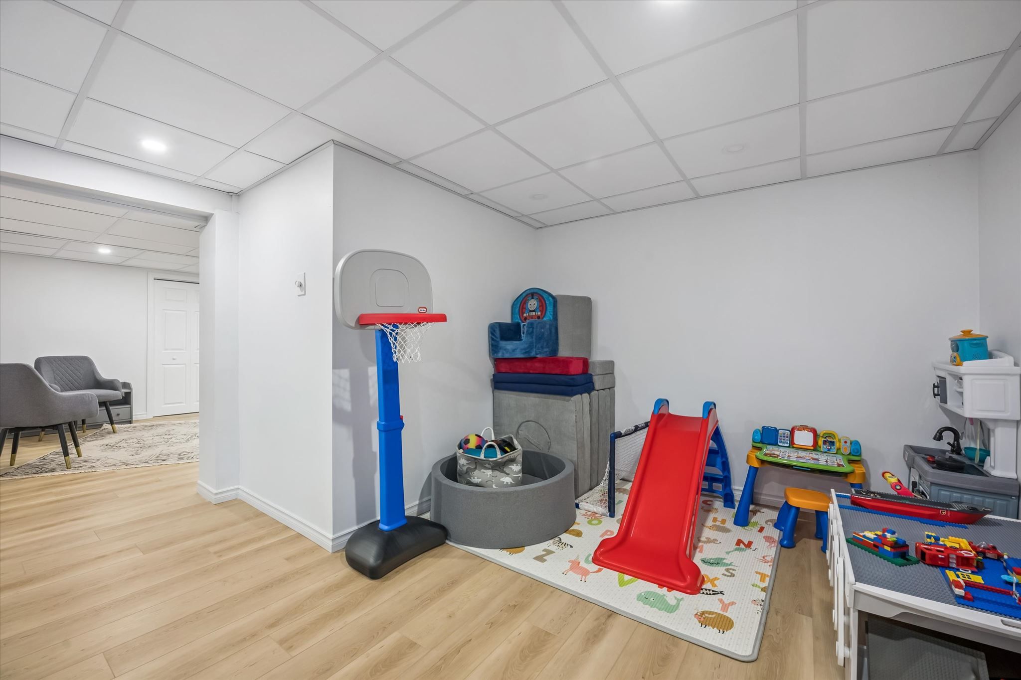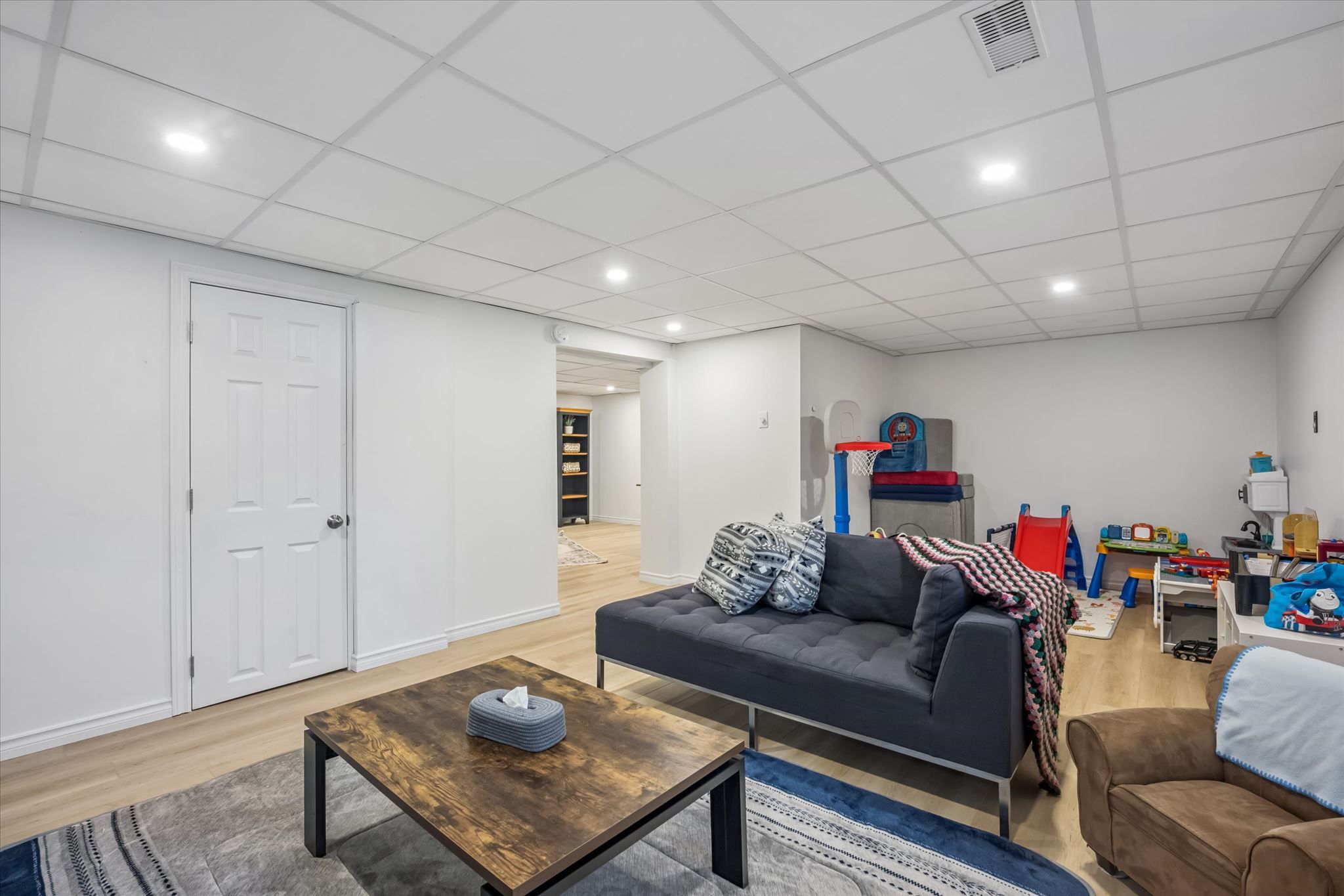 • Refinished lower level offers versatile spaces for home office or gym.
