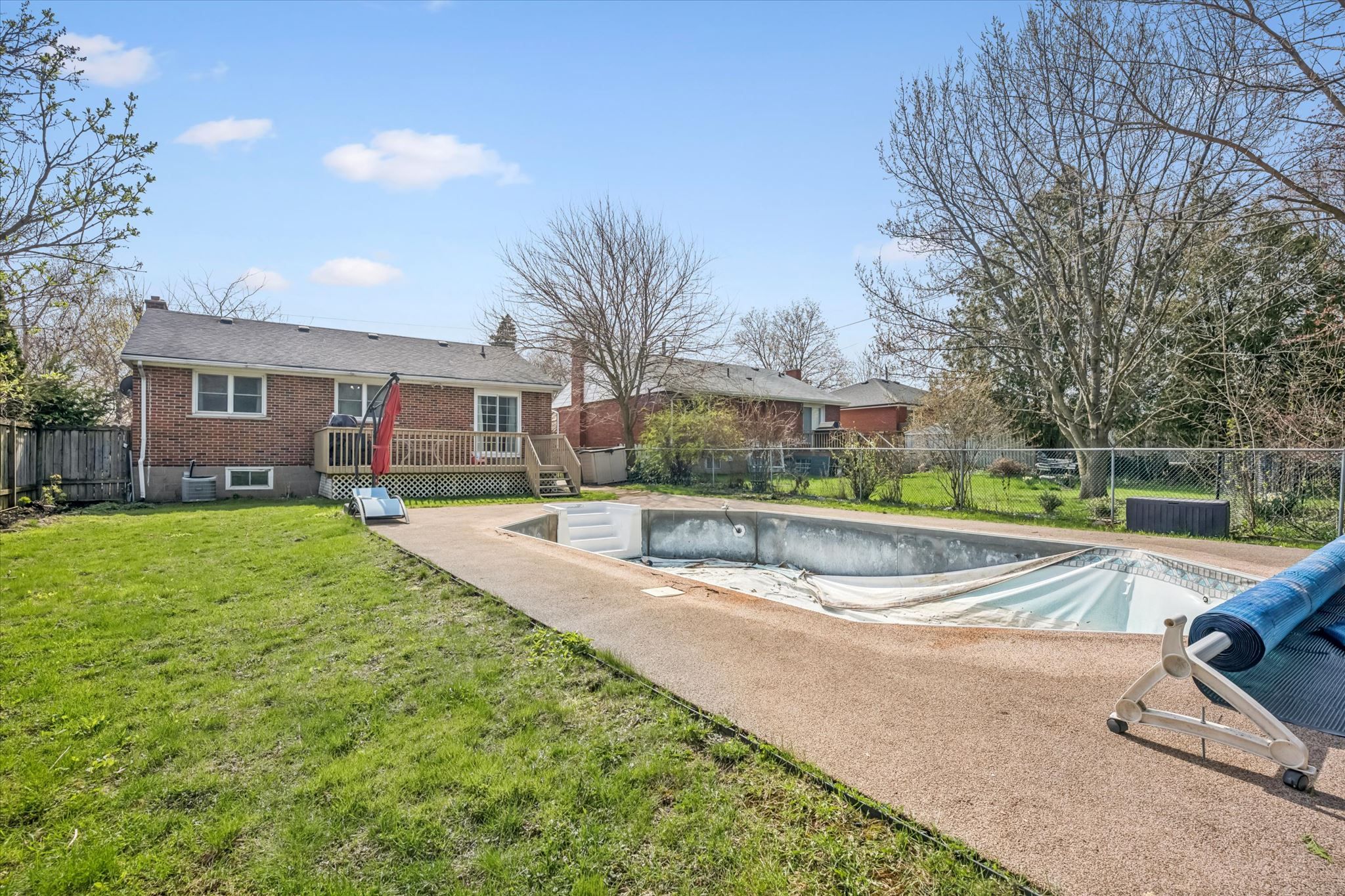 Who needs a cottage? Situated on a quiet street, this charming home sits on a large 50x120 ft. Lot complete with an in-ground pool, with a new liner being installed in may, just in time to enjoy the warmer months. Welcome to 1275 royal drive, ideally located in burlington's family-friendly mountainside area. The home offers 3 bedrooms, including one with sliding doors leading to a spacious deck and fully fenced backyard with plenty of room for kids to play. Inside, you'll find a carpet-free layout featuring open-concept living and dining with a cozy wood-burning fireplace, plus an eat-in kitchen and 2 full bathrooms ideal for everyday living. A separate entrance to the refinished lower level (2024) provides added flexibility, with two generous spaces perfect for a home office, rec room, playroom, or gym, along with ample storage, a cold room, and a dedicated laundry area, offering ~1,800 sq. Ft. Of total living space. Recent updates include furnace and hot water tank (2024) & pool heater (2023). Conveniently located with quick access to the qew, 403, and 407, as well as transit, schools, community centre, library, mountainside pool, shopping, parks, and wooded trails, this home offers an ideal balance of comfort, space, and accessibility. If you value space, outdoor living and a welcoming neighbourhood, book a private tour!