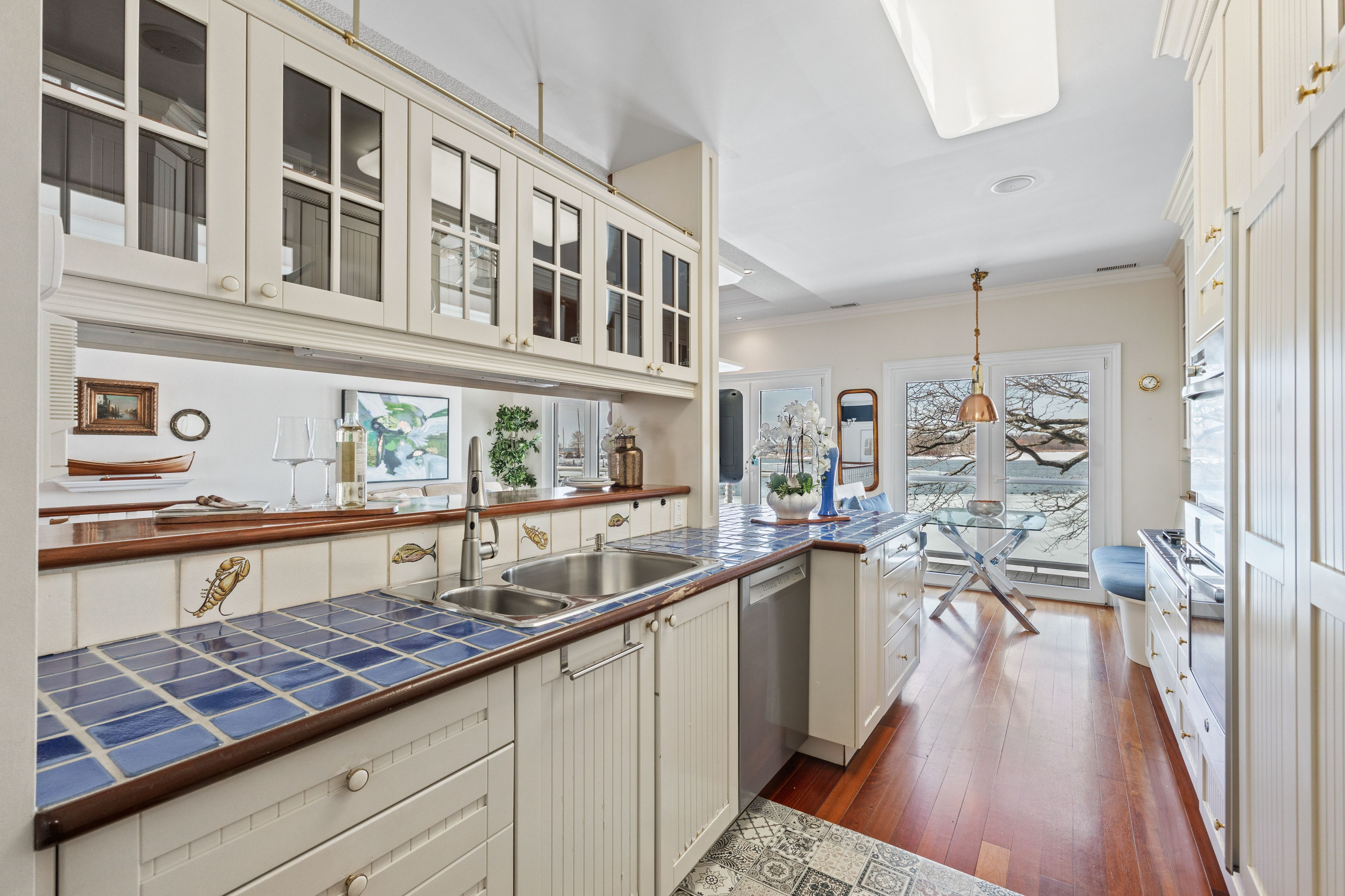 • Second-story kitchen and living room with breathtaking water views.