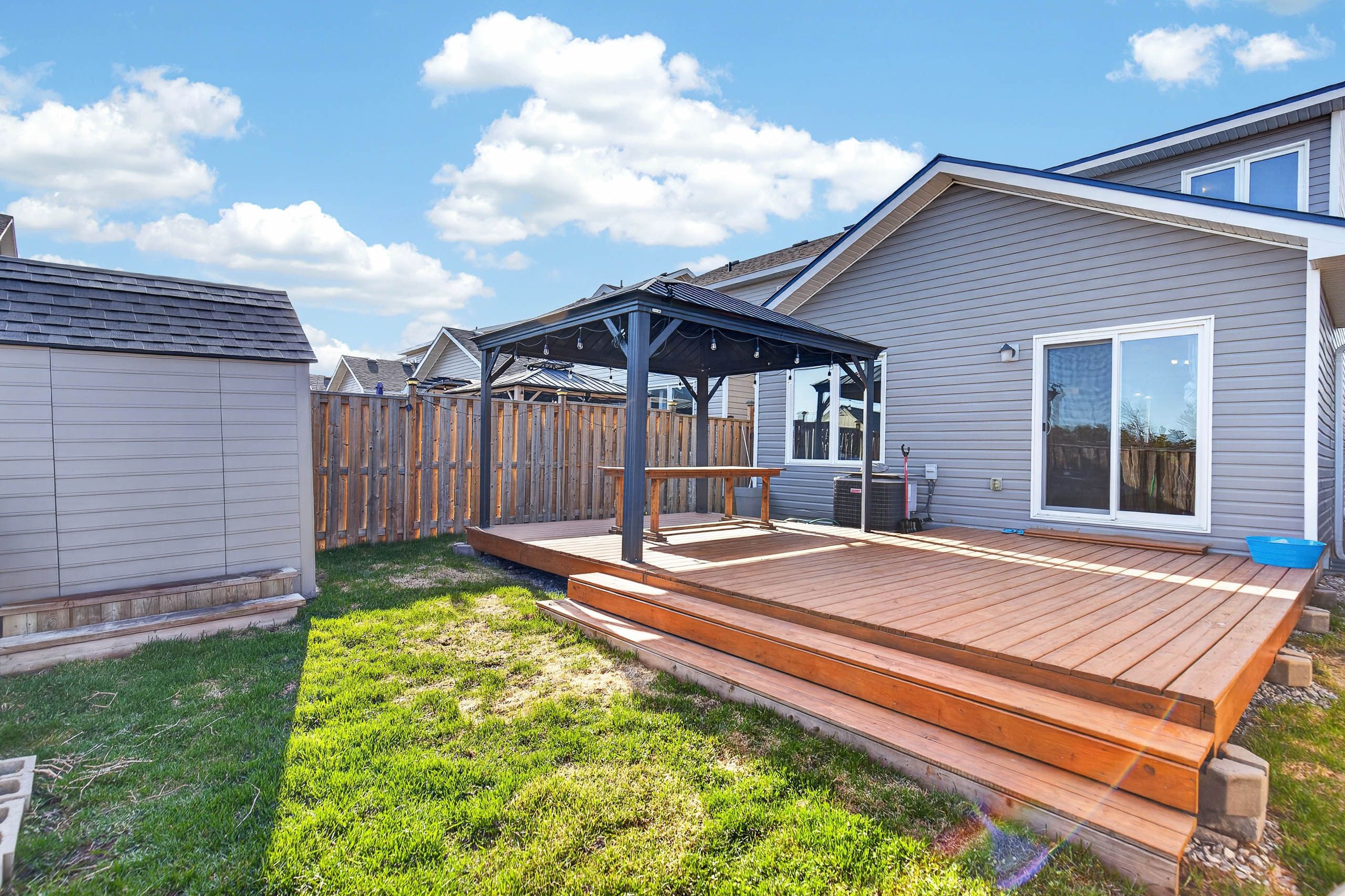 Welcome to popular lyndenwood and this well maintained 2 storey home. The main floor boasts direct garage access, powder room, laundry, open concept kitchen - dining room - living room and patio door to your beautiful newer deck and gazebo in your fully fenced yard. Upstairs, you'll find three bedrooms, including primary suite with ensuite and walk-in closet as well as a second full bath. The basement offers storage, a third full bathroom and large rec room (partially finished). The best part - this home has a brand new energy efficient metal roof and the attic has been spray foamed - who doesn't love lower heating bills?! This one is a no brainer!