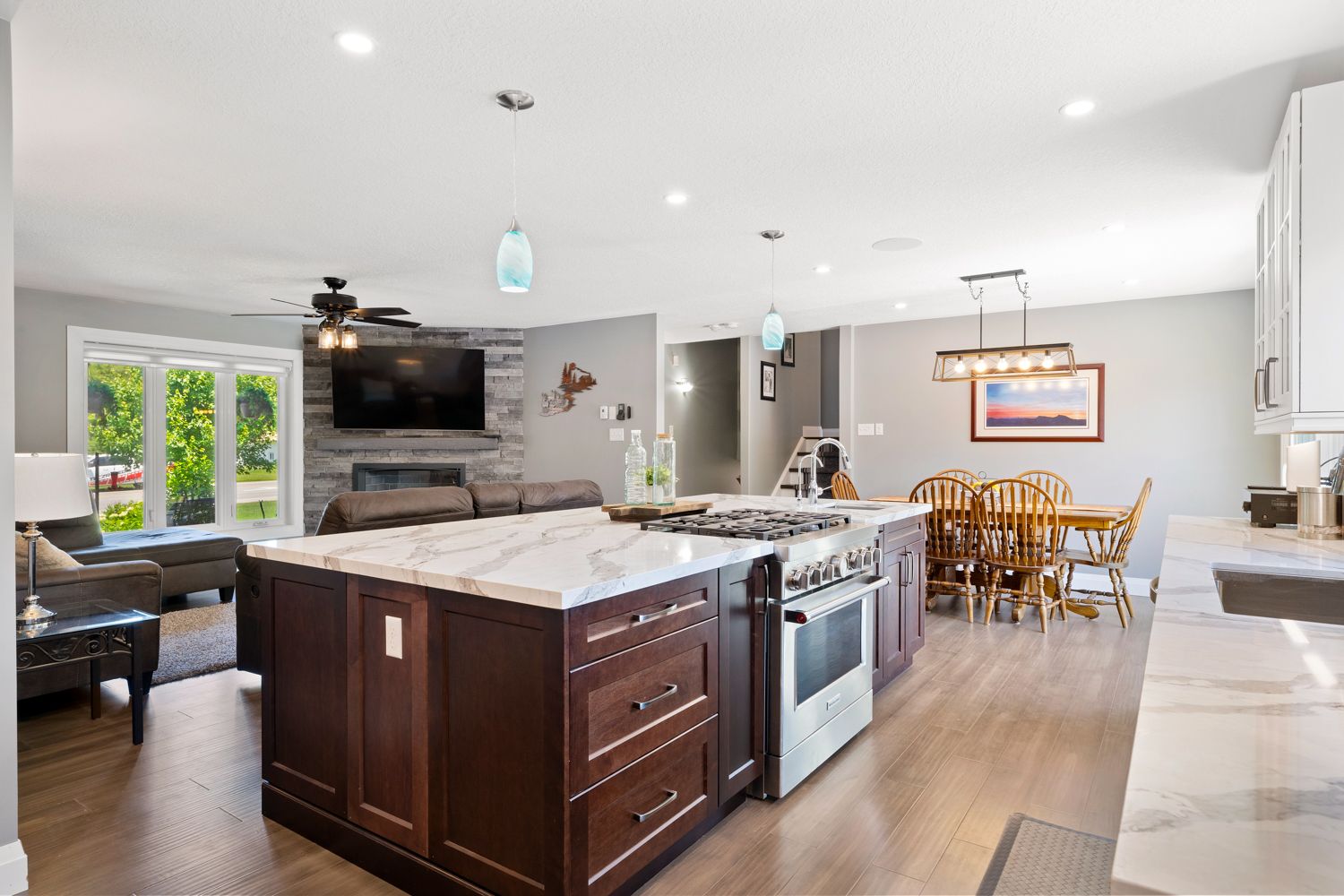• Large open-concept kitchen perfect for family gatherings and cooking.