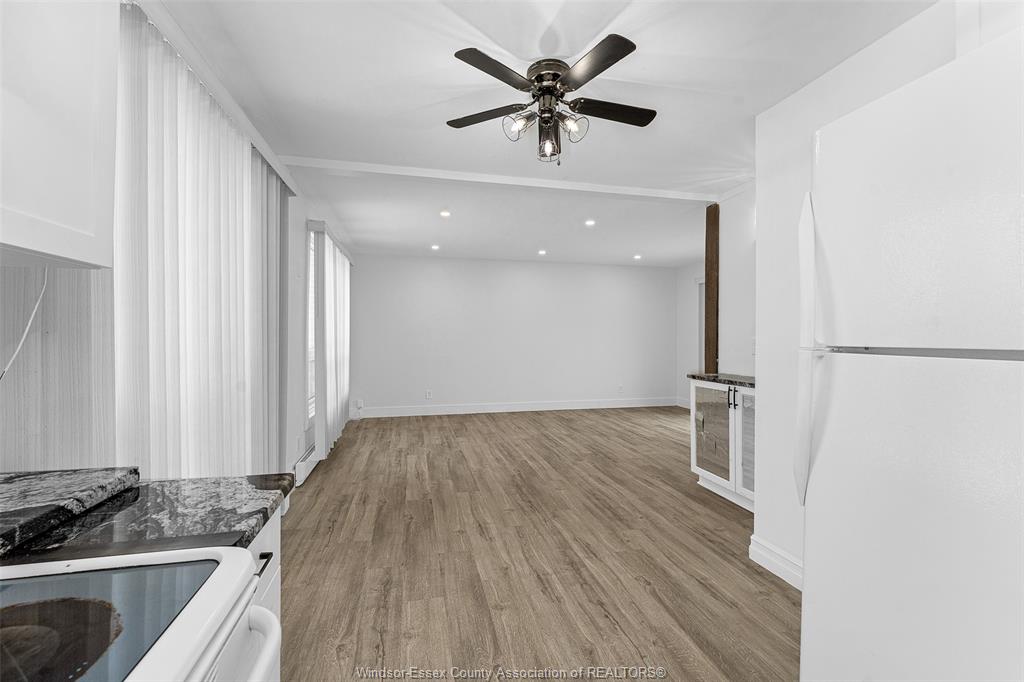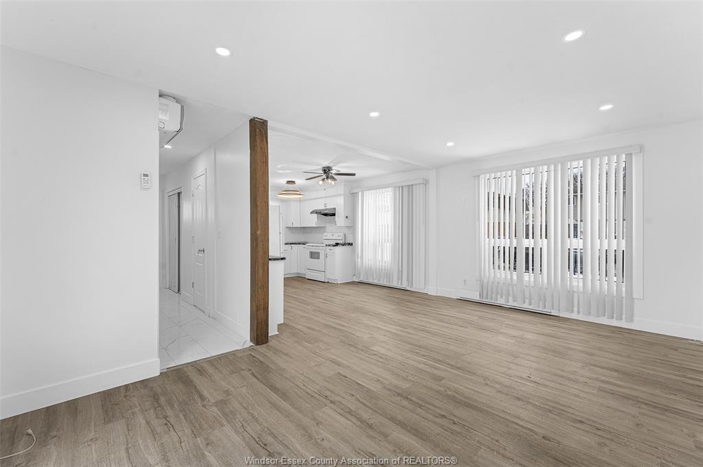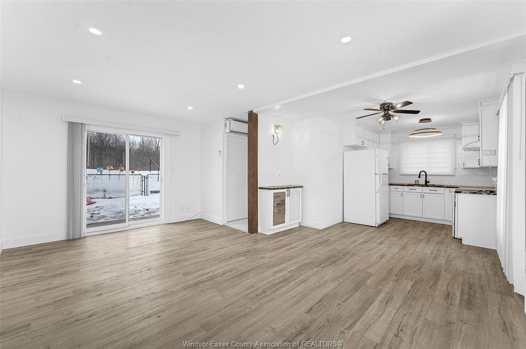• Oversized living room with patio doors leading to a private yard.