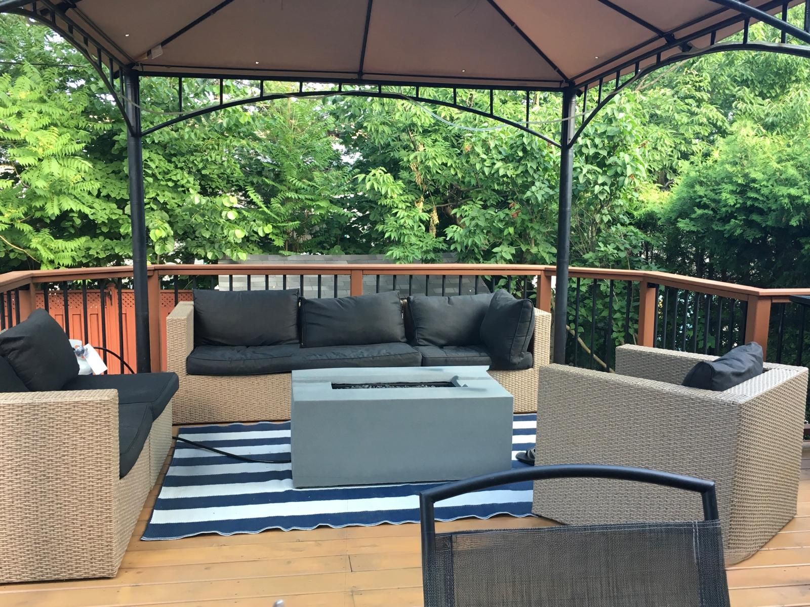 • Fully fenced backyard with a deck and gazebo for outdoor enjoyment.