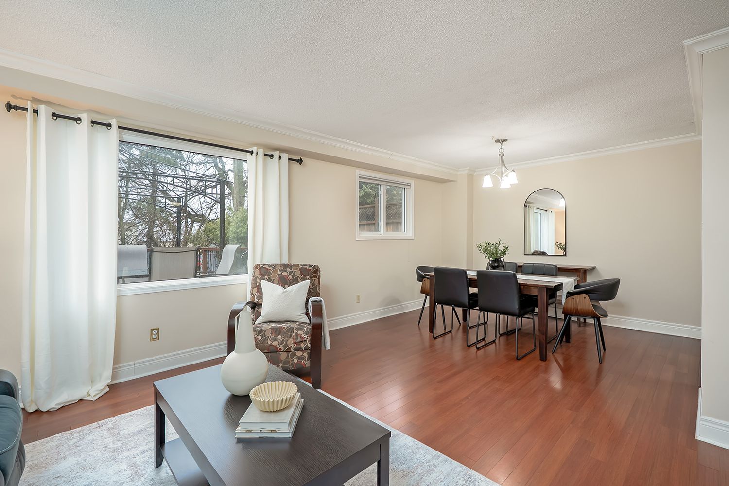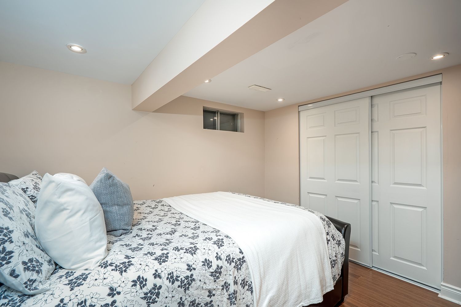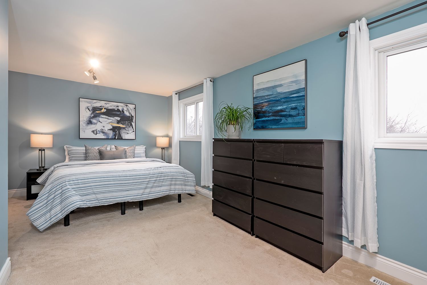 Welcome to this 3+1 bedroom, 1. 5 bathroom semi-detached home offering approximately 1855 sq ft of living space on a deep 25. 36 x 131. 21 ft lot in a family-friendly neighborhood. The eat-in kitchen is equipped with cabinetry with crown moulding and under-cabinet lighting, a custom backsplash, stainless steel double sink, black appliances, plus california style shutters. The living and dining room features wood-look flooring, crown moulding, and a large picture window creating a comfortable space for everyday living and entertaining. A small side addition with separate entrance provides flexible space ideal for a home gym, studio or additional storage. Upstairs, the spacious primary bedroom (previously two bedrooms) features two closets and could easily be converted back if desired. Two additional bedrooms offer double closets and updated light fixtures. The main bath includes a soaker tub with shower and a vanity with stone countertop. The finished lower level offers additional living space with a potential guest room or playroom, laundry area and ample storage. Enjoy the fully fenced backyard with mature trees, a large deck (2019) with gazebo, grassy area and a shed, perfect for relaxing or entertaining. Conveniently located close to schools, parks, amenities and with easy access to the qew, 403 and 407.
