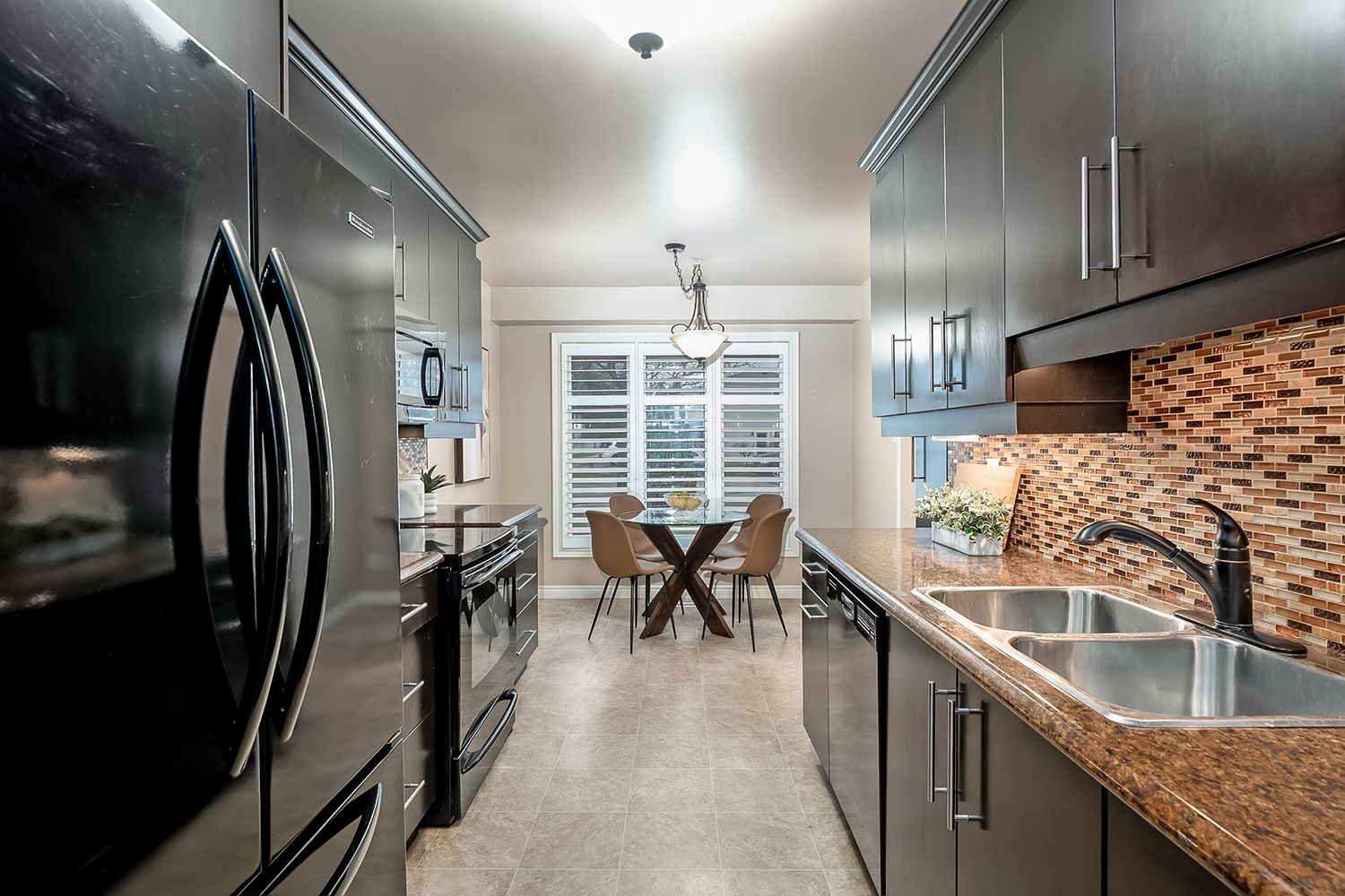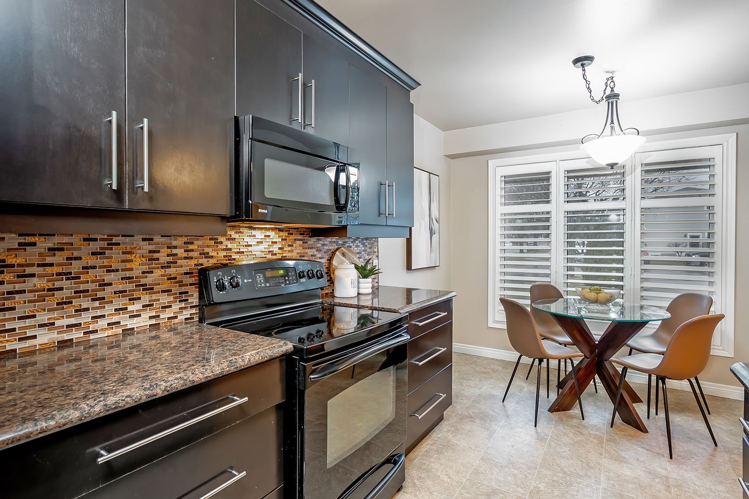 • Eat-in kitchen features crown moulding, stainless steel sink, and modern appliances.