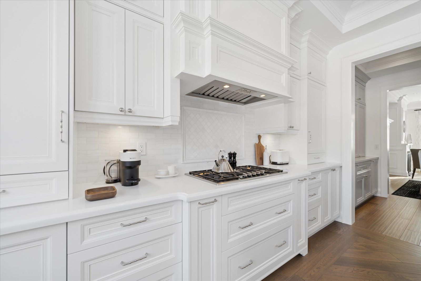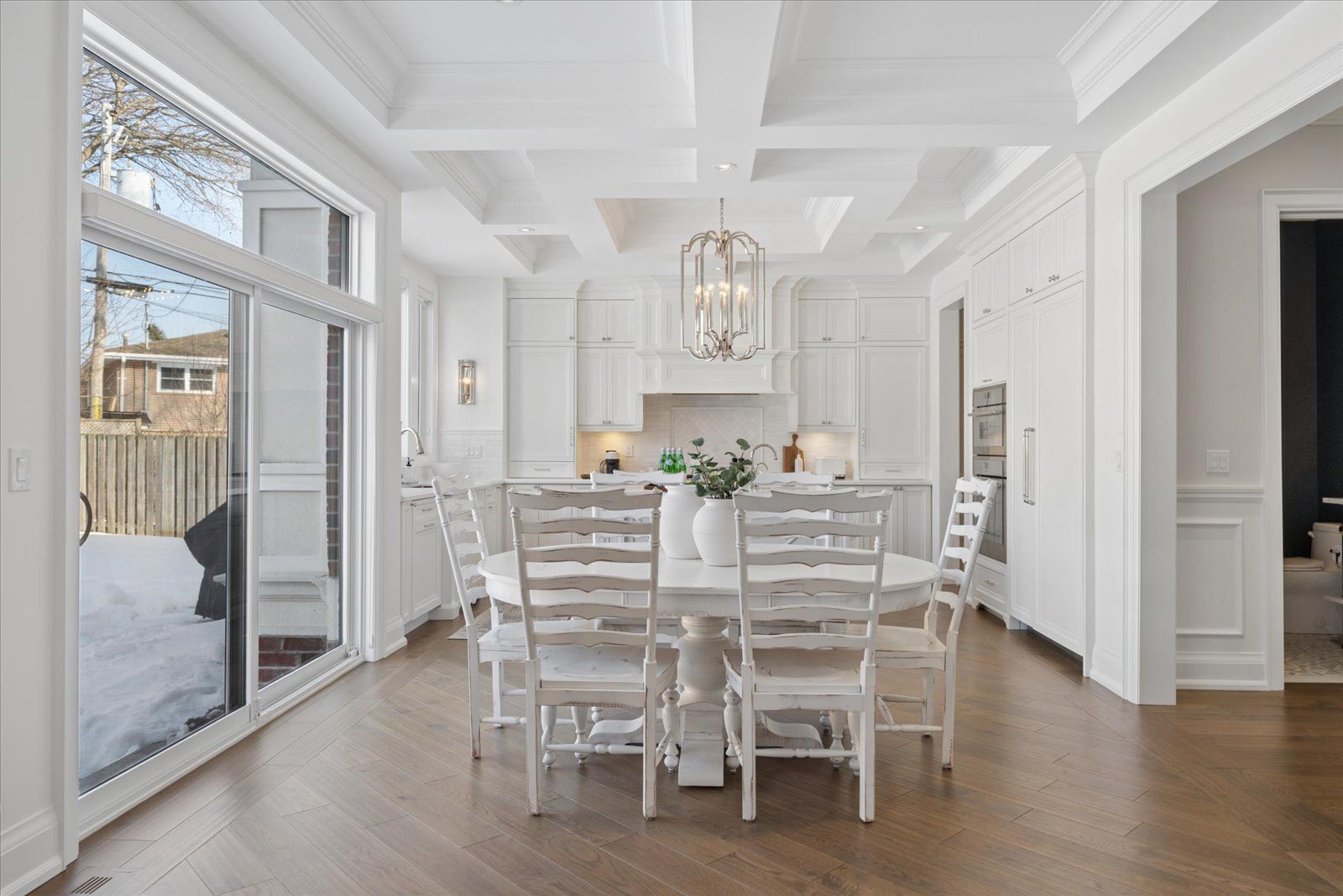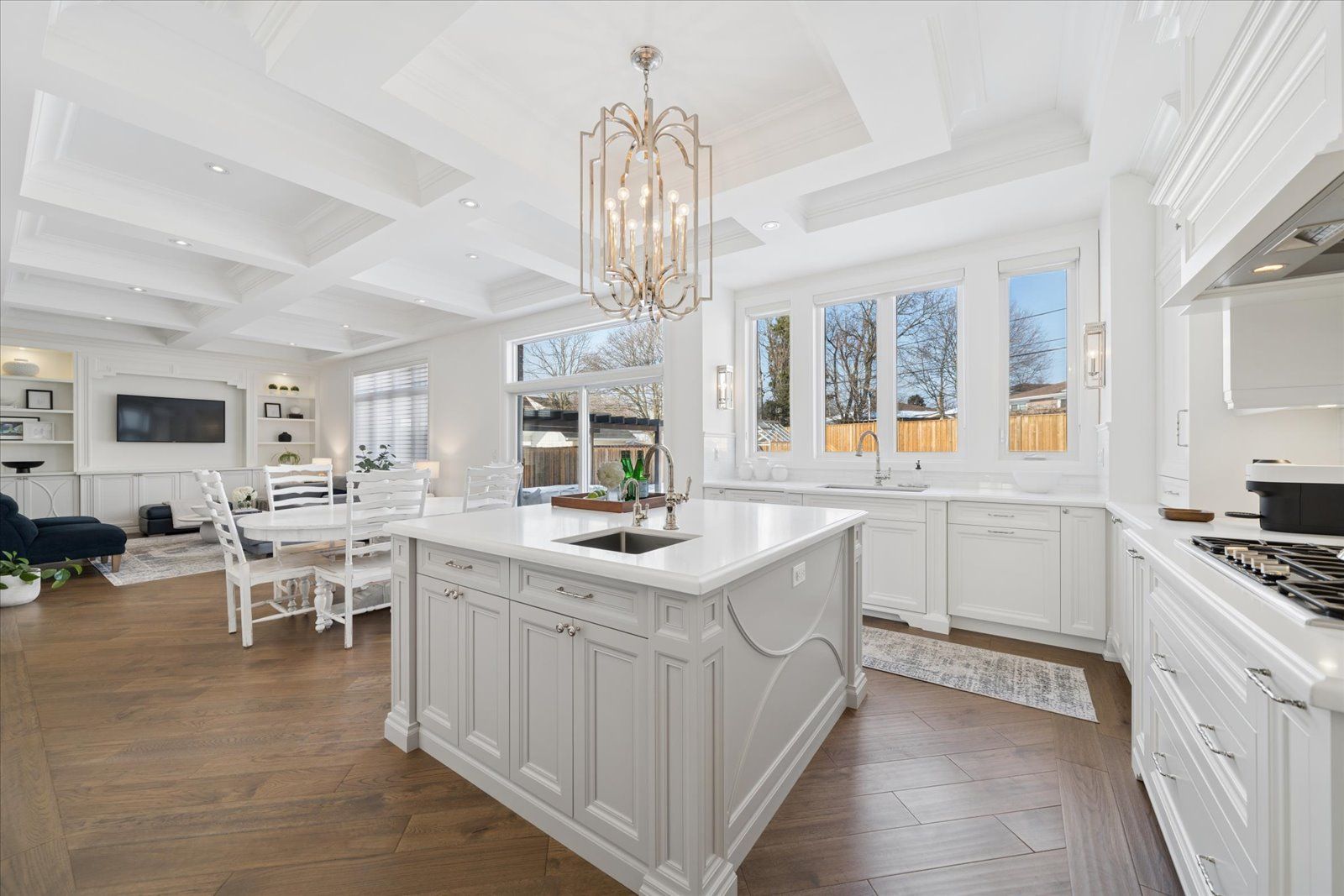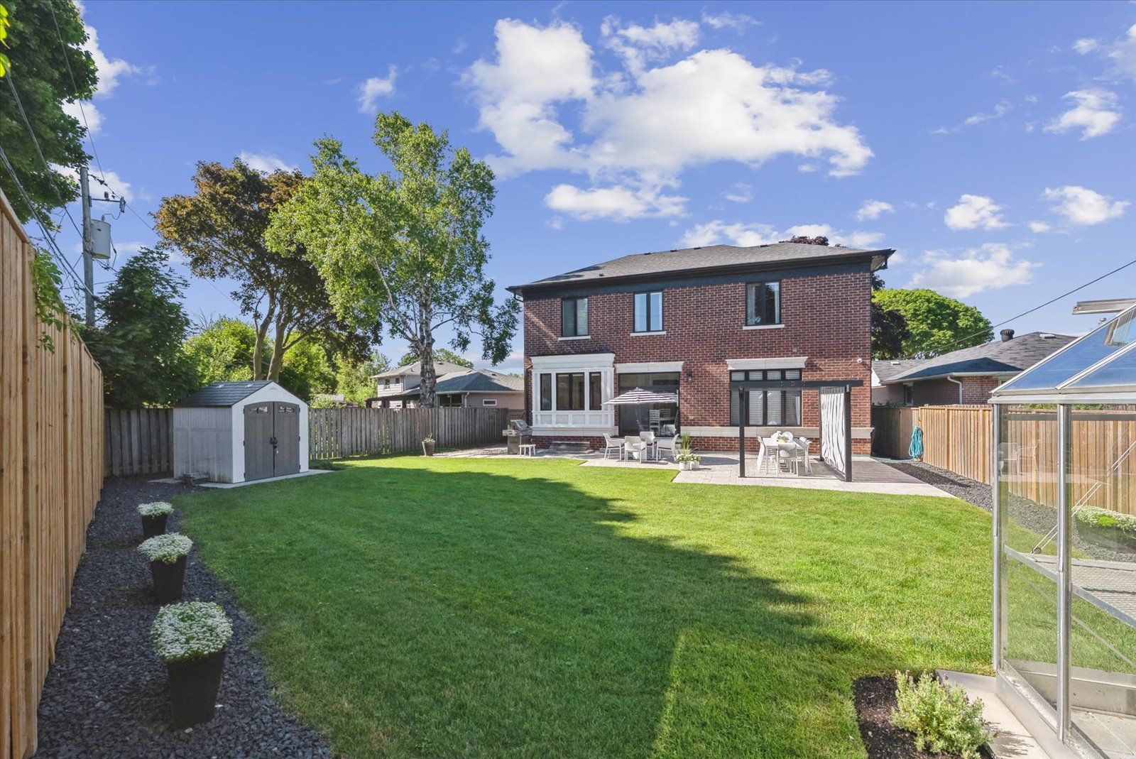 A masterpiece of modern luxury in pickering's coveted bay ridges by the lake. Custom-built in 2019, this spectacular and grand georgian -style residence offers over 4,000 sq. Ft. Of total living space defined by top-of-the-line finishes and architectural scale. The journey begins at the grand 8-foot fiberglass front door, opening to a foyer inlaid with imported italian marble mosaics and a soaring open-concept floor plan. With 10-foot ceilings on the main level and 9-foot on the second, the home feels incredibly bright and airy, anchored by 6-inch canadian-made oak hardwood floors, and elegant coffered ceilings. The heart of the home is a chef's dream kitchen, featuring a professional thermador appliance package with panelled integration, caesarstone countertops and an impressive butler's pantry. The living room features a custom marble surround for the gas fireplace. Every detail has been curated for the discerning buyer, from the powder room's marble vanity and italian marble floors to the custom blinds and draperies crafted from imported italian fabrics. The second level continues the theme of excellence with custom wainscotting and custom organizers in every bedroom closet. The primary retreat is a true sanctuary, boasting a spa-like ensuite with imported italian tile, double caesarstone vanities, freestanding soaker tub, and an oversized shower with drying area. The quality craftsmanship and luxury extend into the professionally finished 9-foot ceiling basement, featuring oversized windows that flood the full in-law/nanny suite with natural light. The exterior is equally impressive, showcasing custom precast stonework, a pool-sized backyard with an oversized interlock patio, a pergola, and a custom-built greenhouse. The garage features polyaspartic flooring, wall-to-wall storage, and an electric car charger. Nested on a quiet court steps from the lake, beach, parks and schools. This home is truly a rare find.