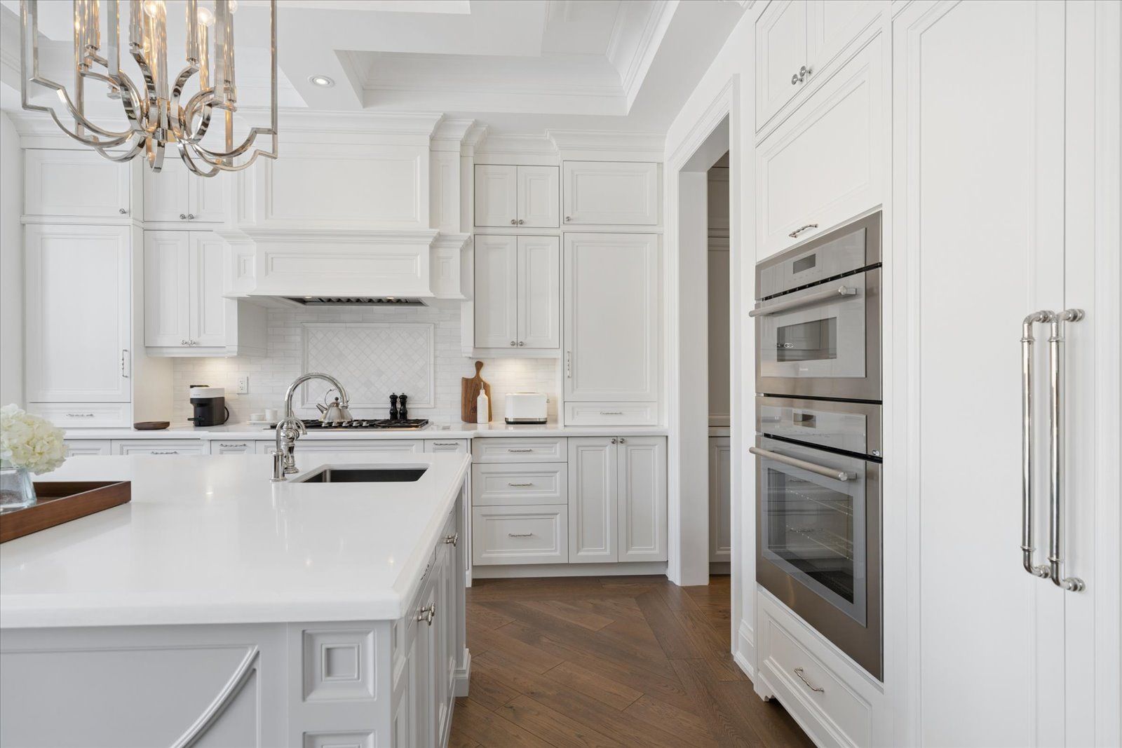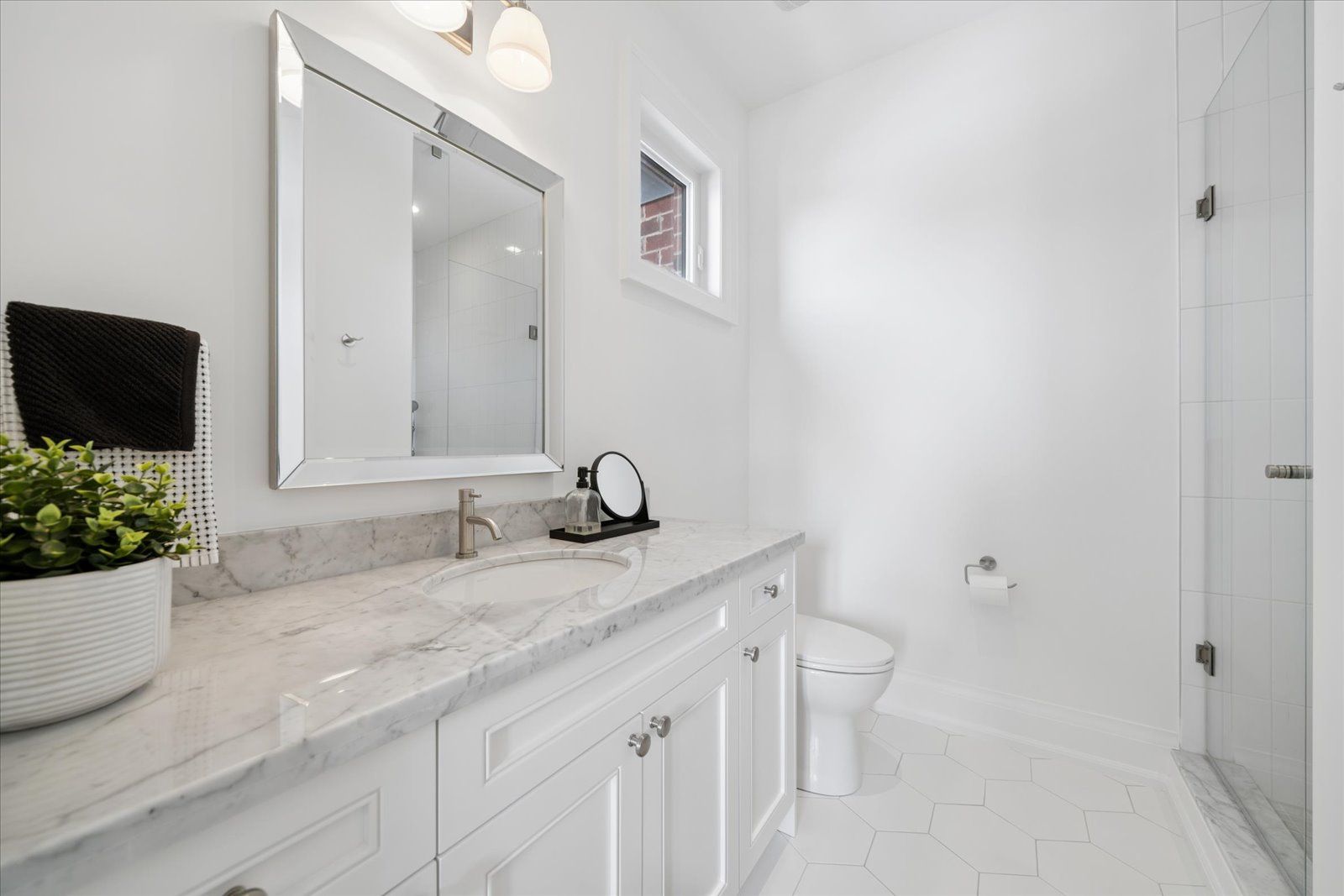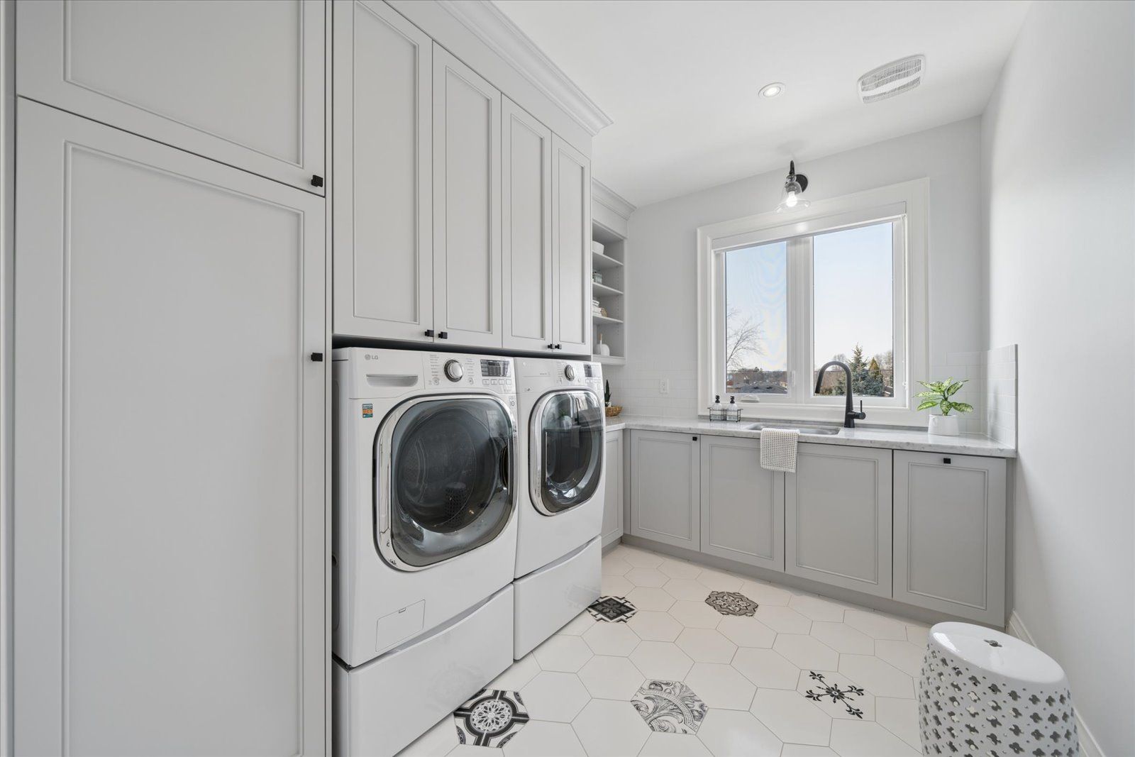 A masterpiece of modern luxury in pickering's coveted bay ridges by the lake. Custom-built in 2019, this spectacular and grand georgian -style residence offers over 4,000 sq. Ft. Of total living space defined by top-of-the-line finishes and architectural scale. The journey begins at the grand 8-foot fiberglass front door, opening to a foyer inlaid with imported italian marble mosaics and a soaring open-concept floor plan. With 10-foot ceilings on the main level and 9-foot on the second, the home feels incredibly bright and airy, anchored by 6-inch canadian-made oak hardwood floors, and elegant coffered ceilings. The heart of the home is a chef's dream kitchen, featuring a professional thermador appliance package with panelled integration, caesarstone countertops and an impressive butler's pantry. The living room features a custom marble surround for the gas fireplace. Every detail has been curated for the discerning buyer, from the powder room's marble vanity and italian marble floors to the custom blinds and draperies crafted from imported italian fabrics. The second level continues the theme of excellence with custom wainscotting and custom organizers in every bedroom closet. The primary retreat is a true sanctuary, boasting a spa-like ensuite with imported italian tile, double caesarstone vanities, freestanding soaker tub, and an oversized shower with drying area. The quality craftsmanship and luxury extend into the professionally finished 9-foot ceiling basement, featuring oversized windows that flood the full in-law/nanny suite with natural light. The exterior is equally impressive, showcasing custom precast stonework, a pool-sized backyard with an oversized interlock patio, a pergola, and a custom-built greenhouse. The garage features polyaspartic flooring, wall-to-wall storage, and an electric car charger. Nested on a quiet court steps from the lake, beach, parks and schools. This home is truly a rare find.