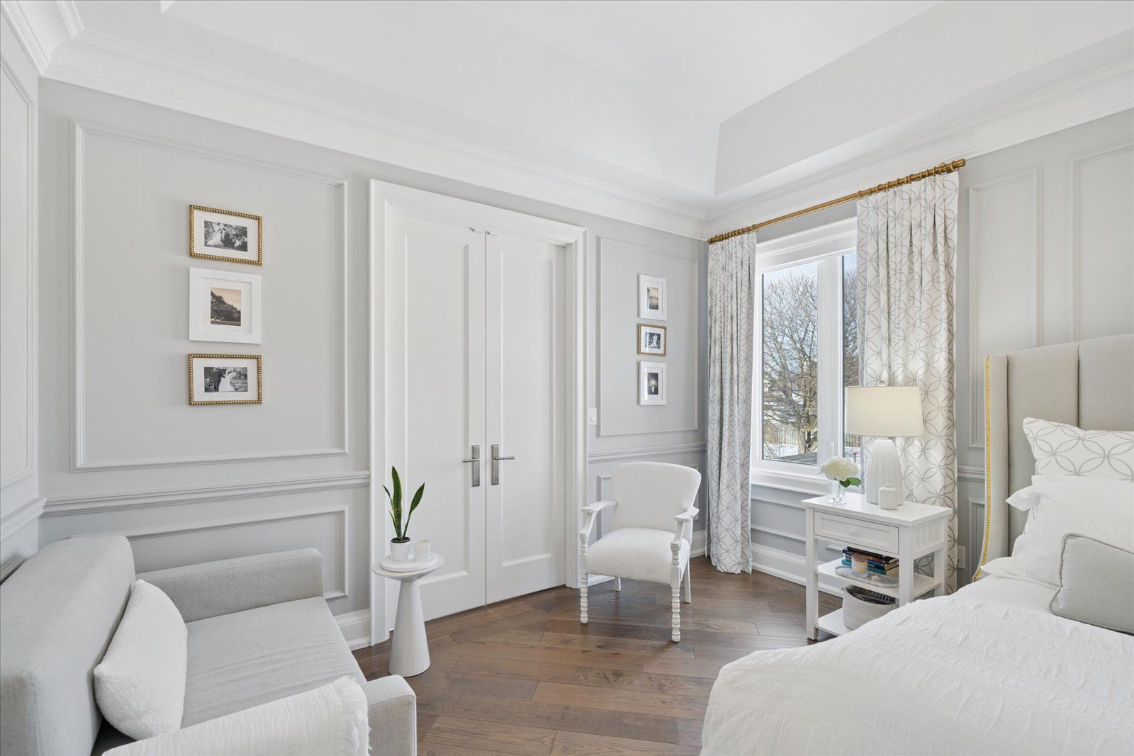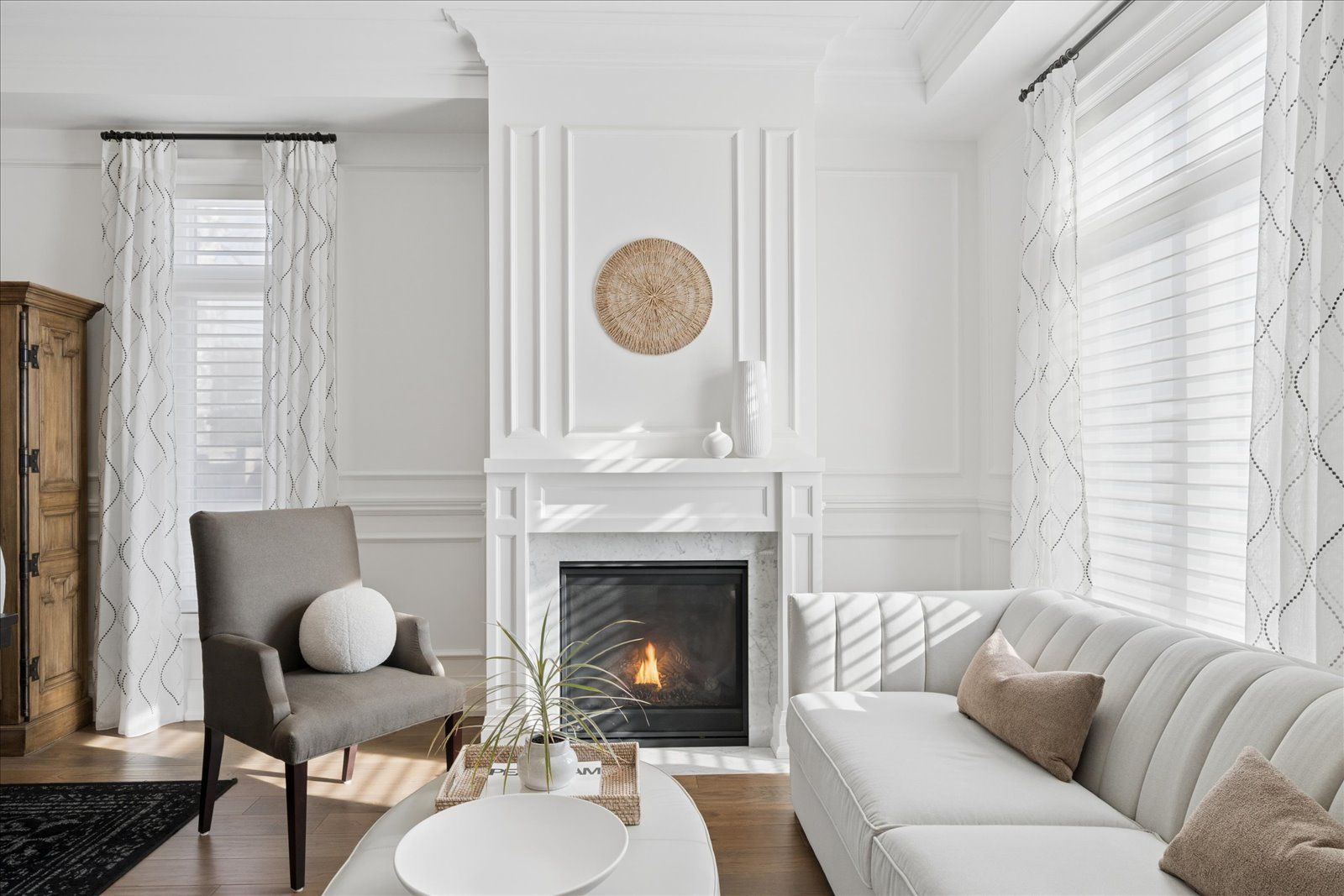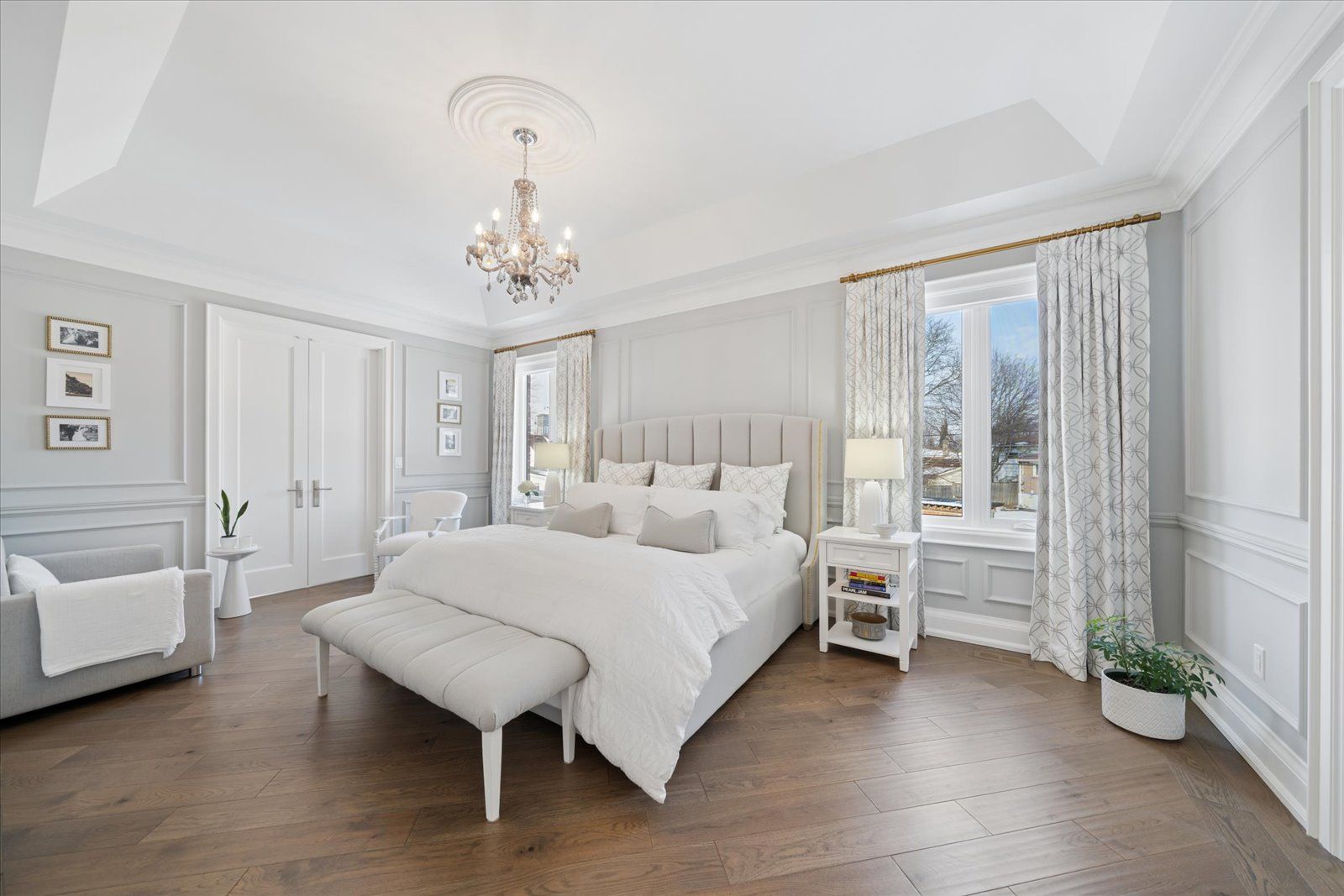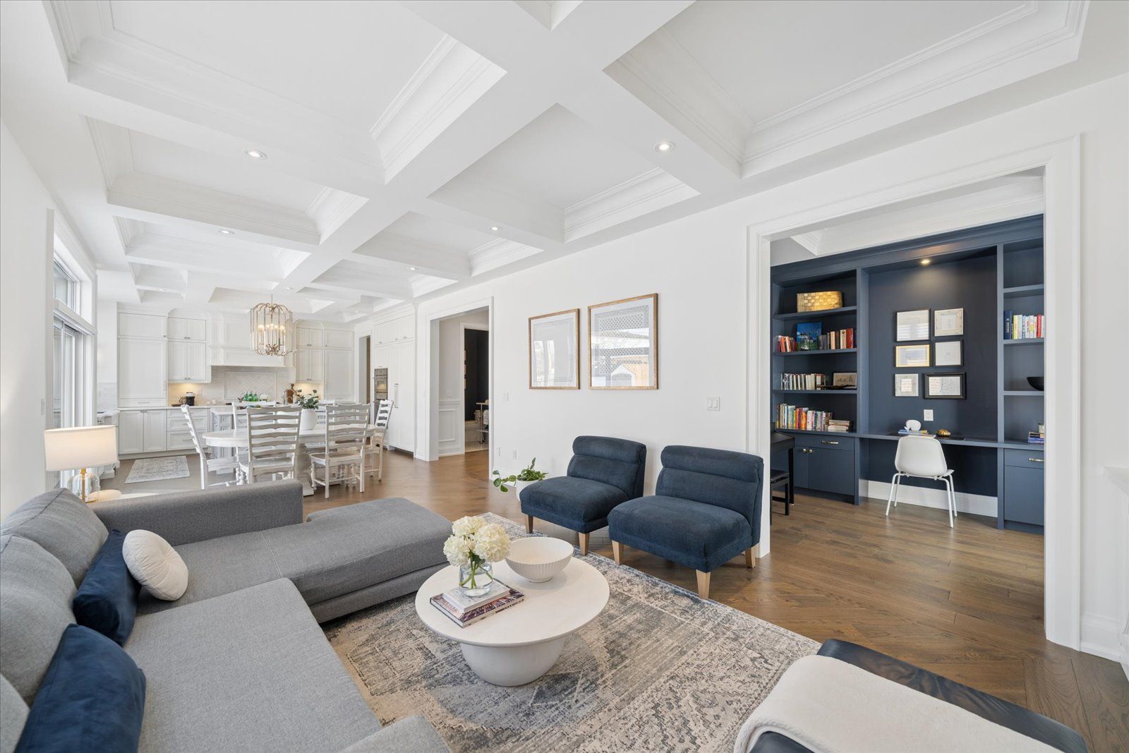 A masterpiece of modern luxury in pickering's coveted bay ridges by the lake. Custom-built in 2019, this spectacular and grand georgian -style residence offers over 4,000 sq. Ft. Of total living space defined by top-of-the-line finishes and architectural scale. The journey begins at the grand 8-foot fiberglass front door, opening to a foyer inlaid with imported italian marble mosaics and a soaring open-concept floor plan. With 10-foot ceilings on the main level and 9-foot on the second, the home feels incredibly bright and airy, anchored by 6-inch canadian-made oak hardwood floors, and elegant coffered ceilings. The heart of the home is a chef's dream kitchen, featuring a professional thermador appliance package with panelled integration, caesarstone countertops and an impressive butler's pantry. The living room features a custom marble surround for the gas fireplace. Every detail has been curated for the discerning buyer, from the powder room's marble vanity and italian marble floors to the custom blinds and draperies crafted from imported italian fabrics. The second level continues the theme of excellence with custom wainscotting and custom organizers in every bedroom closet. The primary retreat is a true sanctuary, boasting a spa-like ensuite with imported italian tile, double caesarstone vanities, freestanding soaker tub, and an oversized shower with drying area. The quality craftsmanship and luxury extend into the professionally finished 9-foot ceiling basement, featuring oversized windows that flood the full in-law/nanny suite with natural light. The exterior is equally impressive, showcasing custom precast stonework, a pool-sized backyard with an oversized interlock patio, a pergola, and a custom-built greenhouse. The garage features polyaspartic flooring, wall-to-wall storage, and an electric car charger. Nested on a quiet court steps from the lake, beach, parks and schools. This home is truly a rare find.