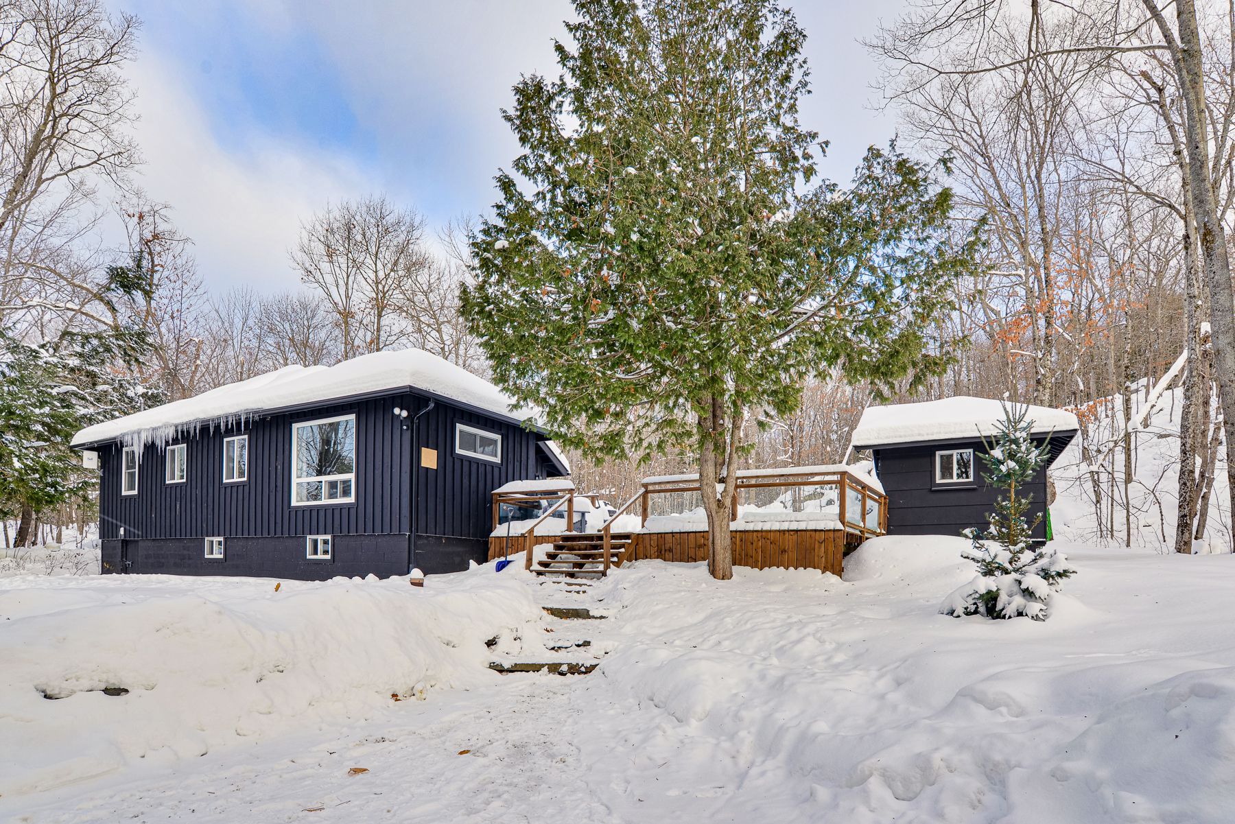 Welcome to 1279 carlingford road in port carling-an exceptional, fully renovated four-season retreat set on 2. 6 acres of beautifully treed, private land. This 3-bedroom, 1-bathroom home has been completely rebuilt from the studs, showcasing pine floors, stainless steel appliances, quality craftsmanship, and modern comforts while retaining a warm muskoka character. Located on a municipally maintained, year-round road, the property is ideal for full-time living or a carefree cottage escape. An expansive deck invites outdoor dining and entertaining, a separate bunkie offers excellent accommodation for guests, and a fire pit creates the perfect setting for family gatherings under the stars. With parking for four vehicles plus a garage for additional storage, easy access to lake joseph, and close proximity to port carling amenities, this turnkey property delivers an outstanding blend of privacy, convenience, and muskoka lifestyle.