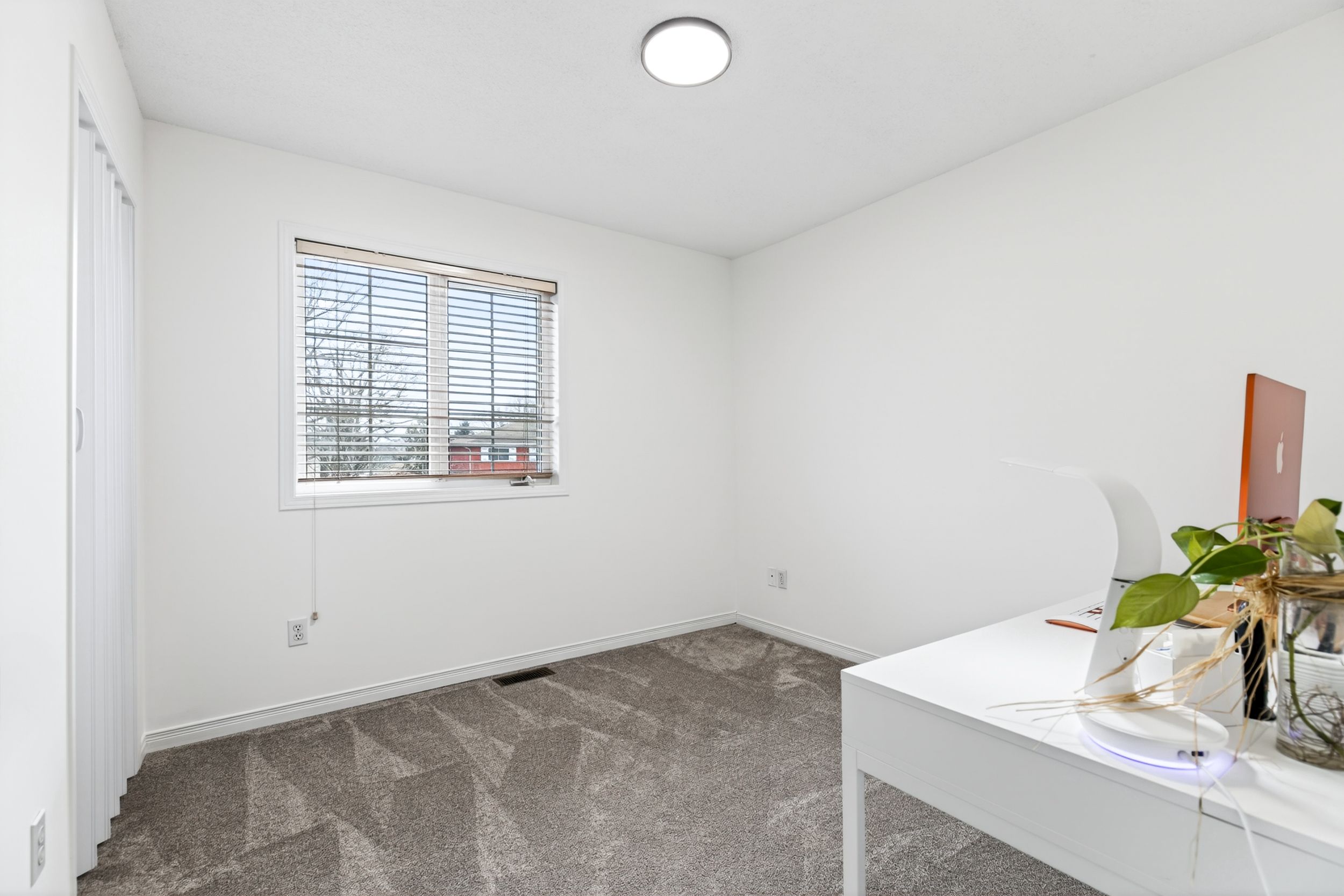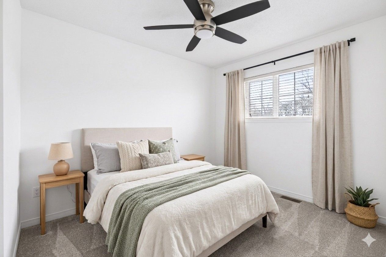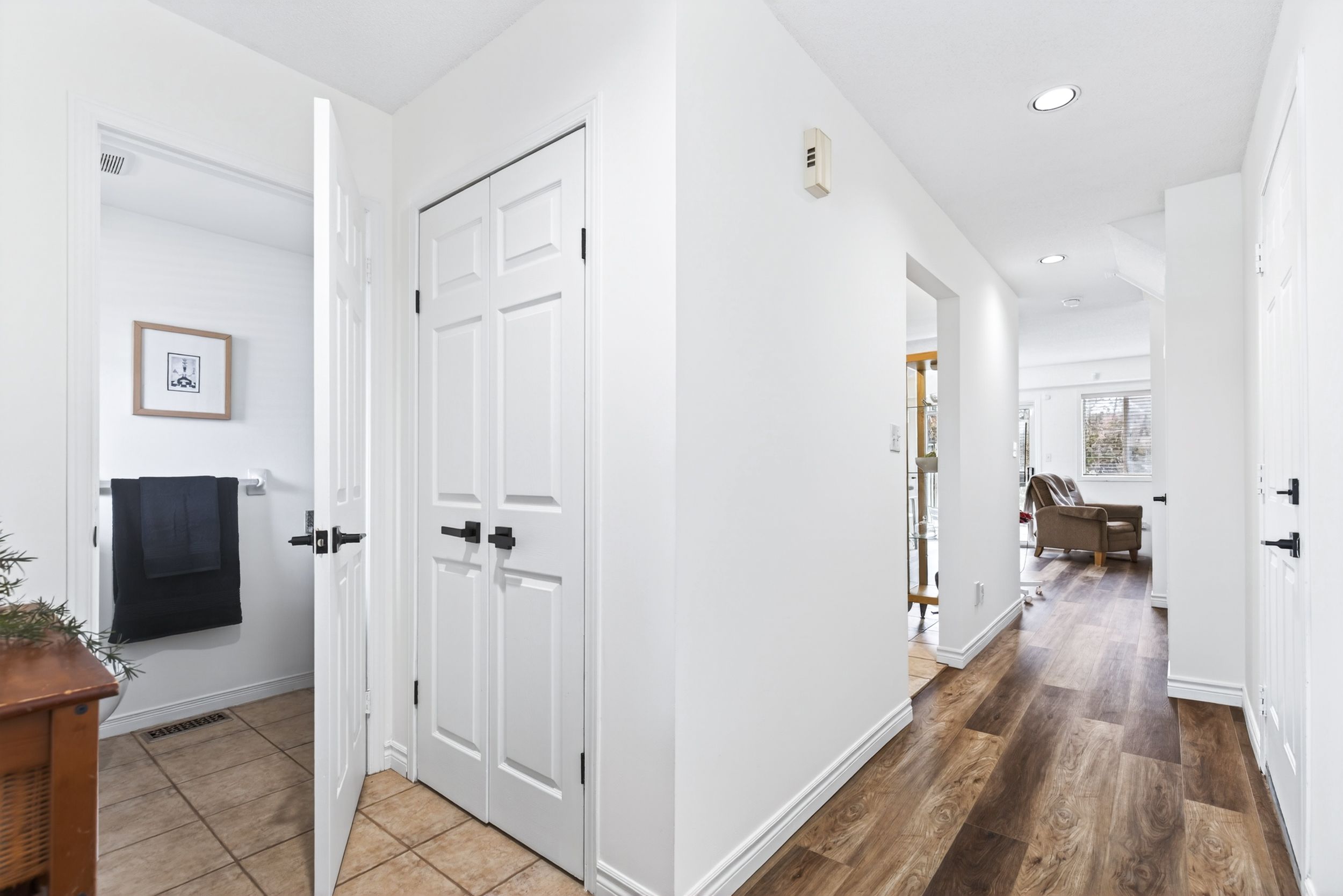 Welcome home. This beautifully maintained freehold townhouse in a family-friendly area invites you to experience a sense of flow. Notice the fresh paint and new luxury vinyl plank flooring as you move from the spacious foyer into the light-filled living and dining areas-perfect for entertaining. Discover the ease of the extended kitchen, offering ample prep and cupboard space for your daily life. Upstairs, feel the comfort of plush new carpeting and spacious landing. The primary bedroom features double closets and natural light, while the fully renovated washroom showcases premium finishes and a large vanity. With two more spacious bedrooms, there's room to grow. The basement offers extra living space with a 3-piece rough-in, ready for your finishing touches. Step outside to a lovely deck overlooking a deep, 150-ft treed lot. The fenced backyard provides exceptional privacy for children and pets. Complete with direct access to the garden through the attached garage and providing a total of 3 parking spaces. You're ideally located near schools, parks, shopping, and qew. With too many updates to list here (updates list provided upon request) this is a rare opportunity to secure a move-in ready home in a location that feels exactly right.