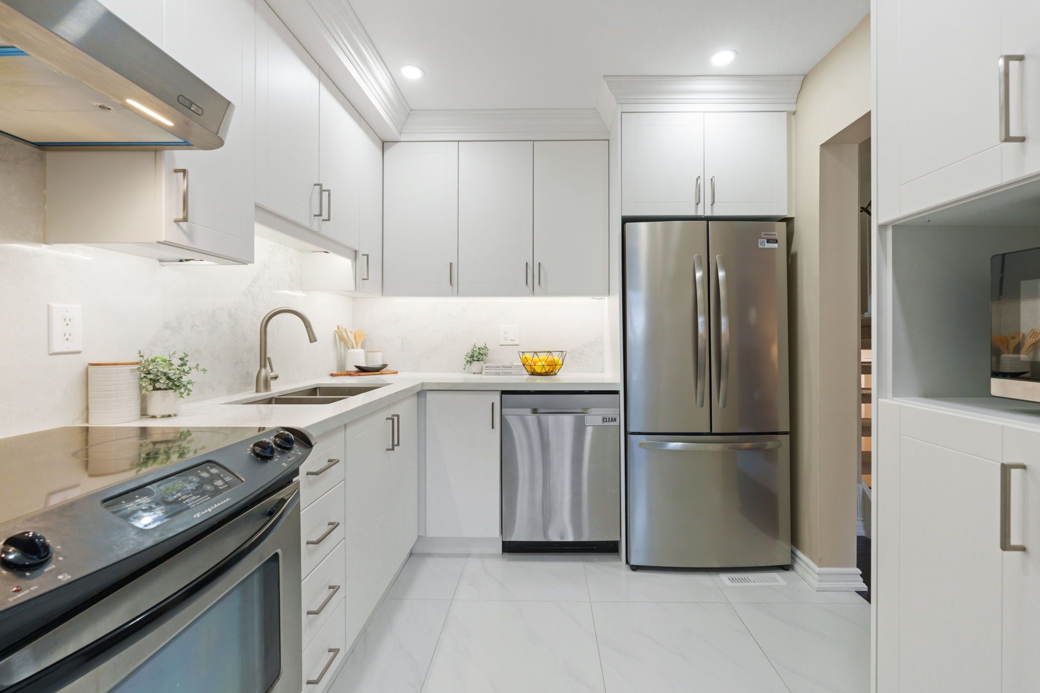 Imagine moving into a home where your neighbours always smile, say hello and there's a helping hand at every door! This tight-knit, family-friendly enclave offers the rare community spirit you've been looking for! This fully transformed freehold 5 backsplit townhome is in the heart of the highly-sought after agincourt area. Walk directly inside from a deep attached garage to a spacious foyer with a convenient and updated powder room (2026). The newly renovated kitchen (2025) features brand new stainless steel appliances and a built-in pantry for extra storage. The quartz countertops paired with full-slab seamless marble backsplash creates a waterfall effect that exudes modern luxury. Occupying its own dedicated level, the primary bedroom serves as a secluded sanctuary. It features a private balcony, perfect for morning coffee. The ensuite boasts his-and-her sinks and a rainfall shower (2021). The third floor offers two spacious bedrooms overlooking the garden and a four-piece bathroom finished in clean white tones with marble flooring (2021). The light-filled family room is versatile with endless possibilities, offering a seamless walk-out to the garden that balances quiet seclusion with a vibrant space to entertain both indoors and outdoors. The freshly updated laundry suite (2025) is equipped with premium new washer and dryer, a stainless steel basin, and a custom ceramic backsplash. This space offers abundant extra storage with direct access to an expansive, clean crawlspace for even more organizational capacity. Enjoy ample parking with a freshly paved driveway (2024) with enough space for 5 cars! Perfectly positioned near top-tier schools, lush local parks, and shopping at agincourt, woodside, bridlewood, and pacific mall, all just minutes from your front door! Endless delicious dining options in every direction! Situated with a 5-minute drive to agincourt go and the added value of being walking distance from the finch-kennedy go station arriving next year!