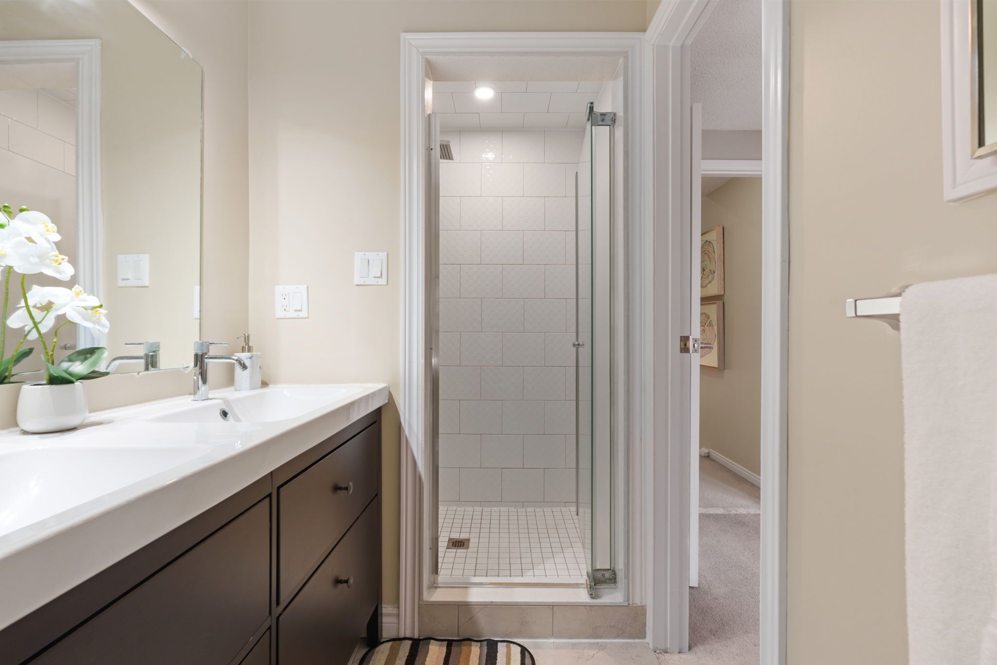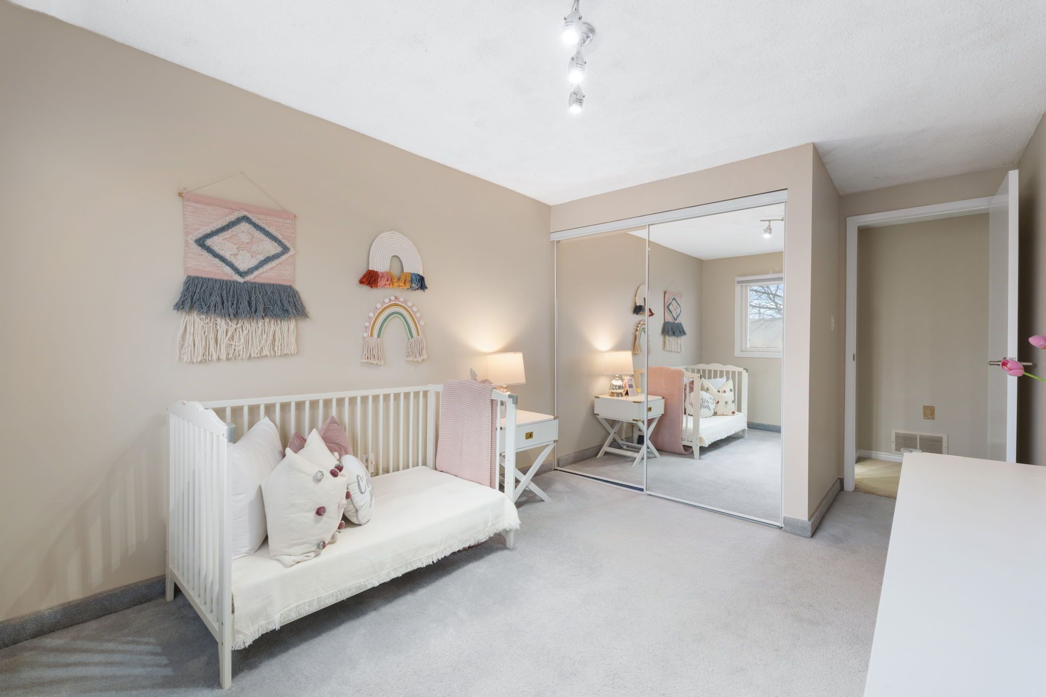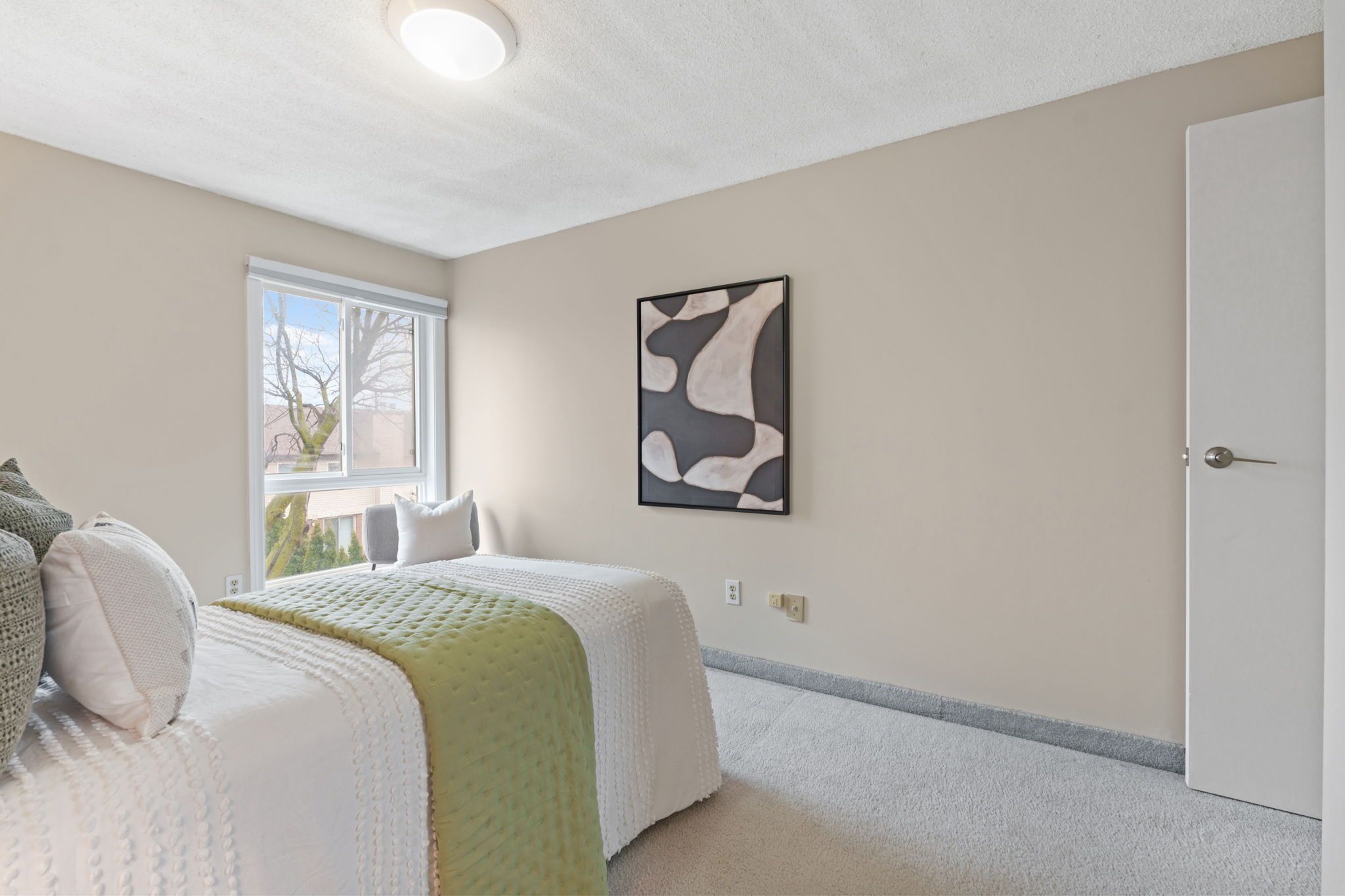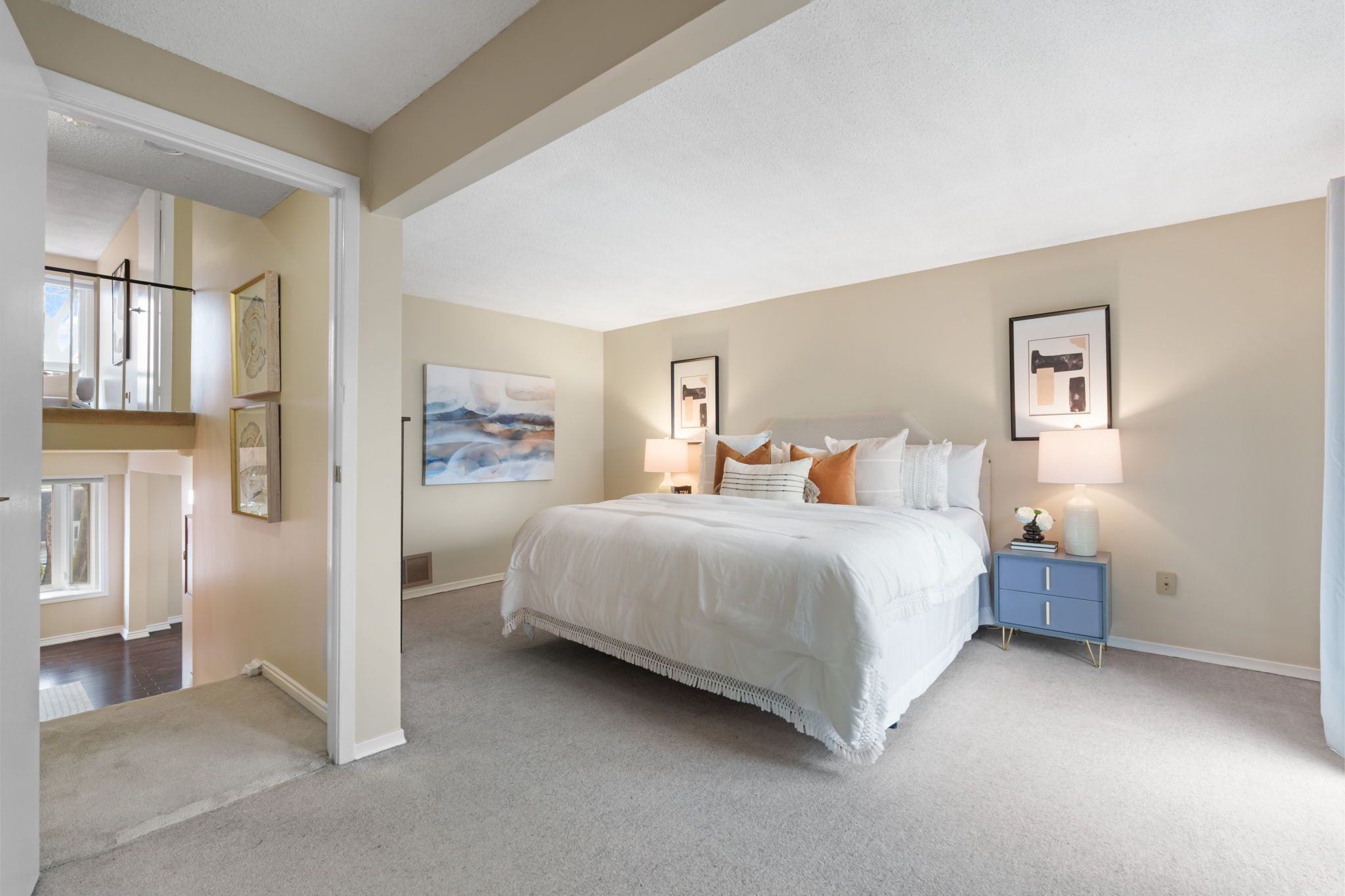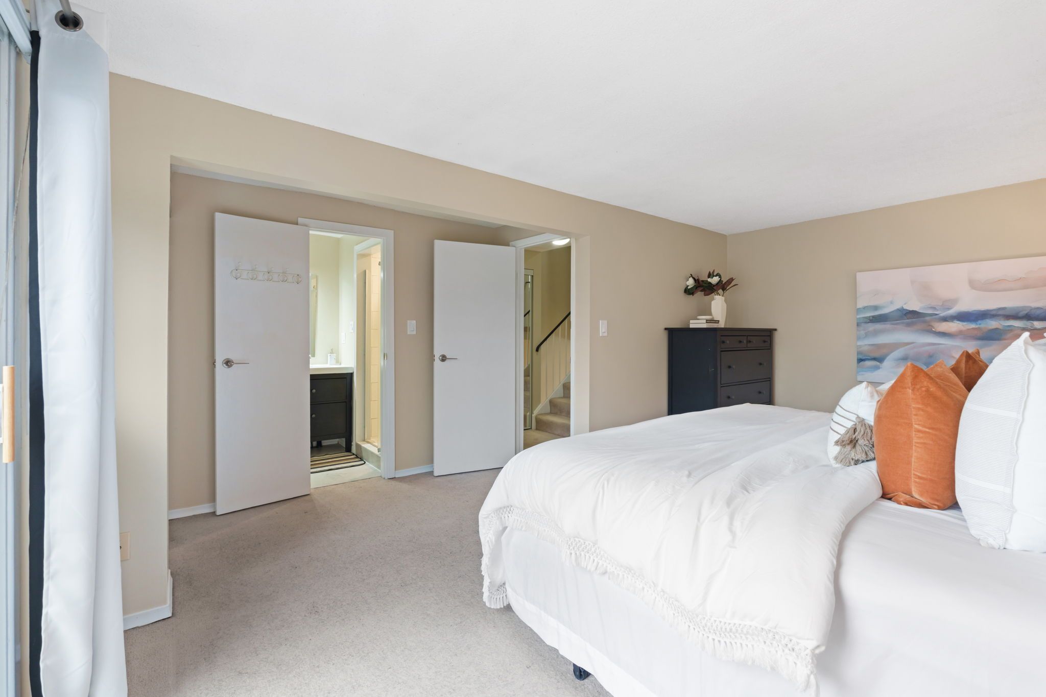 • Primary bedroom offers privacy with a balcony for morning coffee.