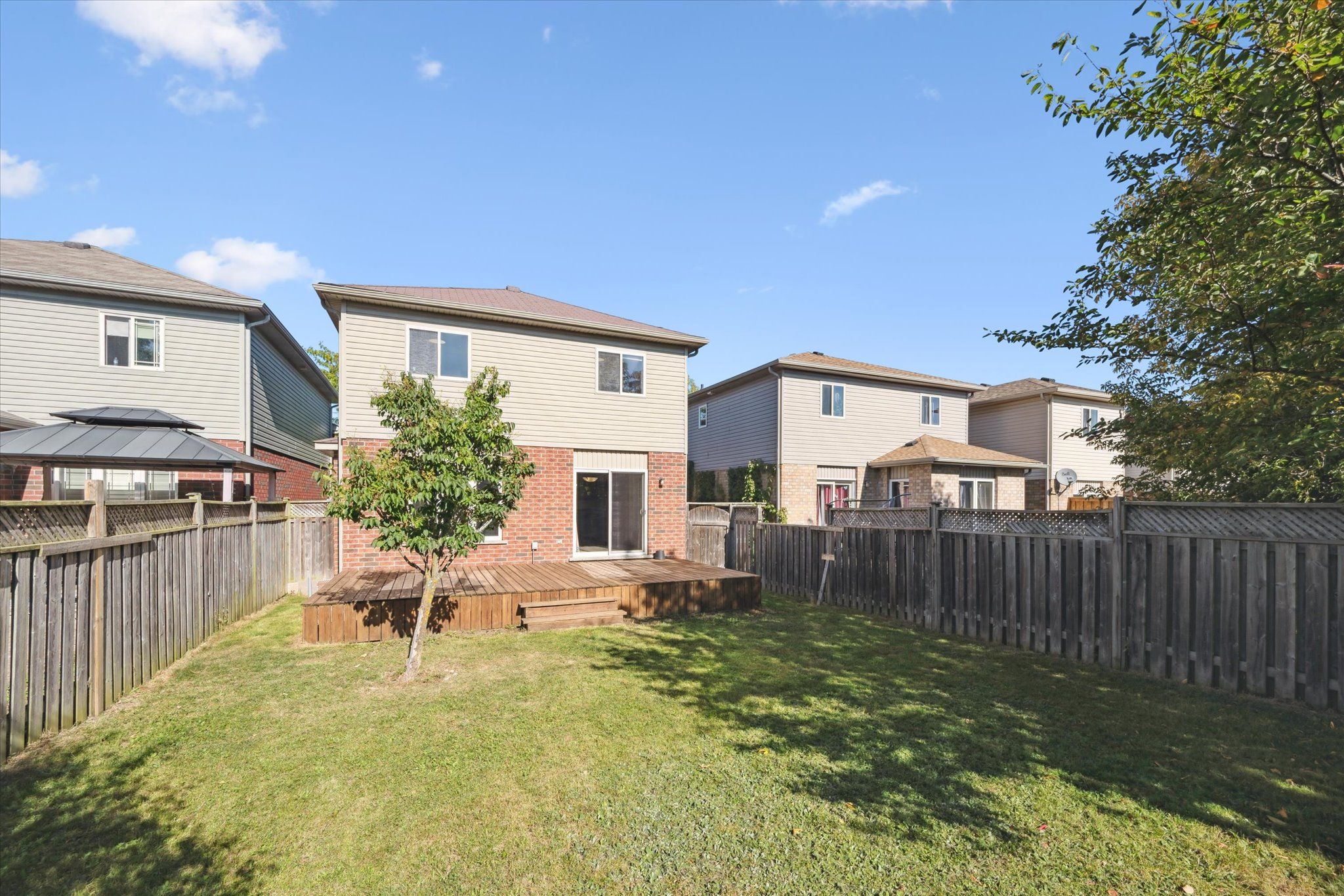 Southend most demanded quiet street, right beside sir isaac brock public school, close to all new southend commercial and community amenities, easy access to hwy 401. Pidel built 3 bedroom home with a magnificent private back yard, very spacious entrance and hardwood flooring in combined living room and dinning room, gorgeous kitchen with lots of cabinets and nice stainless fridge, gas range dish washer are all included. Walk-in closet and ensuite in huge master bedroom, convenient 2nd floor laundry room, finished basement with windows. Fenced yard and deck, a well maintained home.