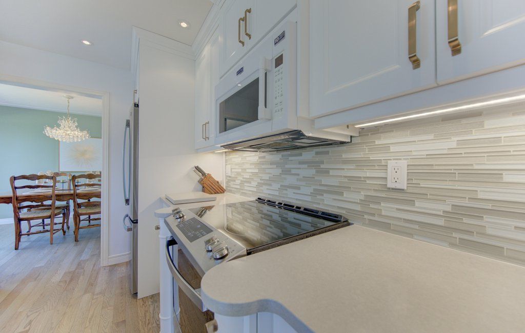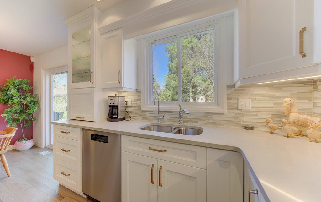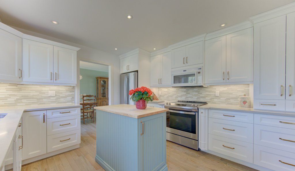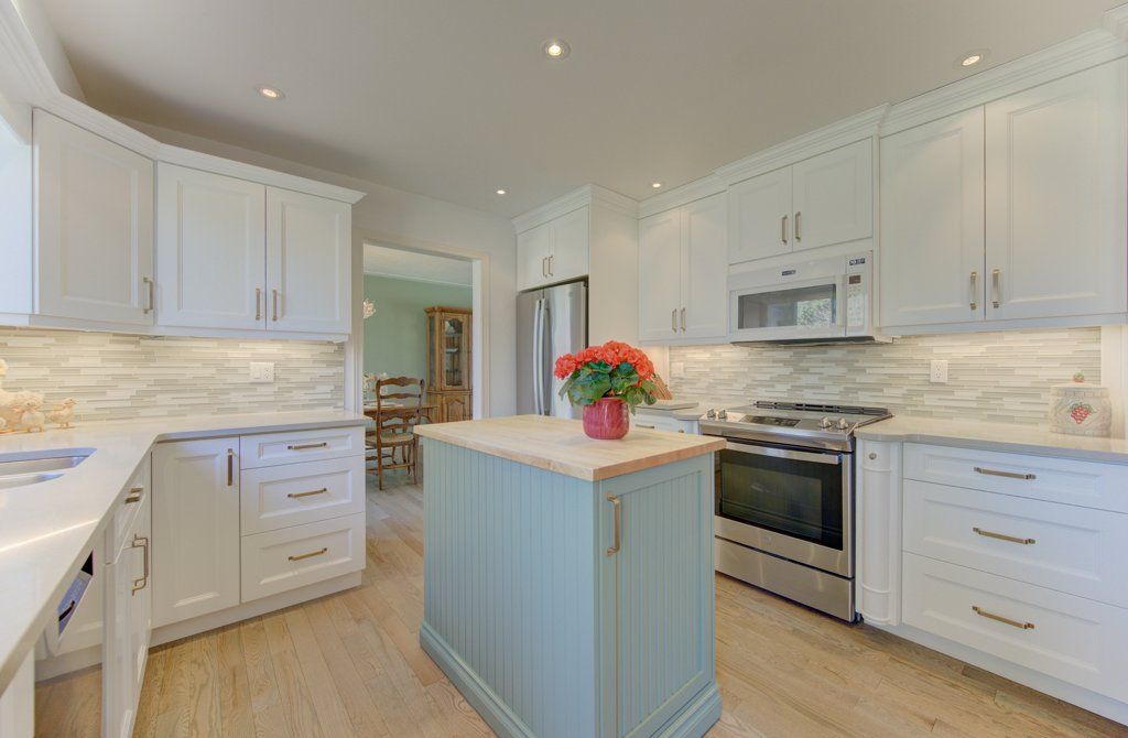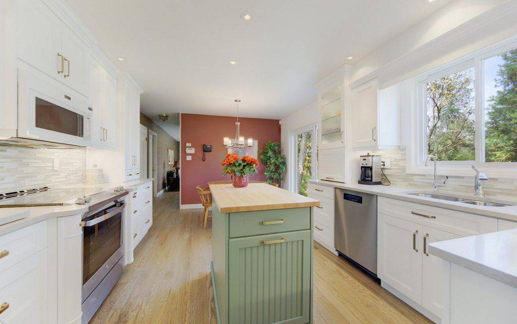 • Bright, newly-renovated island kitchen with modern features and deck access.