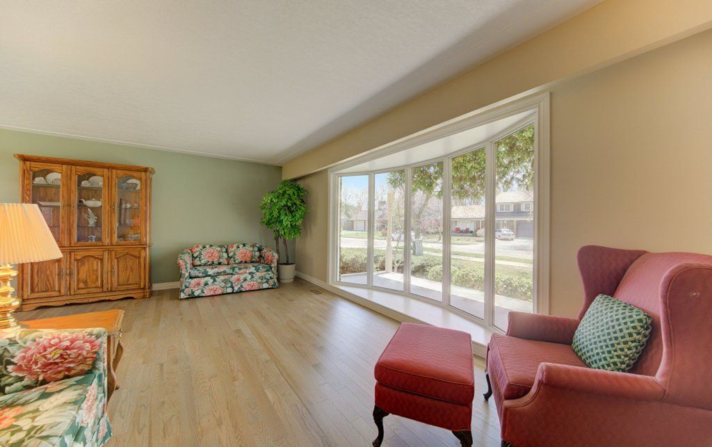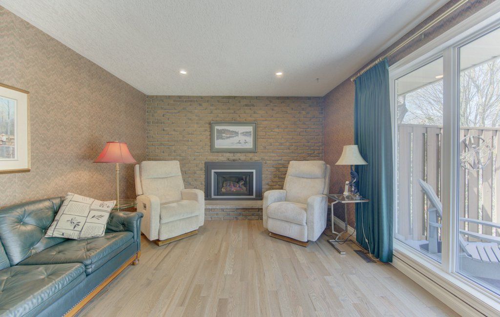 • Generous family room with floor-to-ceiling windows and gas fireplace.