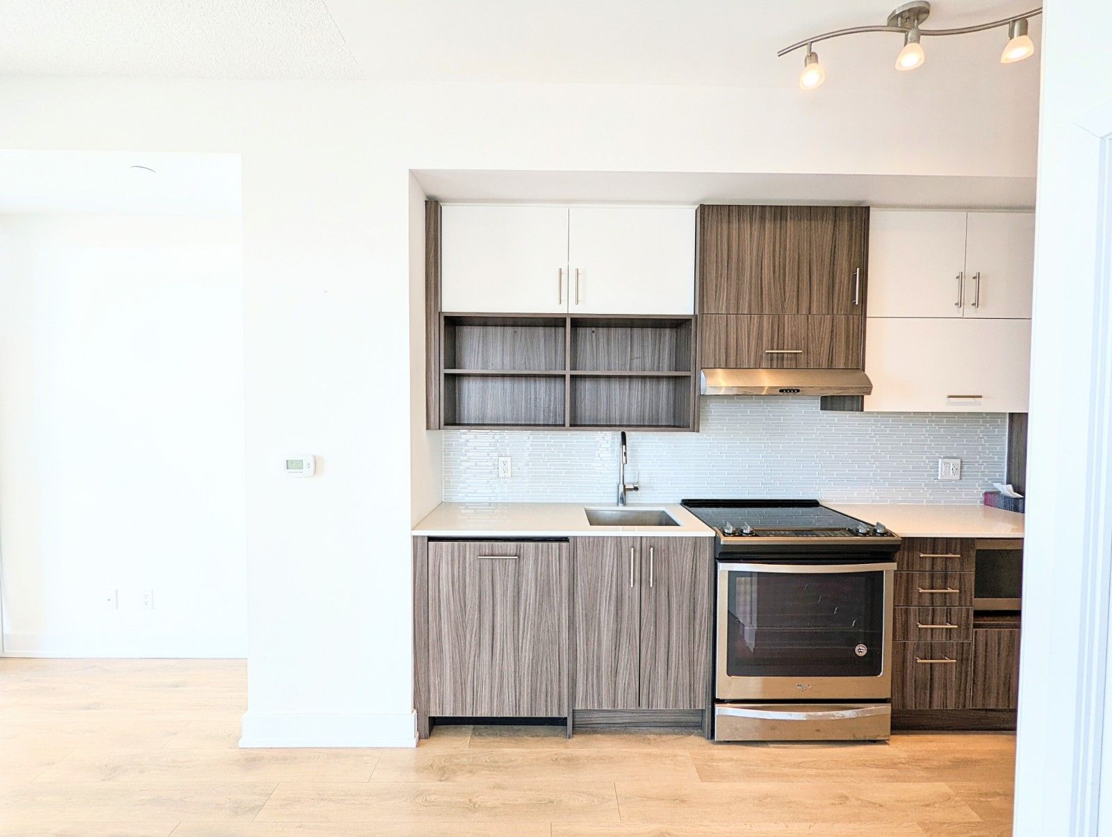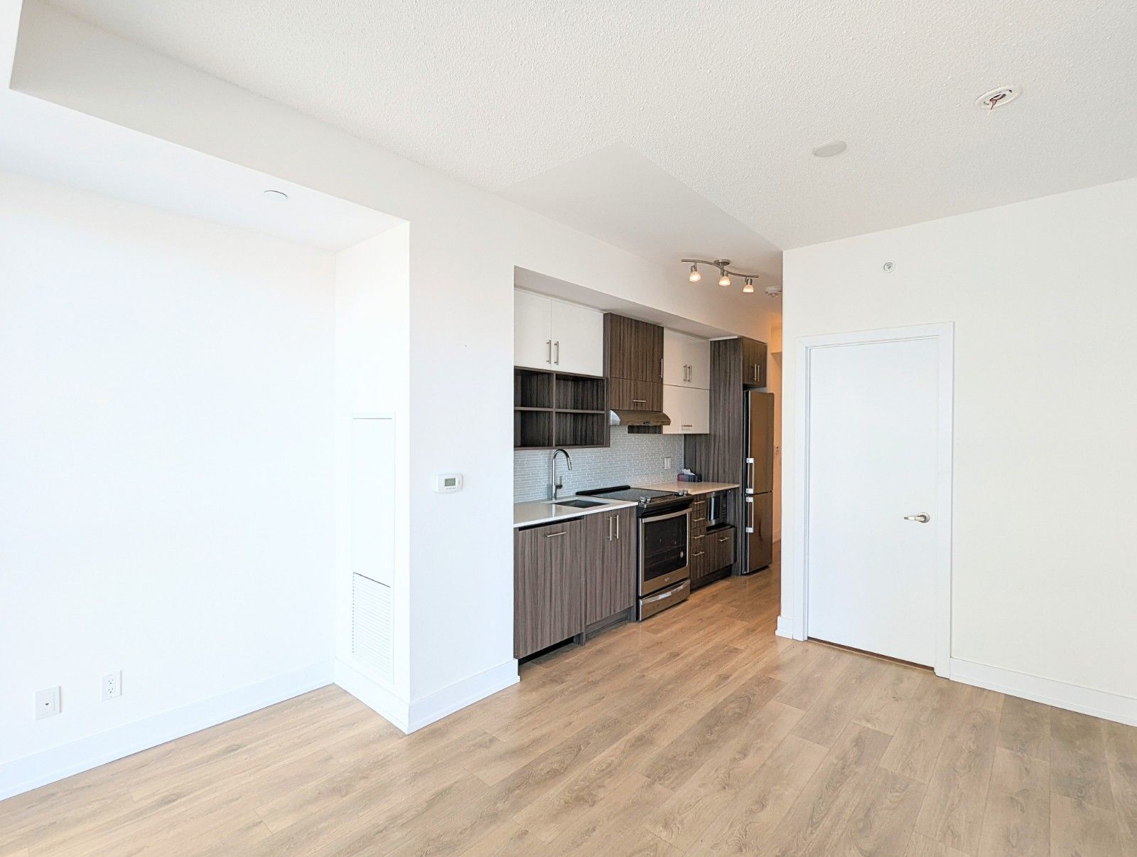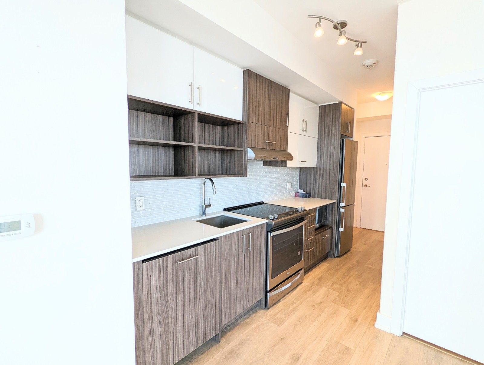 • Laminate flooring and stainless steel appliances throughout the unit.