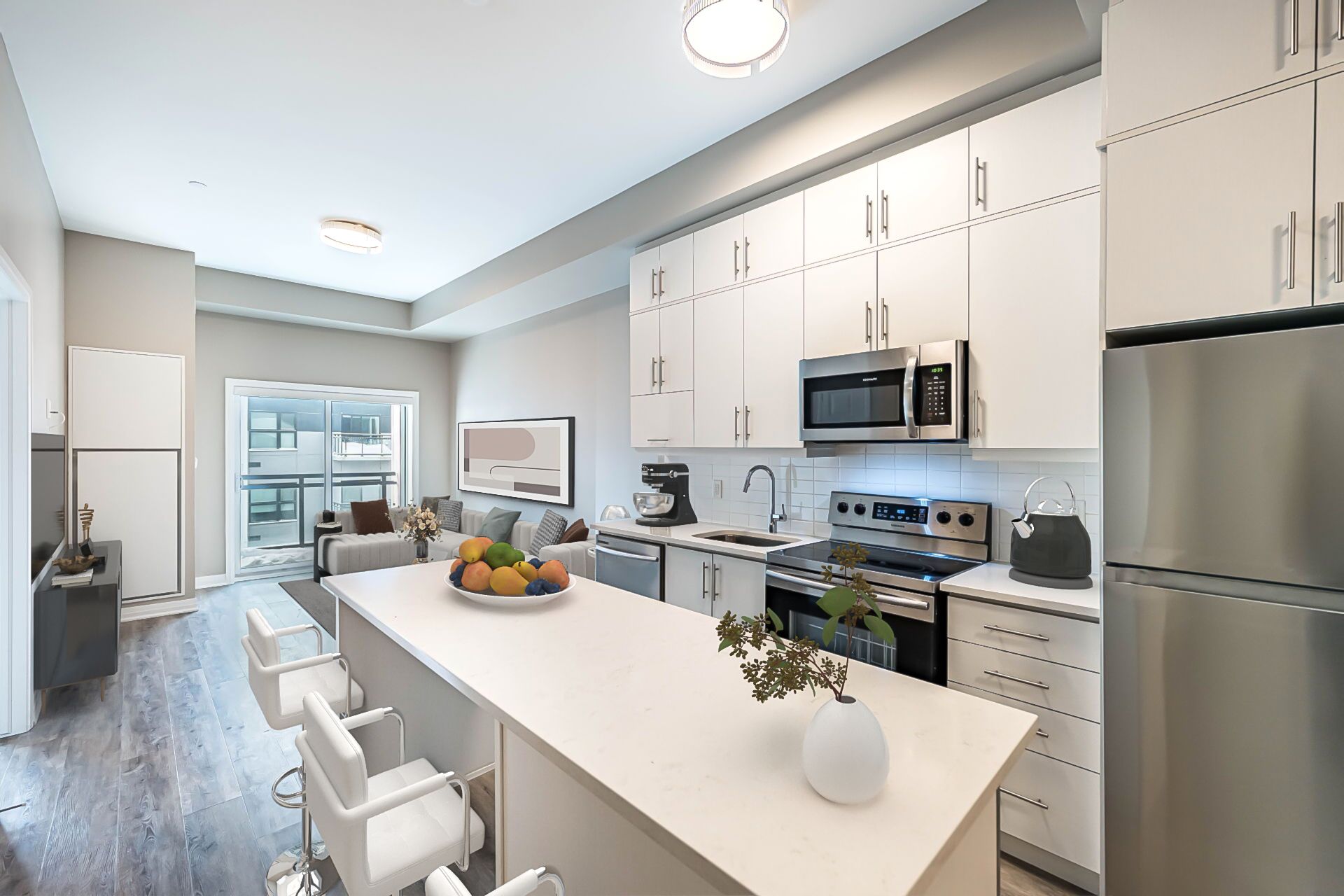 • Spacious penthouse with high ceilings and modern upgrades throughout.