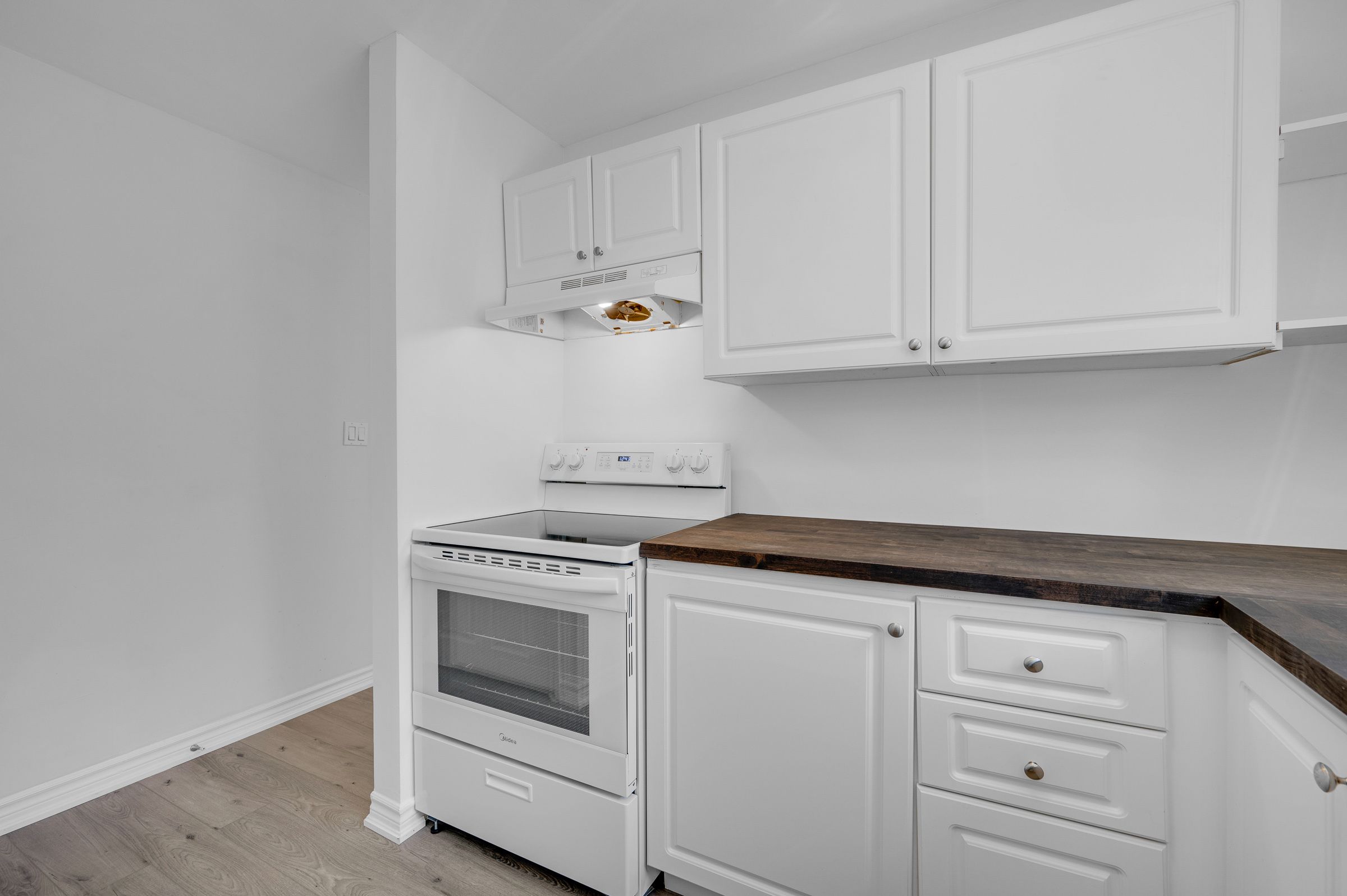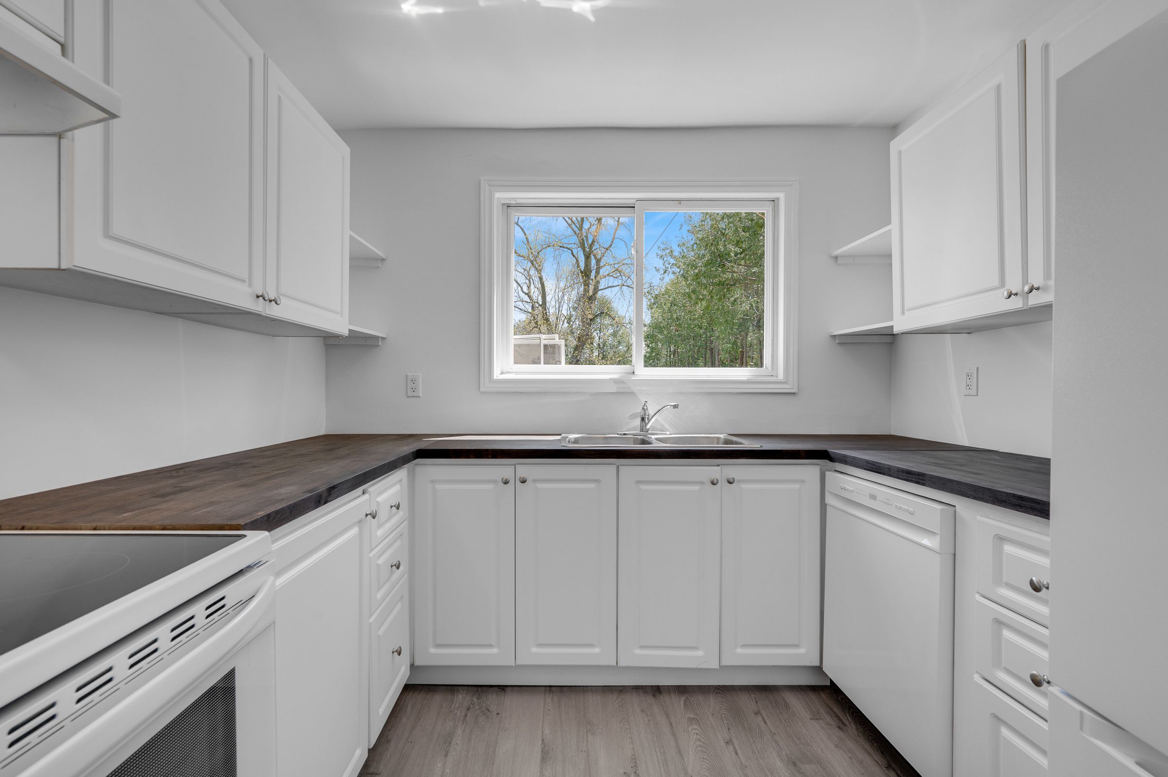 • Stylish kitchen with new appliances and butcher block countertops.