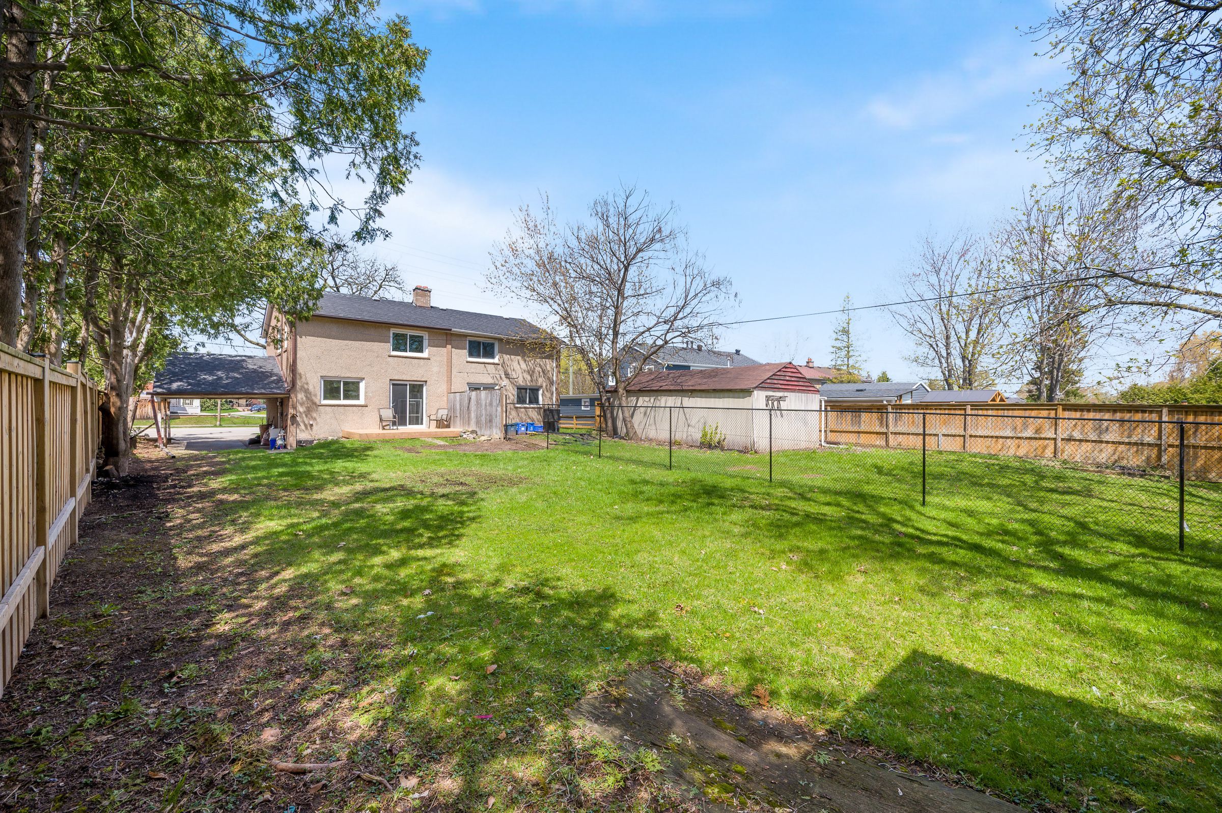 Welcome to this beautifully updated semi-detached home in the desirable community of milton! Featuring 3 spacious bedrooms and 2 bathrooms, this home offers a perfect blend of comfort, style, and functionality. Step inside to a bright interior with updated laminate flooring throughout, complemented by modern trim and baseboards. The upgraded kitchen is a standout, showcasing stylish cabinetry, updated appliances, and stunning butcher block countertops-perfect for cooking and entertaining. Enjoy outdoor living with a brand new deck and a fully fenced backyard, ideal for families, pets, or hosting guests. The home also offers convenient 3-car parking, including a covered carport and two private driveway spaces. The basement provides excellent potential for an in-law suite or future rental income, featuring a roughed-in kitchen ready for your customization. Additional upgrades include a brand new roof for added peace of mind. Located within walking distance to milton district high school, j. M. Denyes public school, la rose bakery, local parks, the fairgrounds, and john tonelli sports centre-this is a fantastic opportunity in a family-friendly neighbourhood close to everything you need. Don't miss out!
