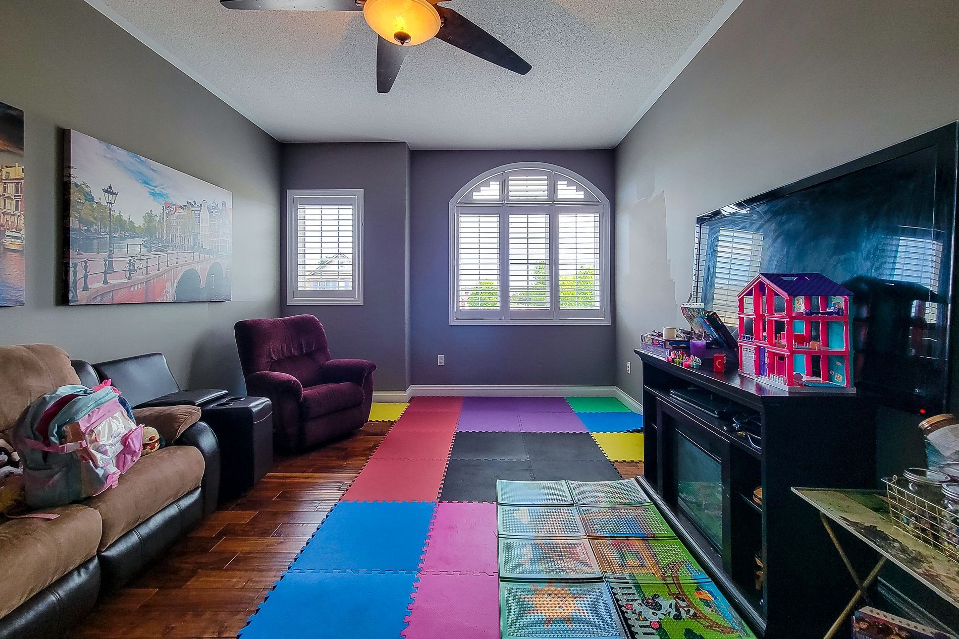 • Large family room on the upper level for relaxation and play.