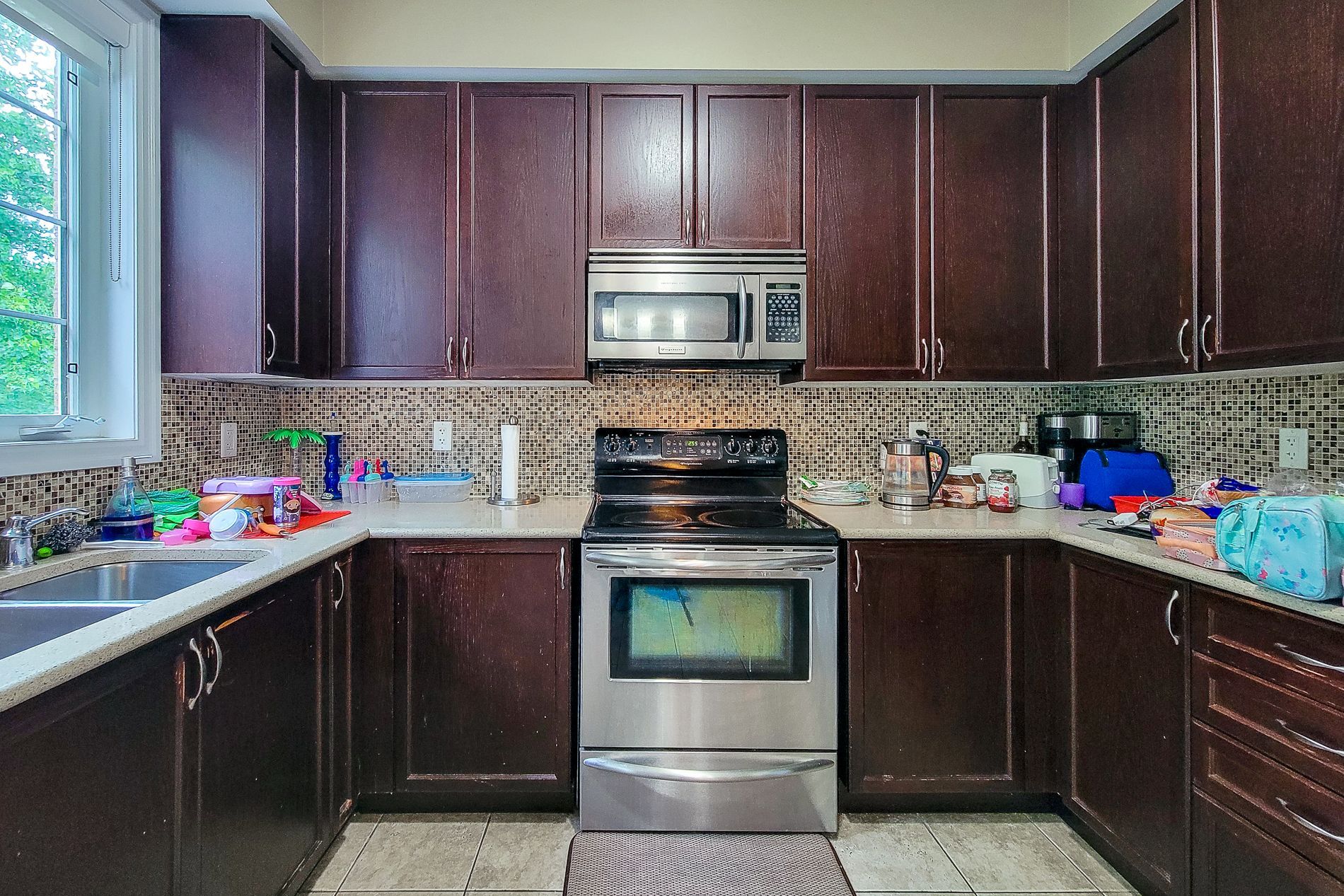 • Bright eat-in kitchen with stainless steel appliances and back deck access.