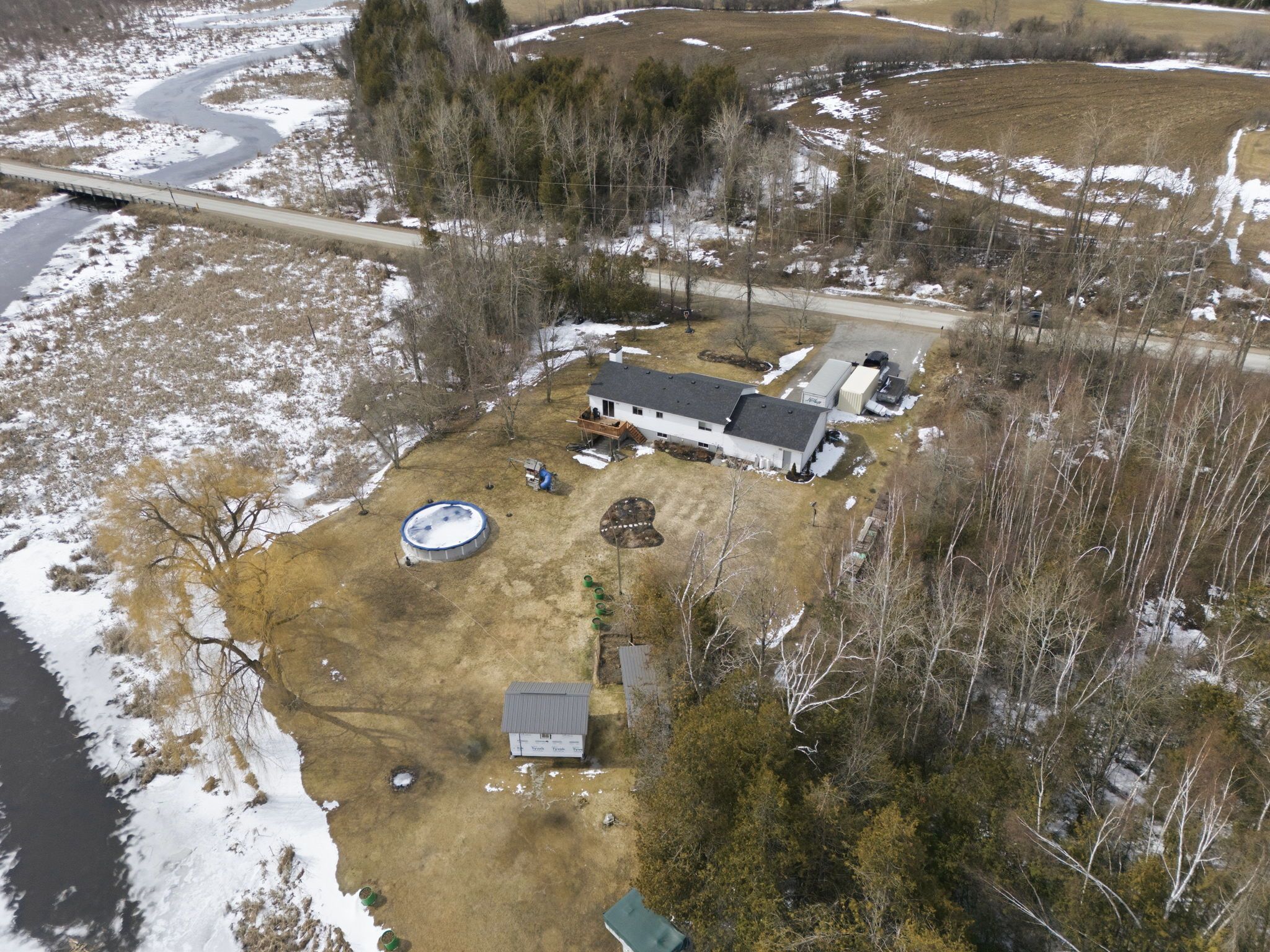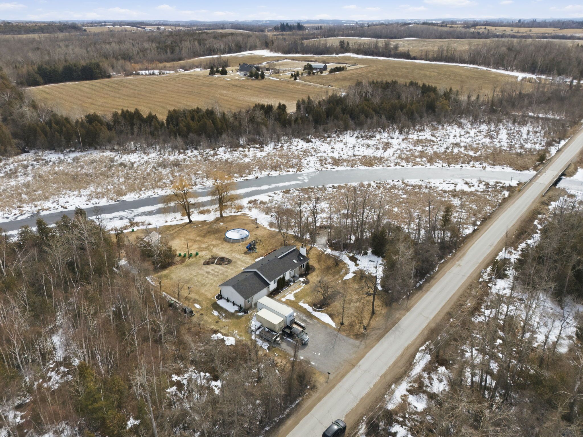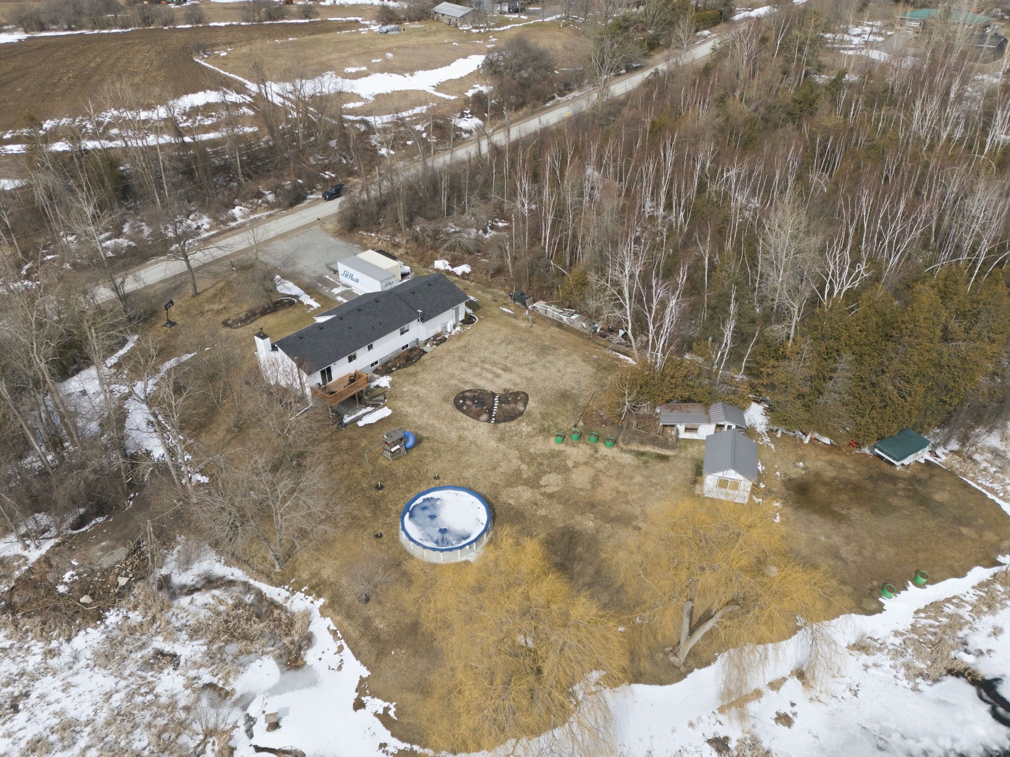 This split level bungalow is set on just over 2. 5 acres, with scenic cross creek running along the edge of the property. It offers a peaceful rural lifestyle, just a few minutes north of janetville, and 20 minutes to both port perry and the 115. Well-maintained, featuring 3+1 bedrooms and 2 bathrooms, including a primry ensuite. The functional layout (including a main floor wood burning fireplace) is ideal for families or those seeking additional space. The partially finished basement includes a walkout to the backyard, a fourth bedroom and garage access, offering potential for extended living or recreational use. The property features a large driveway for all the toys, an above-ground pool, attached garage, and additional outbuildings for storage or hobby use. With public access to scuggog lake just down the road, this property is well suited for nature lovers and outdoor enthusiasts. Updates include a roof (2022). This is a great opportunity to enjoy space, outdoor hobbies, privacy, room to grow, and convenience within commuting distance to the gta.
