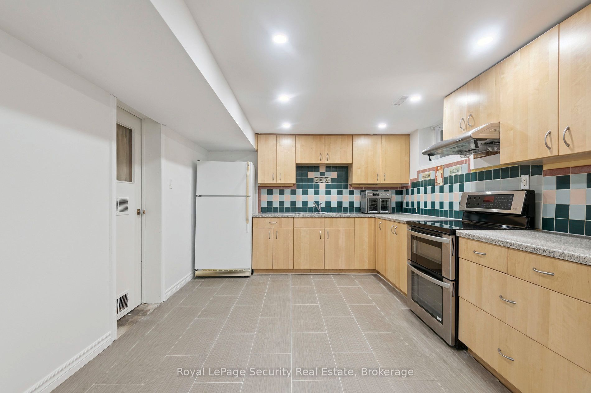 • In-law suite with separate entrance, kitchen, living area, and laundry.