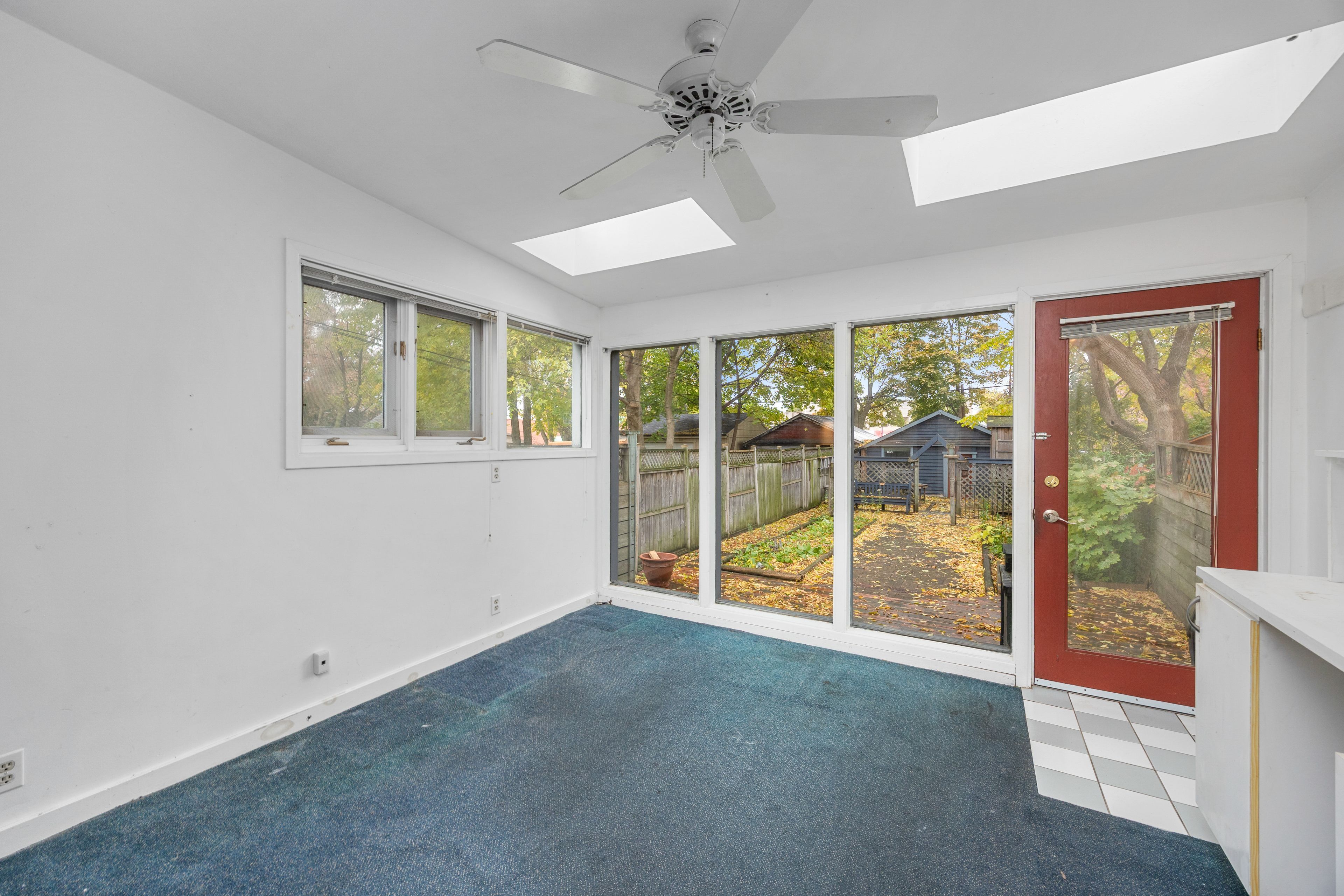 Sun-filled detached 2-storey home - a true cottage in the city - featuring an expansive backyard and a bright sunroom overlooking the decked yard. This beautifully maintained residence offers 3 bedrooms on the upper level with a potential 4th bedroom or office in the basement, 2 full bathrooms, and ensuite laundry. Enjoy an open-concept main floor with hardwood throughout, a renovated kitchen with stainless steel appliances, and sightlines to both the sunroom and spacious living/dining area. A charming front alcove with floor-to-ceiling windows adds warmth and character the family room. Includes one front pad parking spot. Conveniently located south of the danforth, just steps to main street subway, go station, shops, and all neighbourhood amenities. Central heating and air conditioning for year-round comfort. Tenants pay utilities.