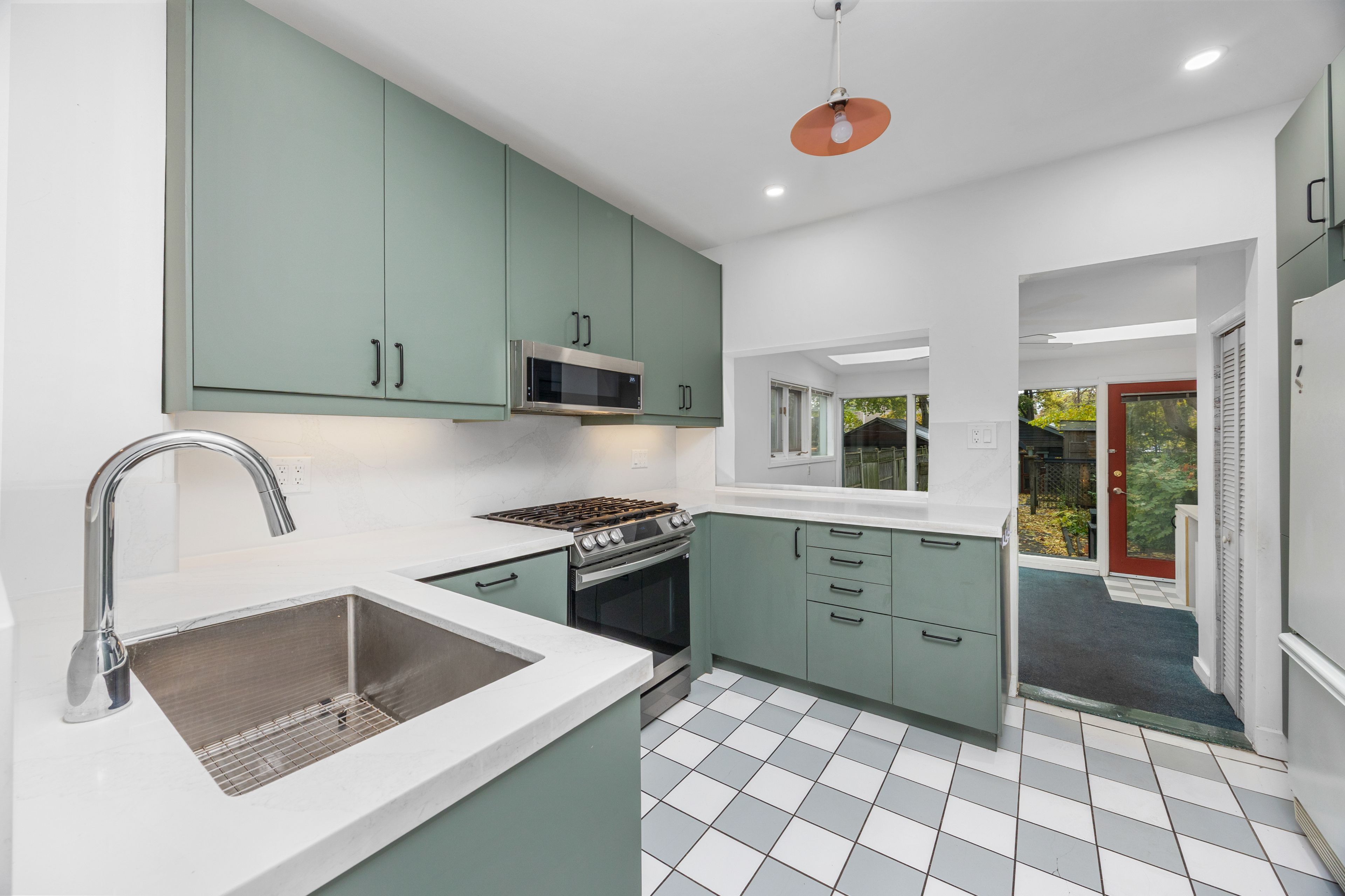 • Renovated kitchen with stainless steel appliances for modern convenience.