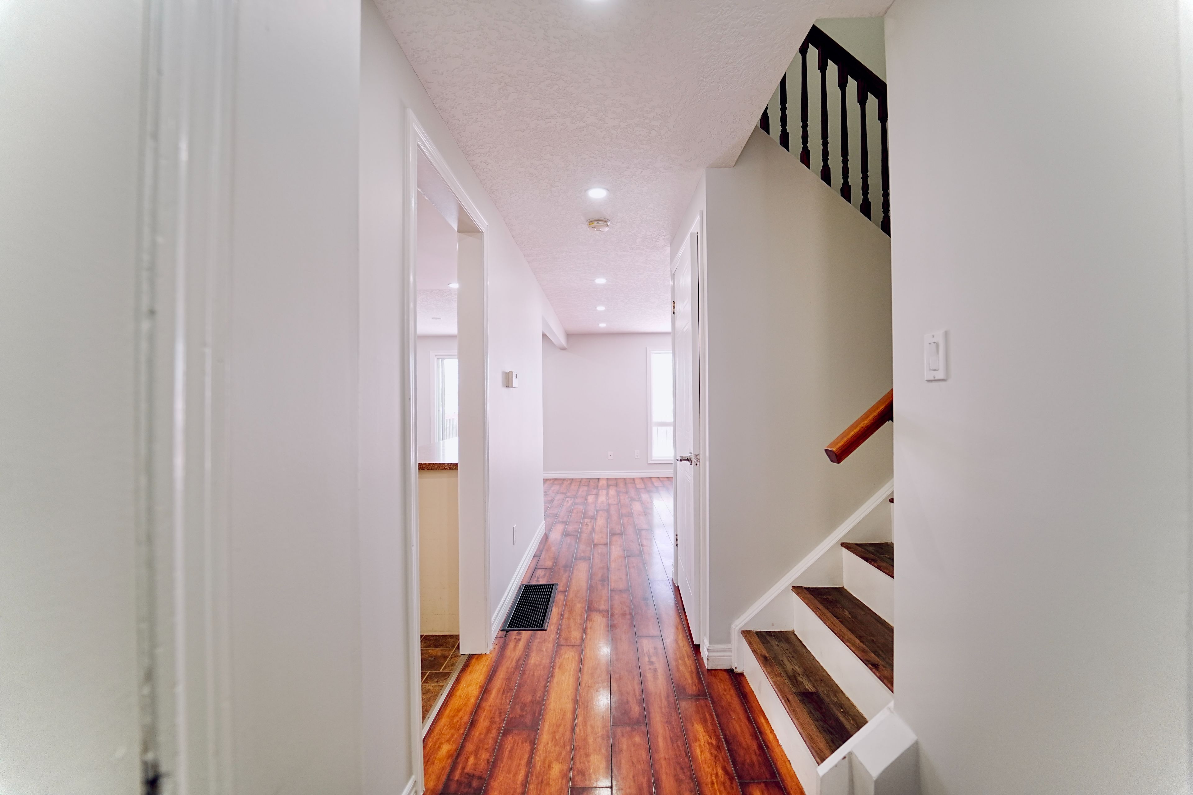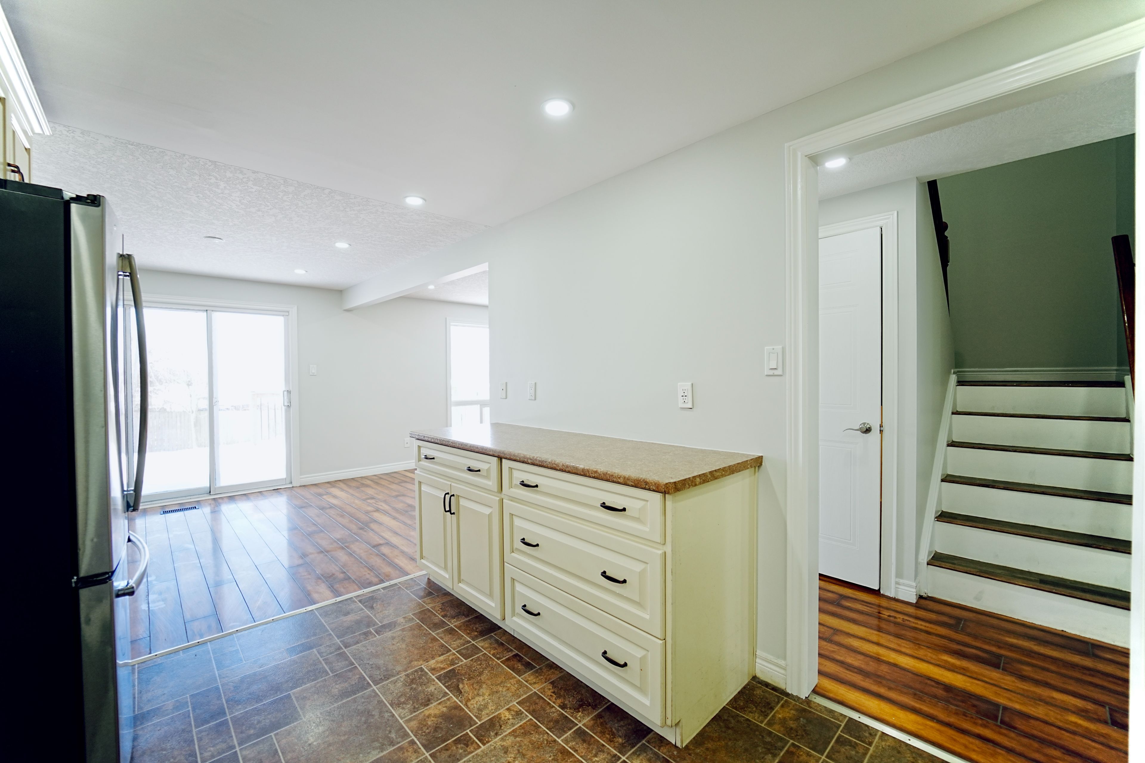 Welcome to your forever home in east cambridge . Step into this beautifully maintained 4-bedroom, 2-storey gem that perfectly blends warmth, comfort, and convenience. From the moment you walk in, you'll feel the inviting charm of the open-concept main floor, featuring a stylish updated kitchen with abundant storage, a cozy dining area, and a bright family room designed for both everyday living and effortless entertaining. Sliding patio doors open to your own private backyard oasis, complete with a spacious deck perfect for summer barbecues, quiet evenings, or gatherings with family and friends. Upstairs, discover four generously sized bedrooms and a modern 4-piece bath, providing plenty of room for your family to grow and thrive. The fully finished basement expands your living space with a versatile rec room filled with natural light ideal for movie nights, a children's play area, or even a home office plus a convenient 3-piece bath and laundry area. Located in a sought-after east cambridge community, this home is close to schools, shopping, parks, and all amenities. With quick access to highway 401, commuting is stress-free while still enjoying the peace of a family-friendly neighborhood. This is more than just a house its where memories are made and dreams come true. Don't miss the opportunity to make it yours!