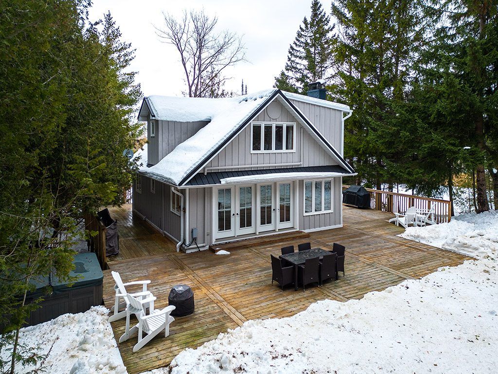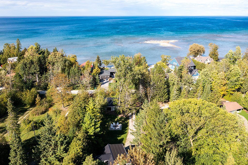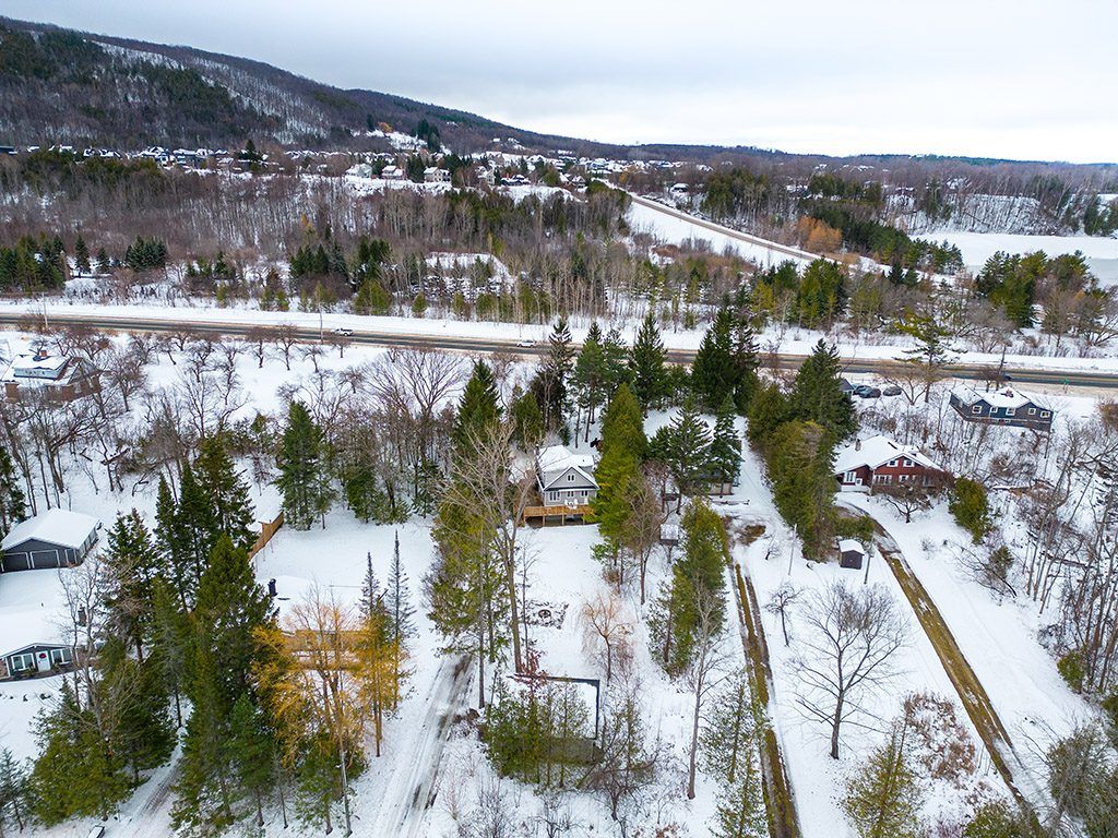 Minutes from the area's private ski clubs and steps to the beach, this 4 season, 4 +1 bedroom chalet offers the perfect location for year-round outdoor adventures. Nestled on a private lot with a long driveway, the home is surrounded by mature trees and lush greenery, creating a serene escape. Inside, wood floors flow throughout, and the cozy living space boasts built-ins, a stone-surround wood stove, and a walkout to the back deck. The eat-in kitchen includes plenty of cupboard space, a peninsula and a coffee bar, perfect for après-ski gatherings. A good size guest bedroom and 3pc bathroom complete the main level. On the upper level you'll find two guest bedrooms and a large primary bedroom, all sharing a 4-pc bath. Enter through the lower level, where a spacious mudroom and ski room provide ample storage for gear. The large rec room serves as an additional bedroom; a great space for hosting guests! Additional highlights include a large wraparound deck, hot tub and wood burning sauna, ideal for outdoor relaxation and entertaining. This property features a separate, rare 650sqft garage, offering potential to transform this unused space into a laneway home. Secondary suites can be a source of additional income, provide more space for guests and support multigenerational living. 3 minutes to georgian peaks ski club and close proximity to downtown thornbury, known for its award-winning dining, boutiques, and coffee shops. Just 15 minutes from collingwood and steps from beach access, this home offers comfort, adventure, and convenience!