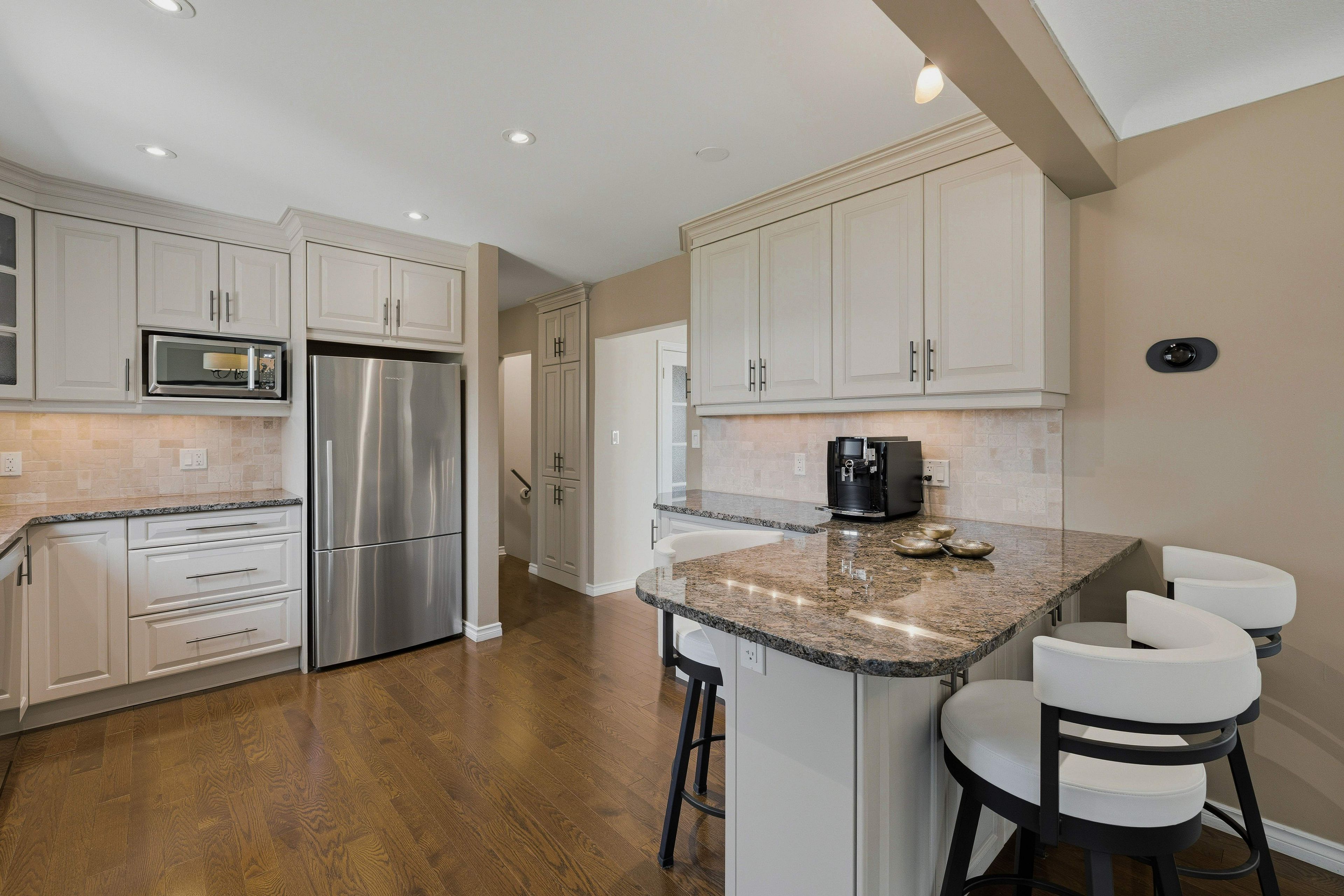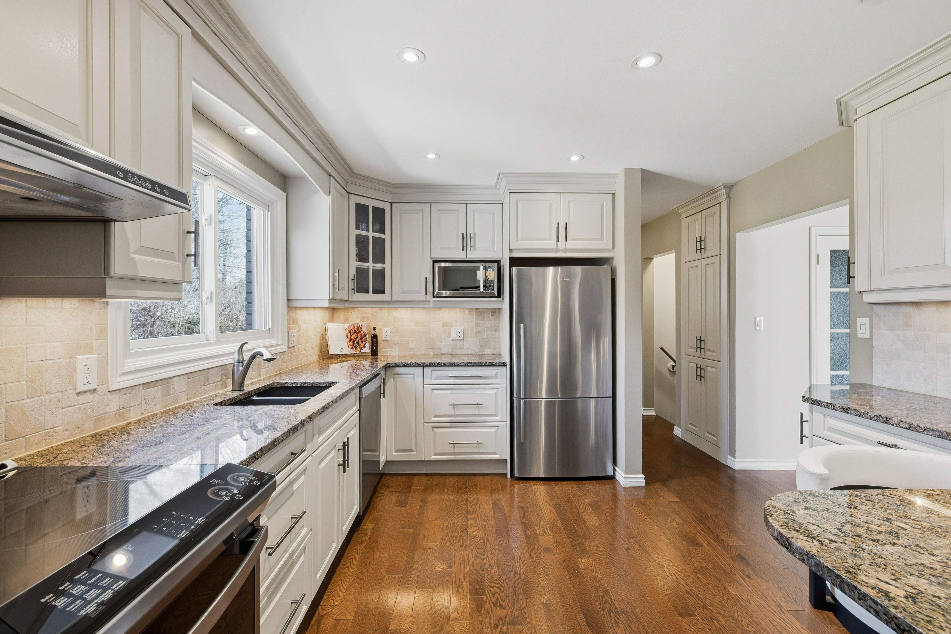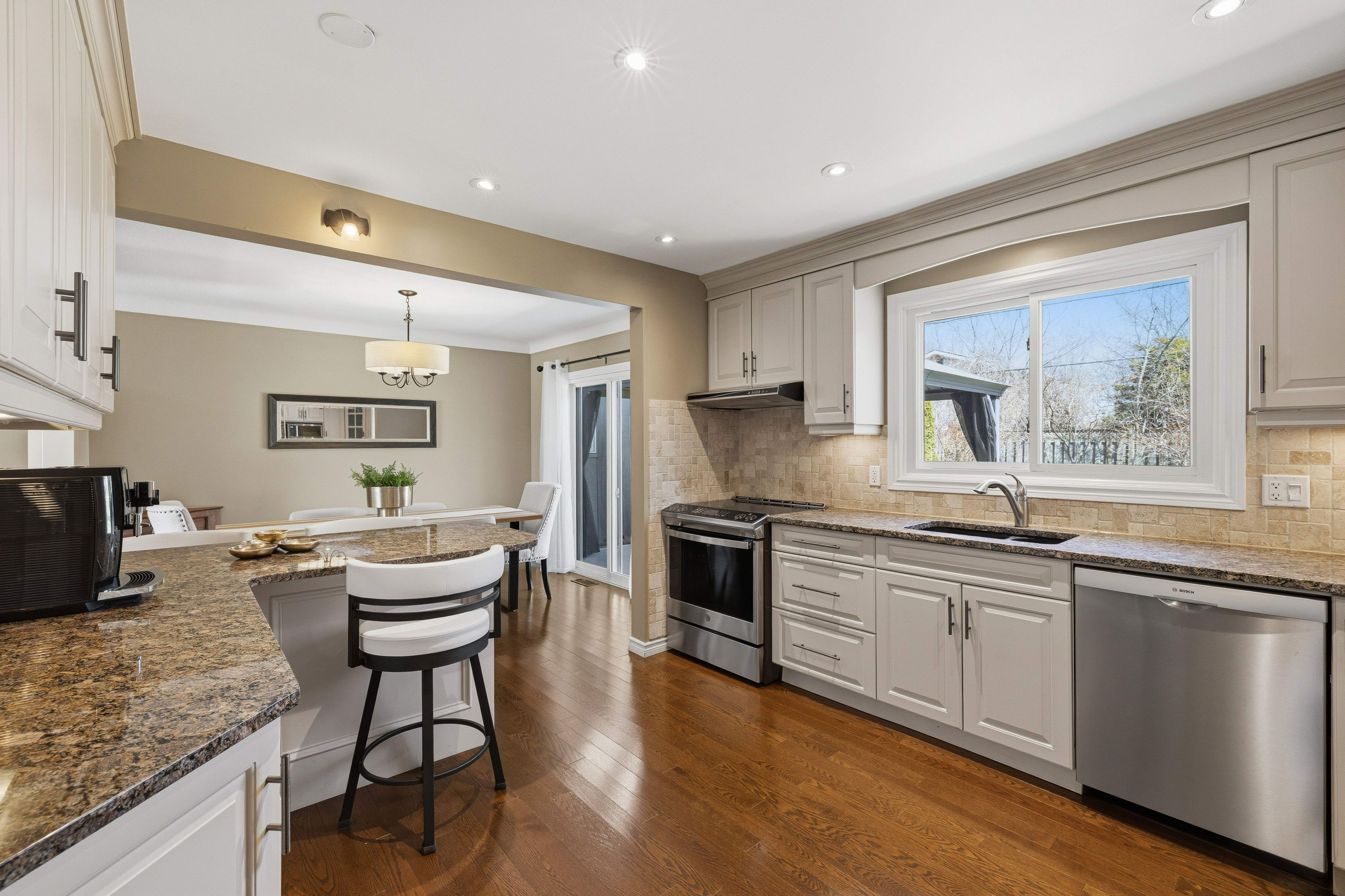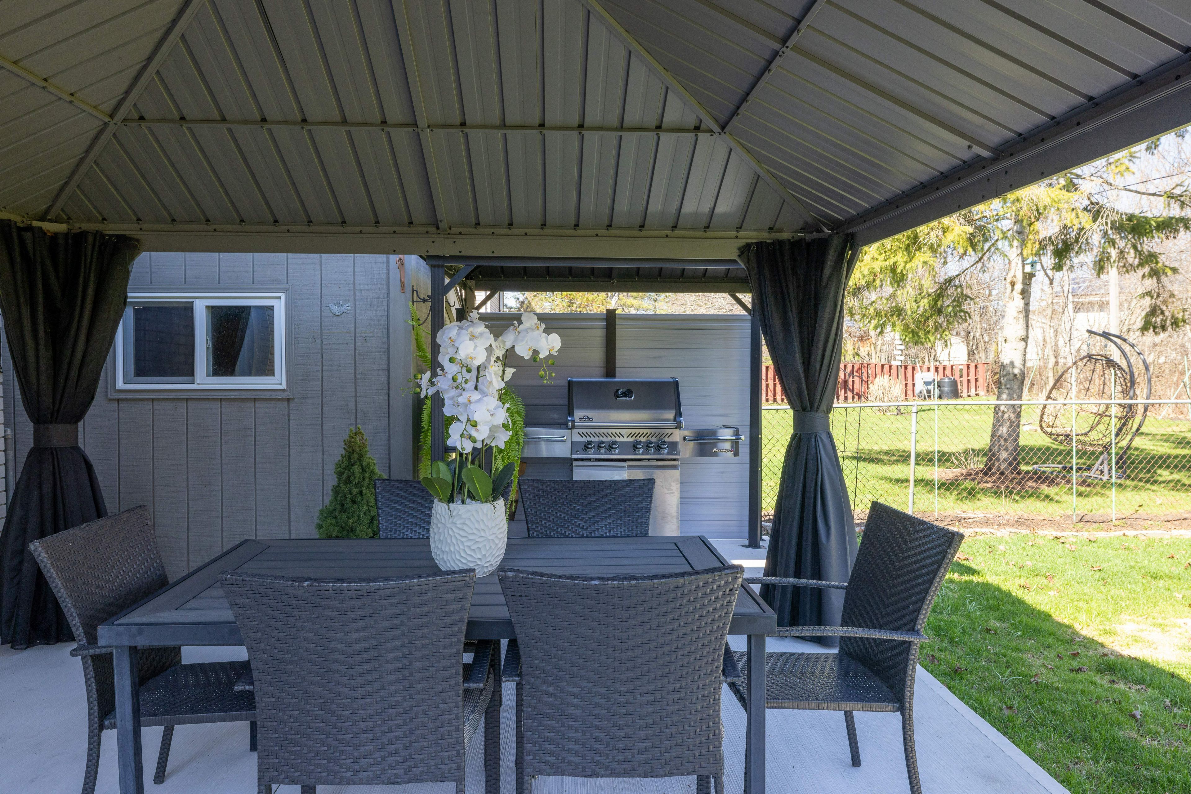 Beautifully maintained, move-in ready west-end kingston home in the mature highly sought-after neighbourhood of henderson place, close to schools, parks, golf course and waterfront amenities. Main level feels bright, open, welcoming with hardwood flooring throughout. Living & dining spaces flow together, creating a comfortable layout for everyday living. Gas fireplace adds warmth & comfort. Kitchen opens to dining area, ideal for daily living & entertaining. Features granite countertops, abundant cabinetry extending into hallway for exceptional storage, under-cabinet lighting, high-end induction stove approx. 3 years old. Dining area includes sliding patio door with direct backyard access. Rear door beside powder room provides additional backyard access, leading into screened-in porch, cozy space perfect for warm evenings, relaxing without bugs, watching tv and enjoying a drink. Upper level includes spacious primary bedroom with walk-in closet & cedar-lined closet. Two additional bedrooms that overlook the backyard, quiet restful setting. Full bathroom completes level. Finished lower level adds extra living space with durable tile flooring, laundry area, flexible recreation & hobby space. Cold storage is insulated for improved usability and efficiency. Major updates include brand-new furnace & central air conditioning installed april 2026, smart thermostat for modern comfort and efficiency. Recent improvements include gazebos(summer 2025), newly added concrete walkway from garage side to backyard, screens added to porch, enhancing comfort, privacy and usability of outdoor space. Recently sealed driveway, fresh clean appearance. Backyard includes bbq area for winter grilling. Shed included for storage. Double car garage with remote door & rear yard access adds convenience, storage and functionality. Close to welborne public school k-8, jr henderson public school k-8, lakeshore pool, minutes to waterfront, ideal for walking, family lifestyle & outdoor enjoyment.
