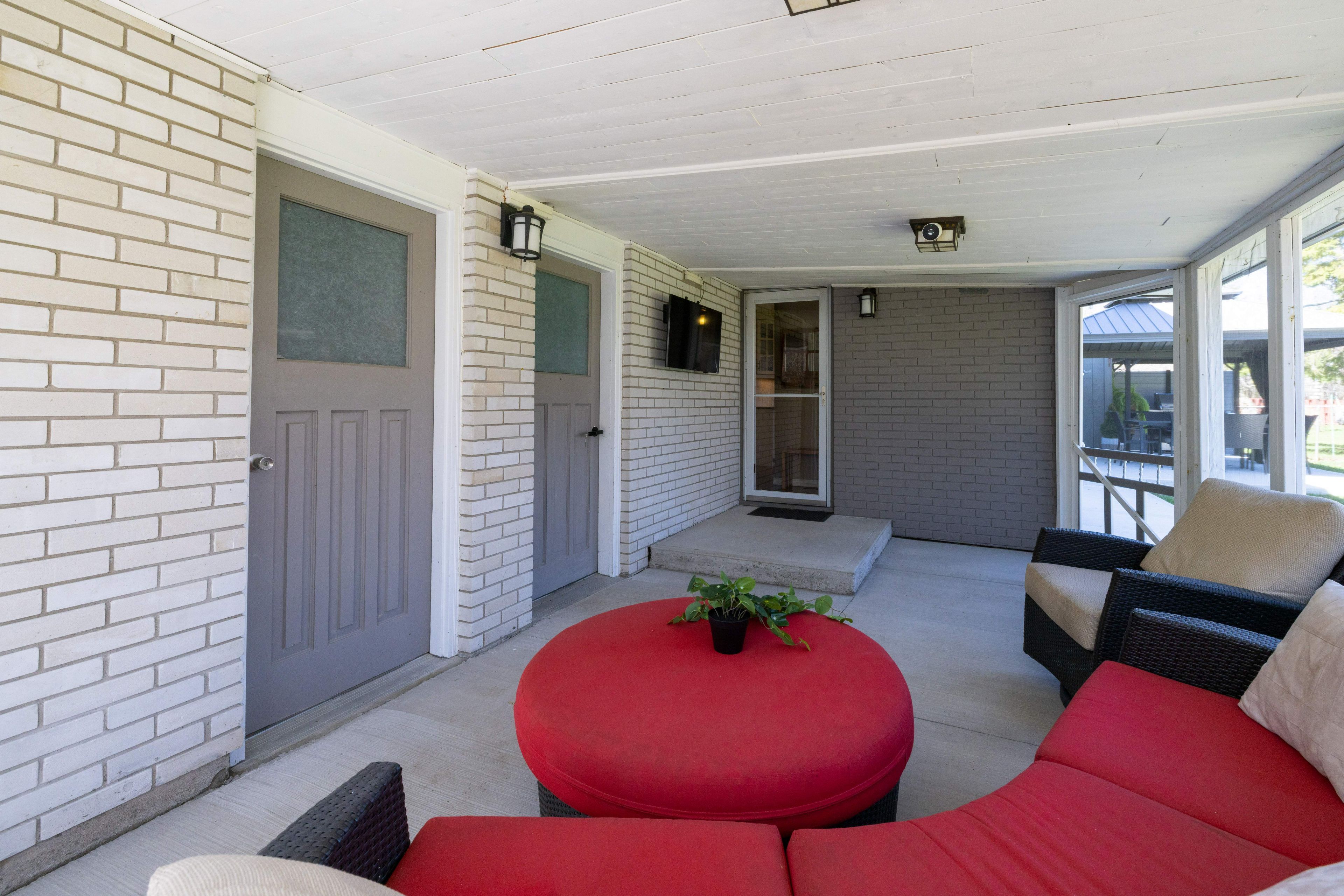 • Screened-in porch offers a bug-free outdoor relaxation space.