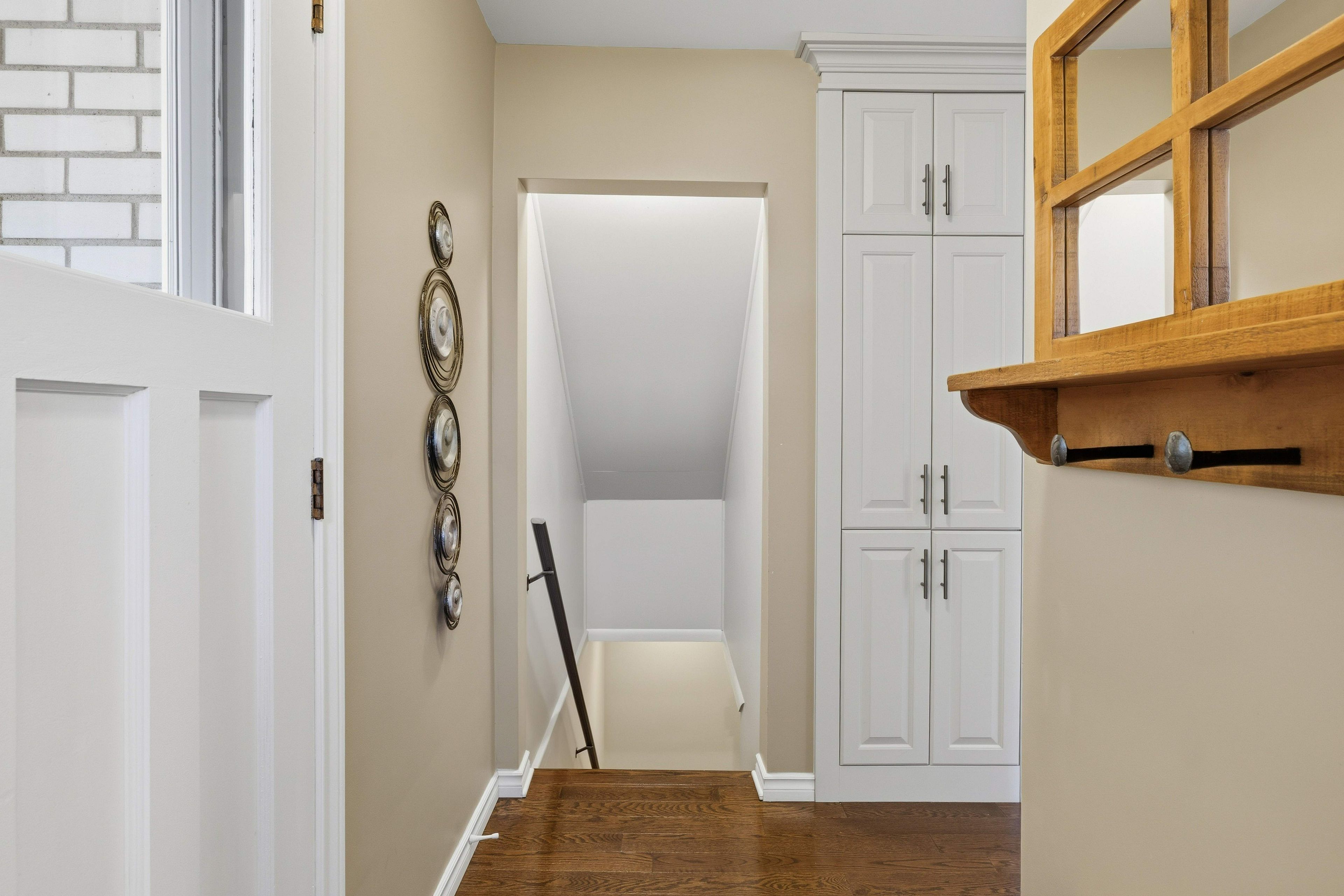 • Bright and open main level with hardwood floors and a gas fireplace.