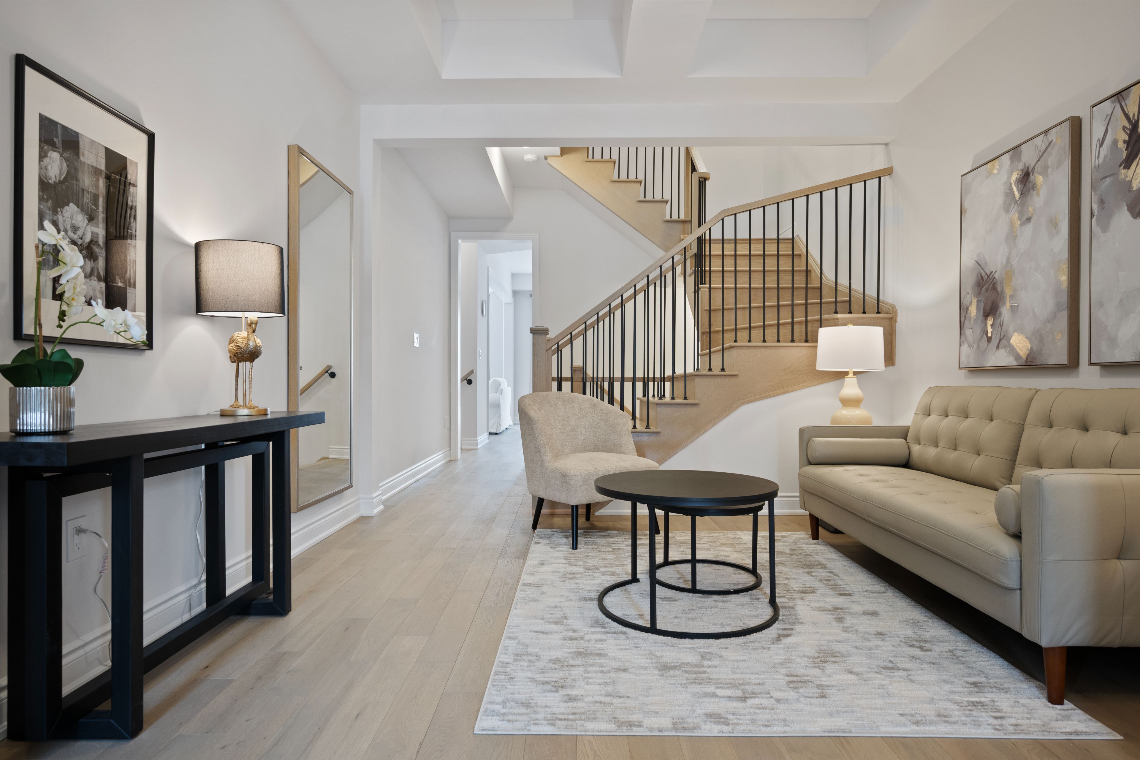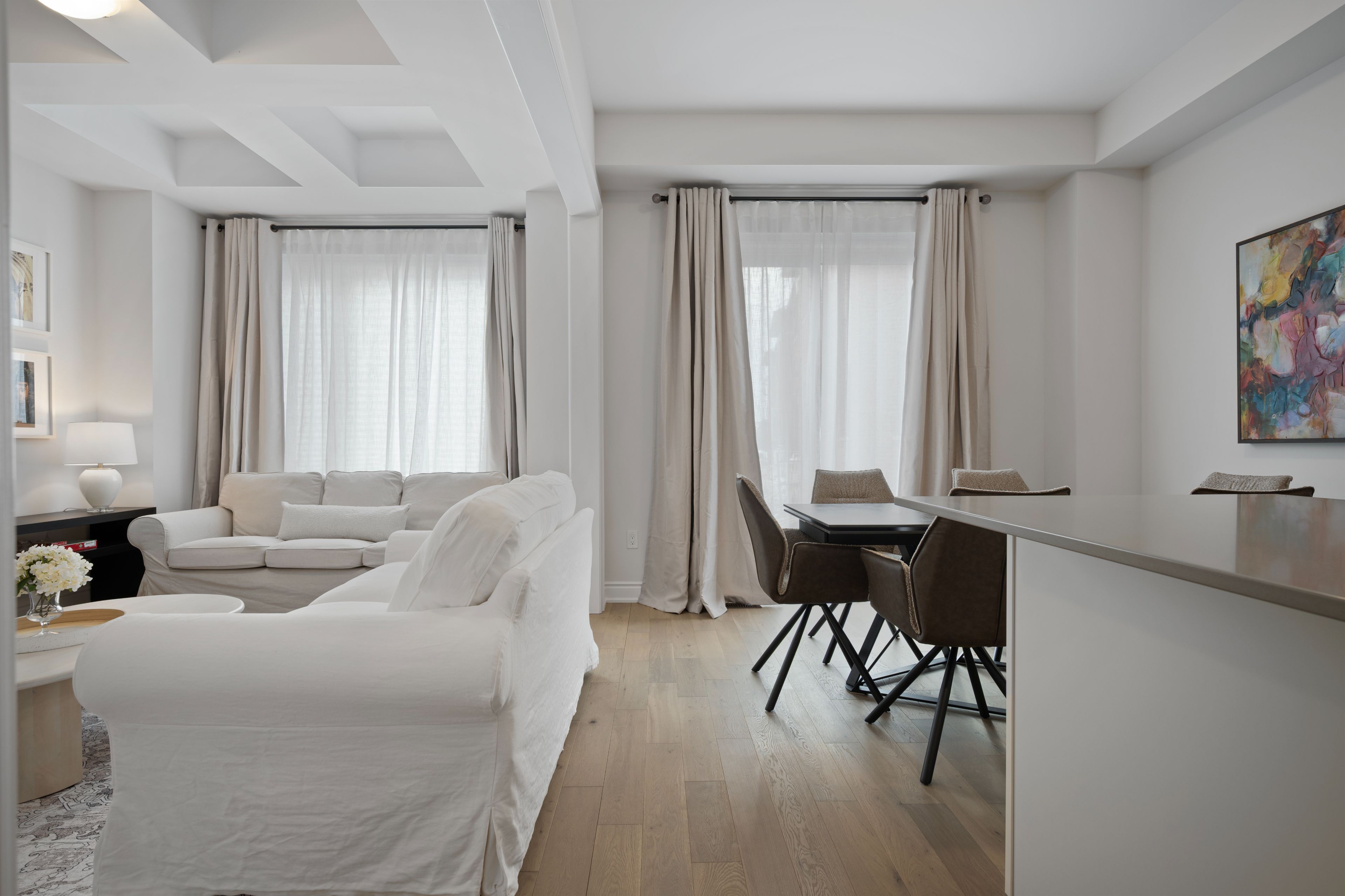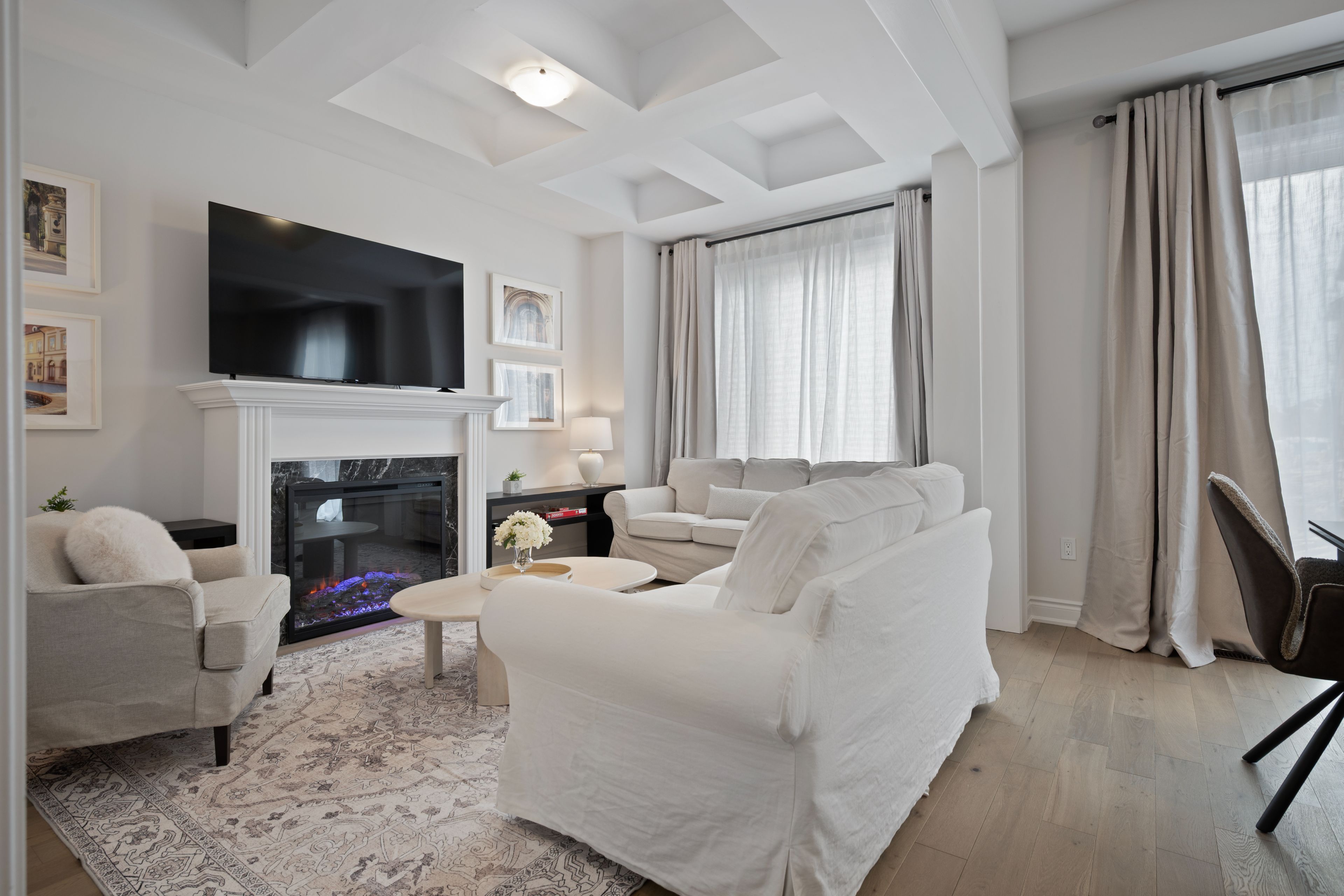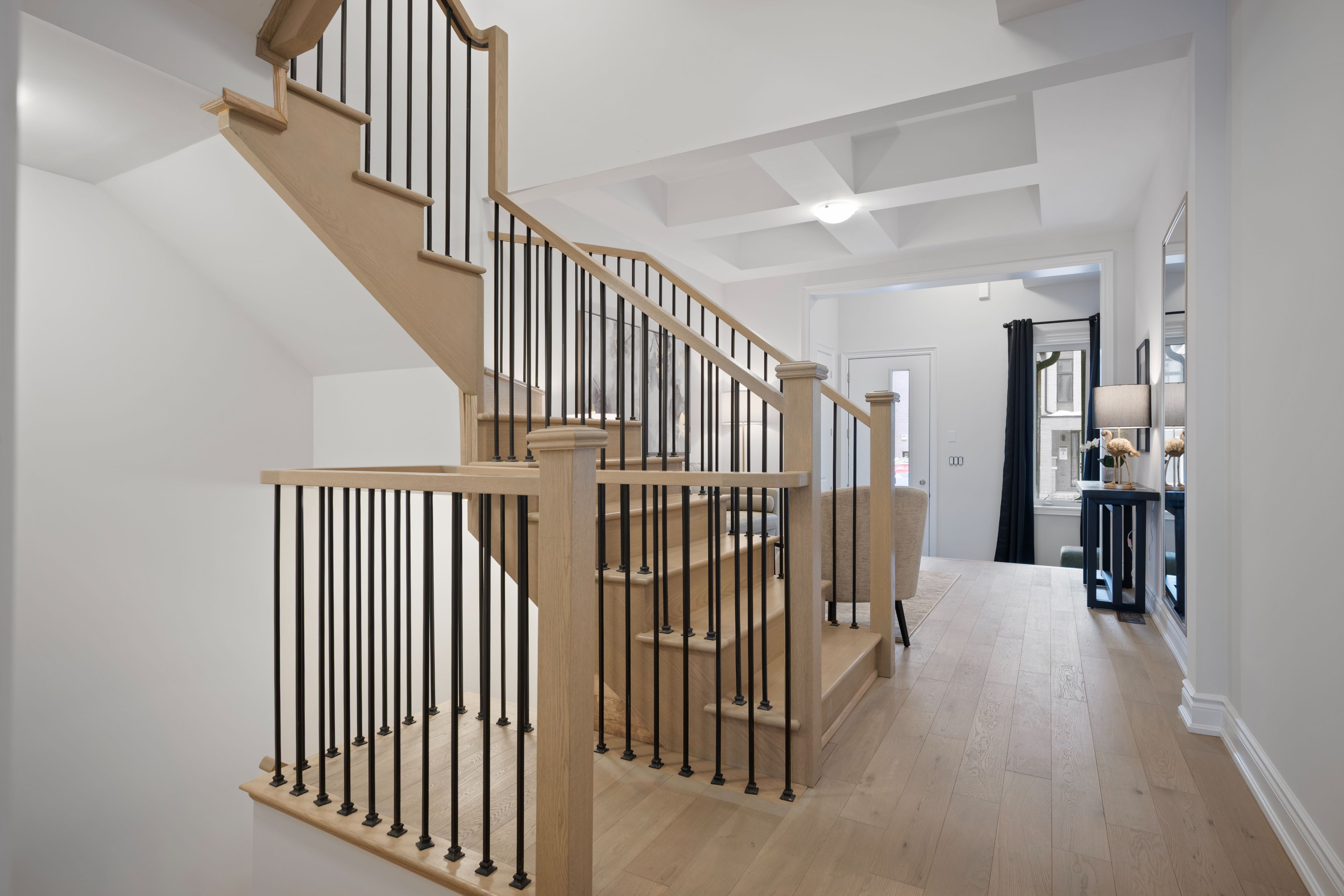 • Main floor family room features a striking coffered ceiling.