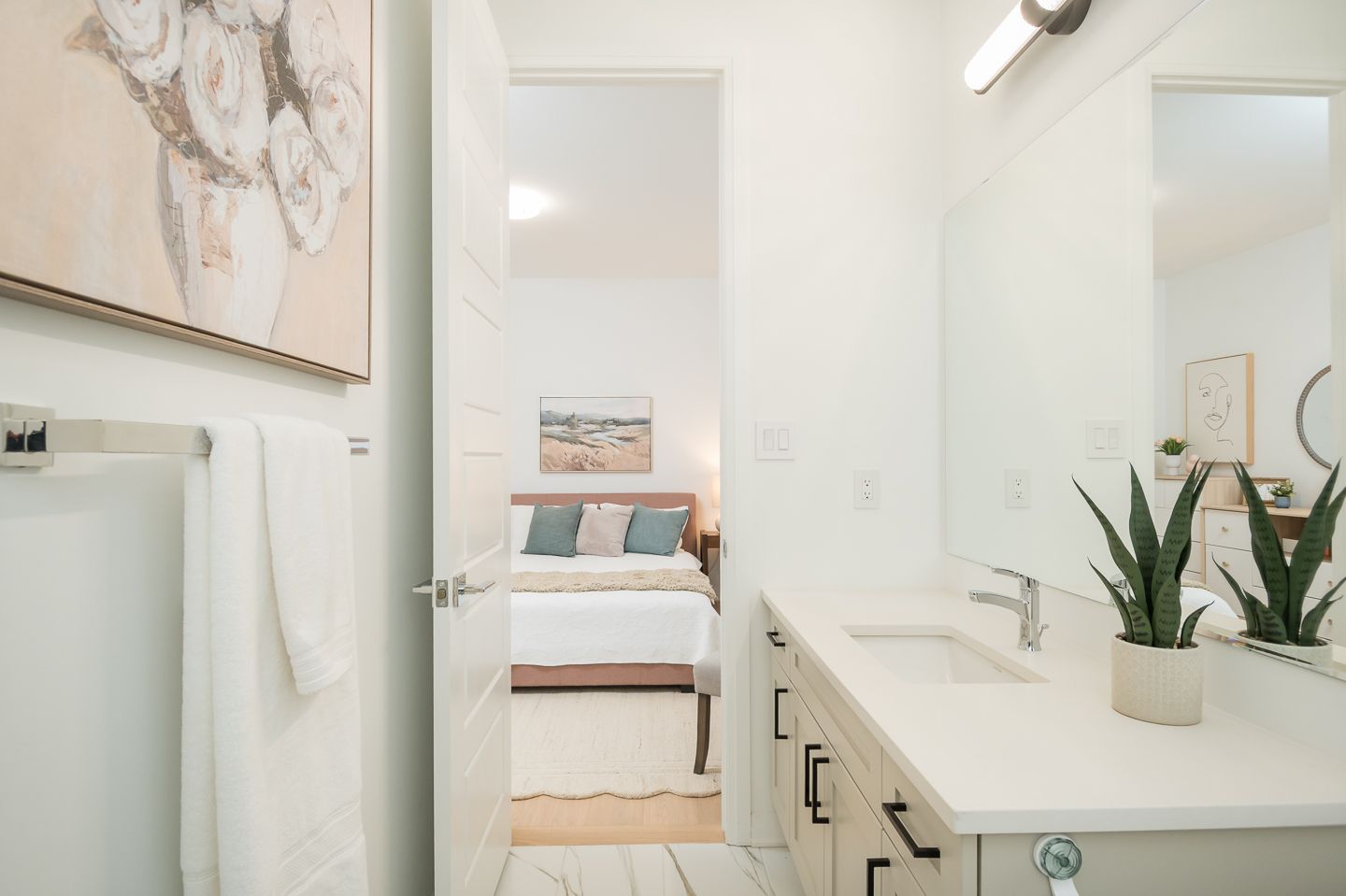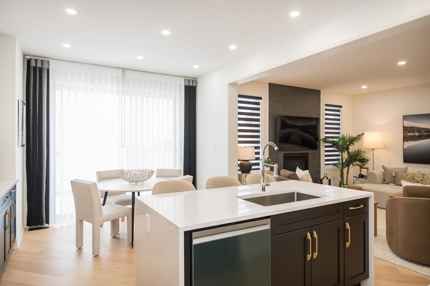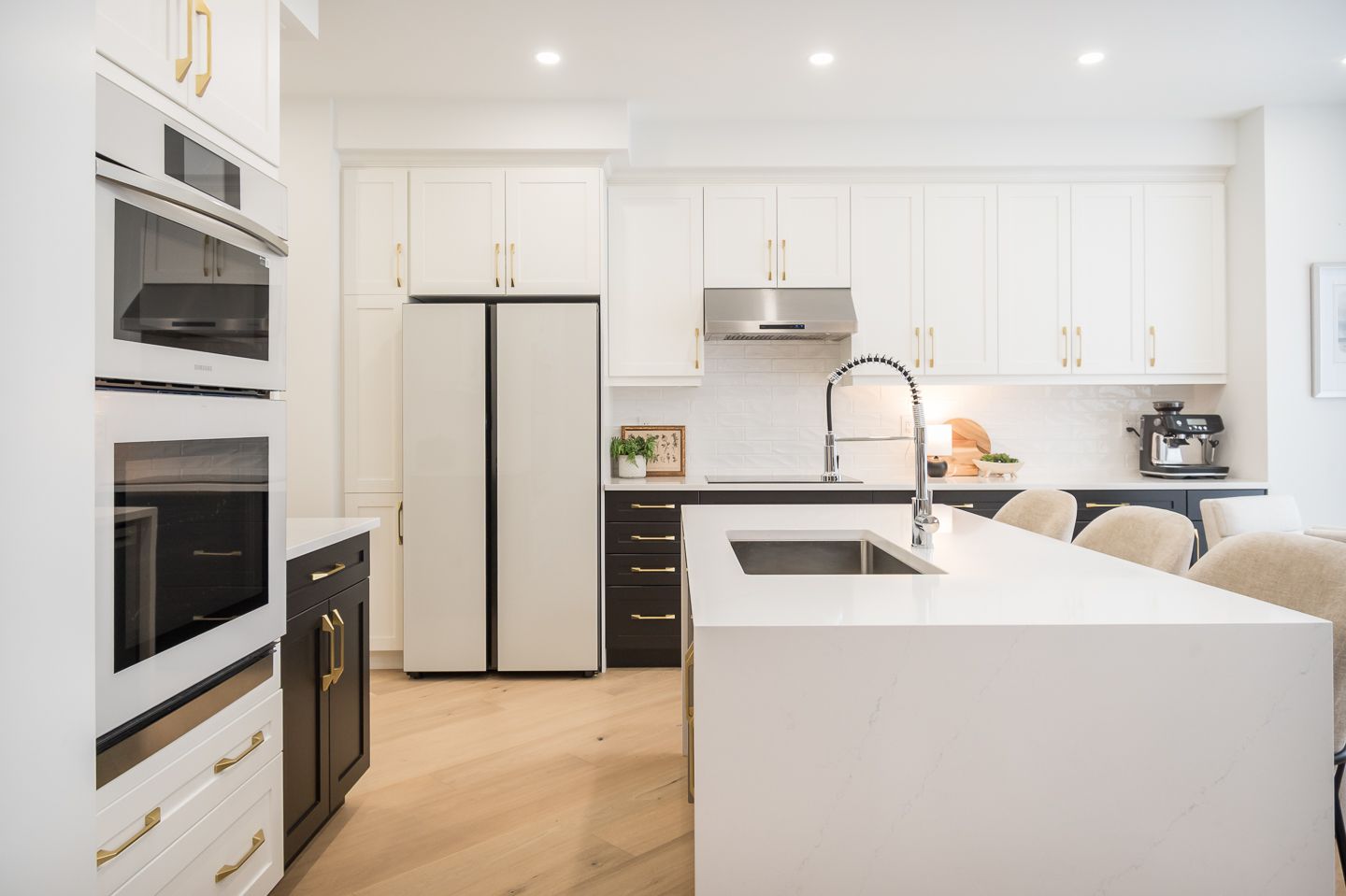 • Modern kitchen features quartz countertops and high-end appliances.