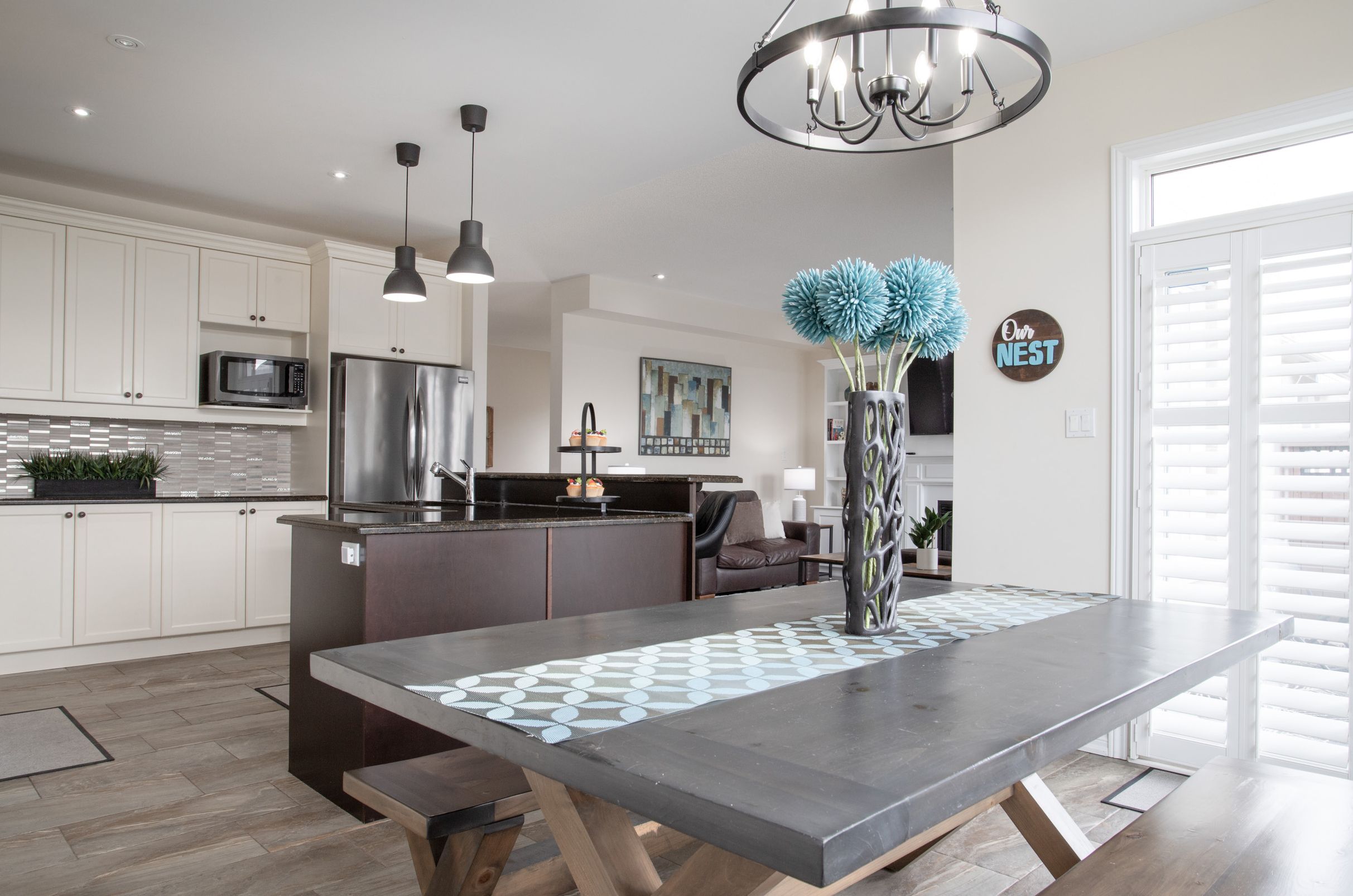 • Bright open-concept main floor with hardwood flooring and modern kitchen.
