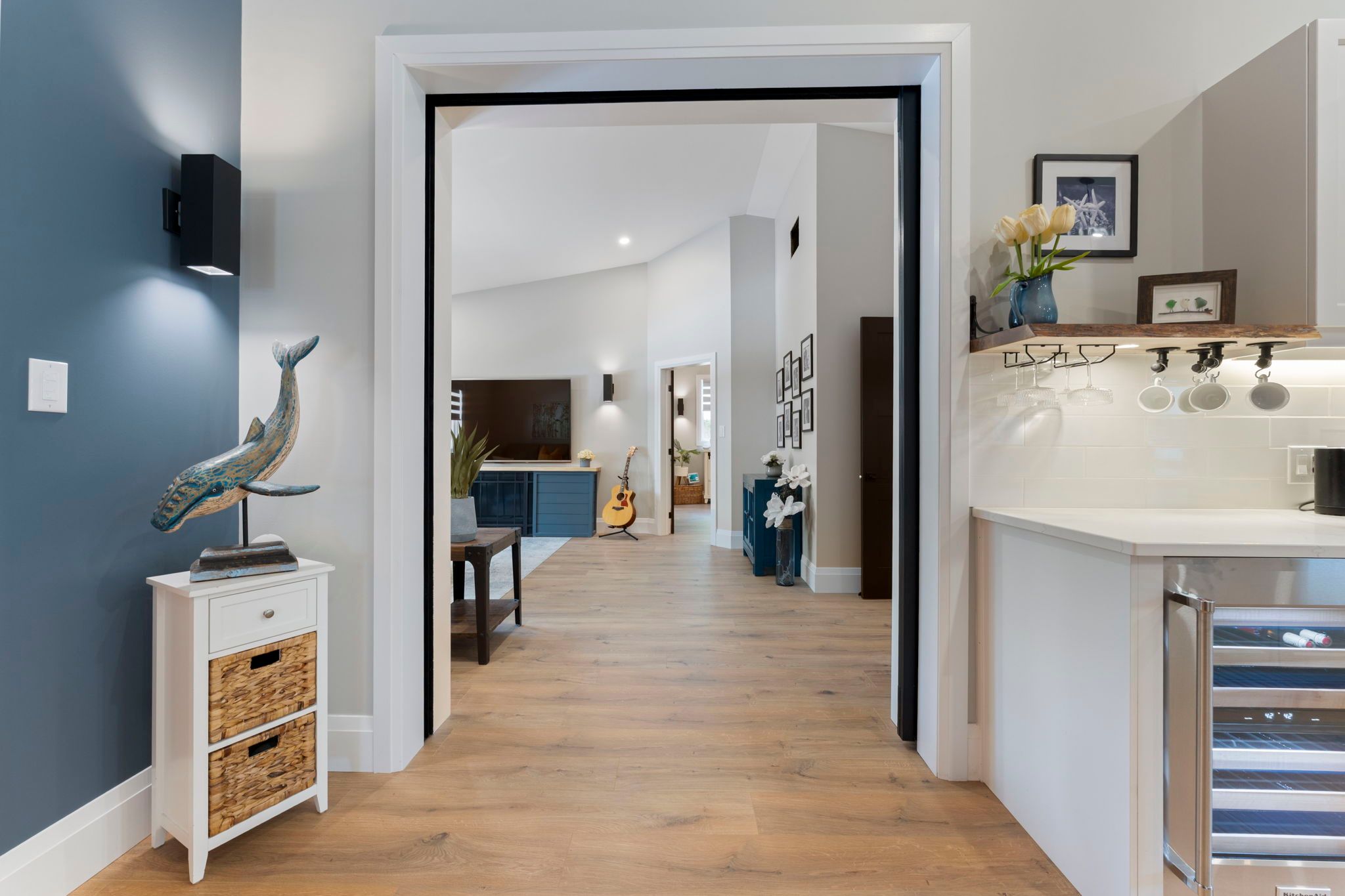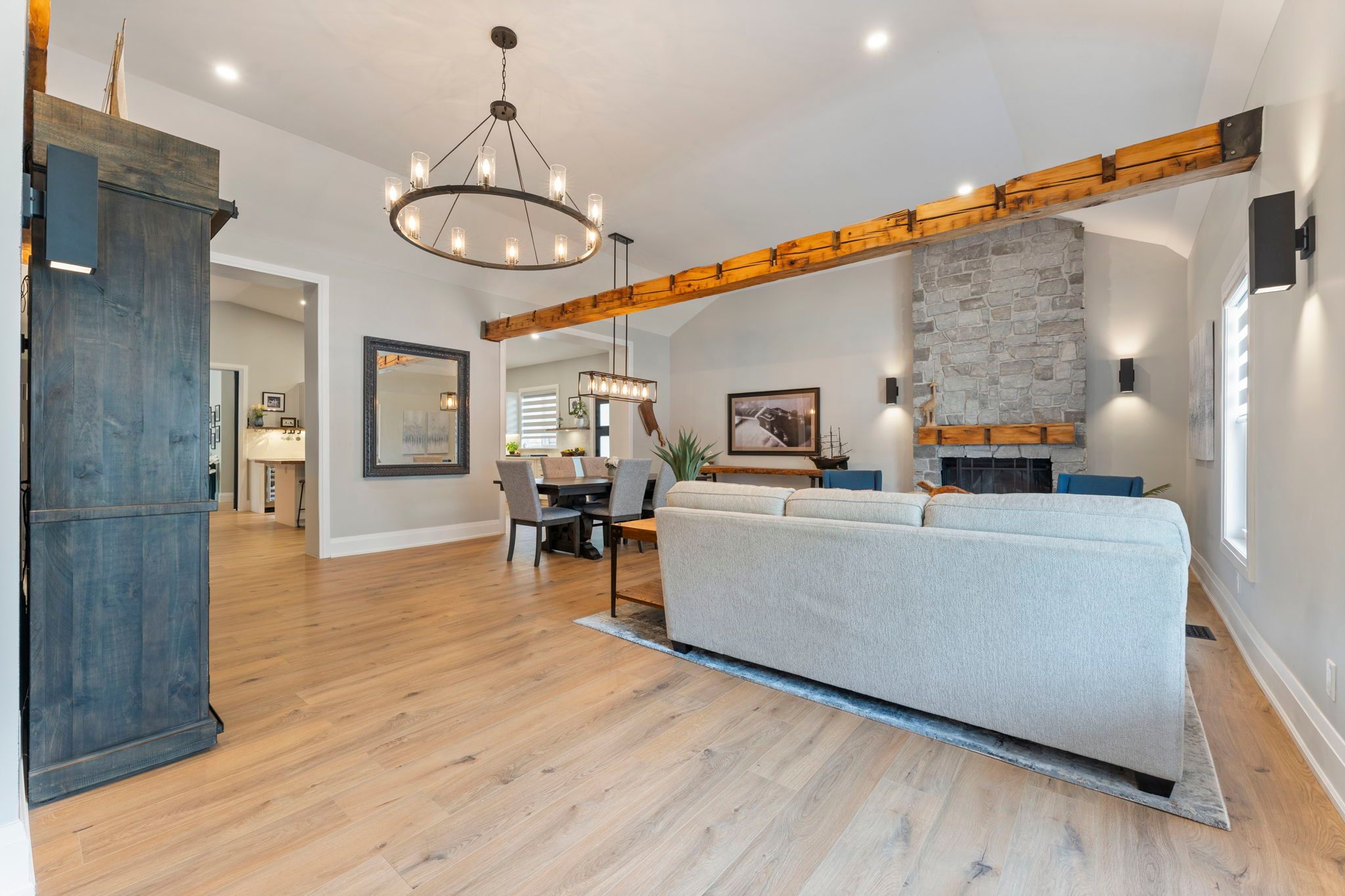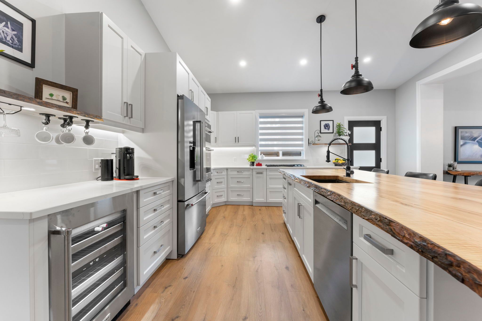 It's not just a home, it's a lifestyle! Sitting on close to a half acre, this sprawling 2655 sq ft. Showpiece bungalow masterfully blends historic charm with contemporary sophistication. Situated on an oversized tree lined private oasis and backing onto green space, it's so lush and peaceful, yet functional with two driveways and garage/workshop. Yoga or art studio to your left, backyard and private deck with hot tub to your right, and up a few steps into your dream home. The foyer has a private guest bath and then opens up into a massive, soaring ceiling kitchen, living room and dining room. The heart of the home - the entertainer's dream kitchen, with 10 ft. Live edge wormy maple slab island, built in appliances including wine fridge, curated lighting, quartz, gas cooktop, and black sink and fixtures, this room is show-stopping. The dining room and living room are breathtaking. Vaulted ceilings with stone fireplace, beamed ceilings, new windows and doors, it's magnificent. Off the living room is the entrance to one of two completely separate private living spaces. This large bedroom with sitting area, walk in closet and five pc bath with private laundry can easily be converted into two bedrooms (by the seller). Back through the kitchen, behind the massive 8 foot sliding door, retreat to your luxurious primary suite. Private den, spa like bath with walk in double, stone shower, and a large secluded bedroom with a secondary room which encompasses a w/in closet, laundry, coffee station, and walkout to private sitting area with hot tub. Accessible via the side entry, a few stairs down, you'll find a private wine cellar/speakeasy/cigar lounge for a moody, intimate retreat. Outside, the massive backyard invites you to unwind, with a private art or yoga studio overlooking the green space beyond, fire pit gathering area, detached garage/workshop, all offering endless lifestyle potential right at home built to the highest standard by a master tradesman.