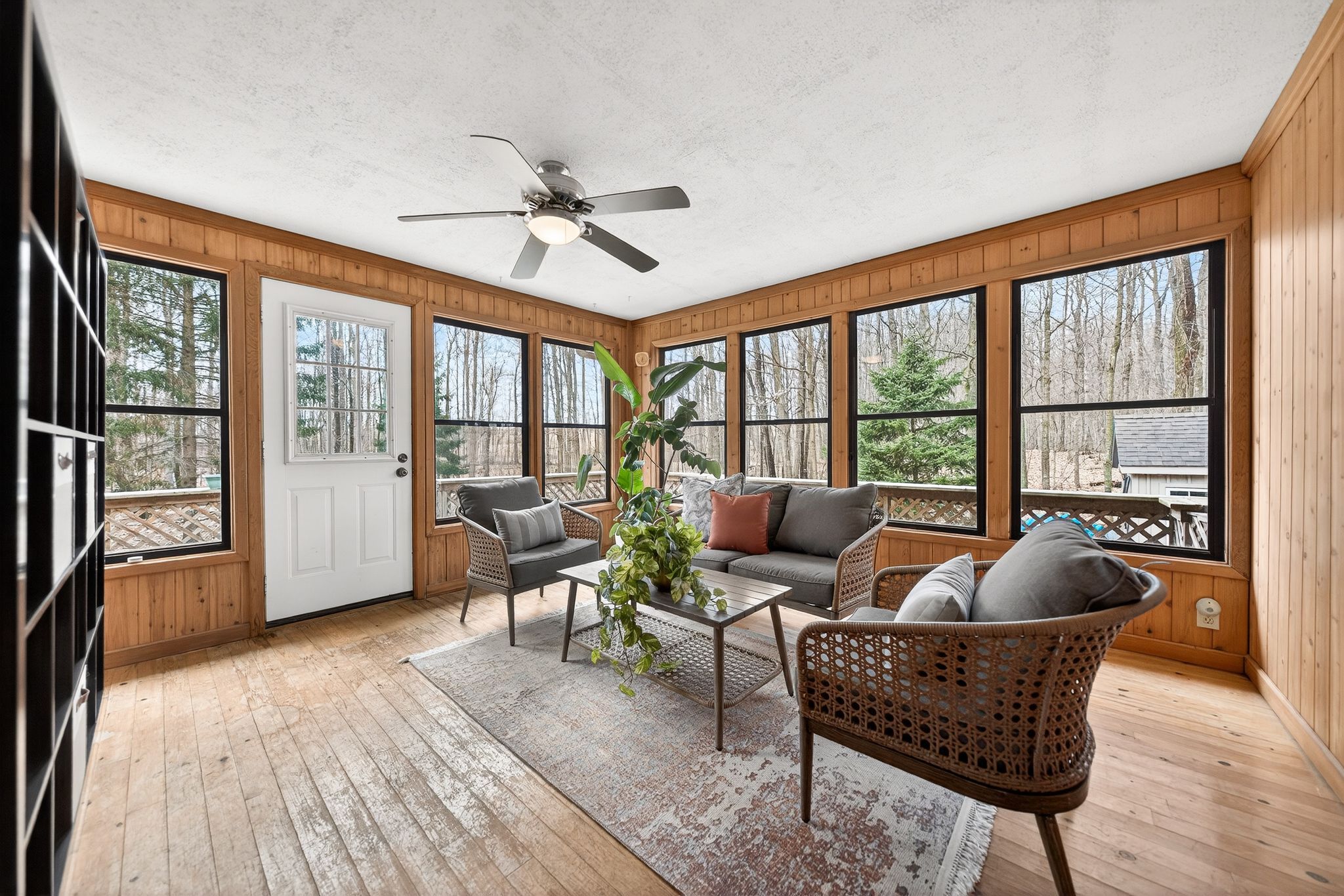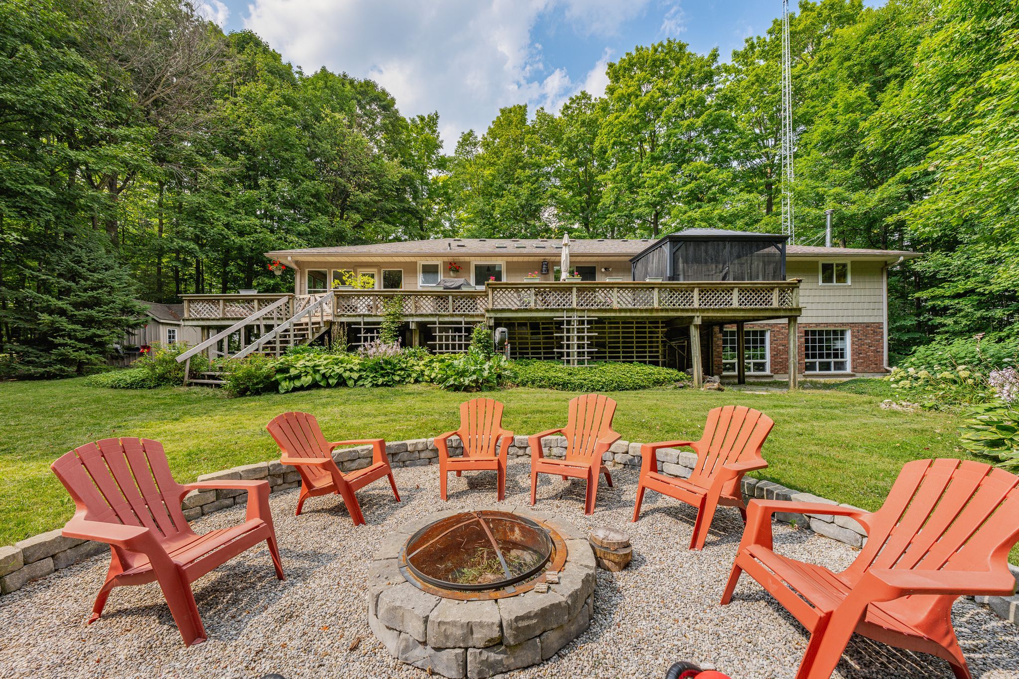 *** just 1 km west of waterloo and less than 5 min to costco & ira needles blvd *** a picturesque 6. 8-acre mature treed lot , this beautifully updated bungalow offers the perfect blend of modern finishes and peaceful country living. With over 4000 sq ft of living space, meticulously renovated from top to bottom, the home features a bright and welcoming foyer, a stylish open-concept layout, and high-quality upgrades throughout. The formal living and dining areas showcase elegant finishes, while the contemporary kitchen with breakfast area flows seamlessly into the spacious family room-ideal for everyday living and entertaining. The main floor offers three generously sized bedrooms and two bathrooms, all designed with comfort and functionality in mind. Enjoy stunning west-facing views from the expansive deck or relax year-round in the charming three-season sunroom, surrounded by nature. The fully finished walkout basement adds incredible versatility, featuring a large recreation area with abundant natural light, an additional bedroom ( currently being used as games-room ideal space for extended family or guests ) , a full bathroom, and an office. Additional features include a workshop, laundry area, and ample storage. Surrounded by a beautiful mix of mature trees, this private and serene property is truly a rare find-offering turnkey, move-in ready living just minutes from the city.