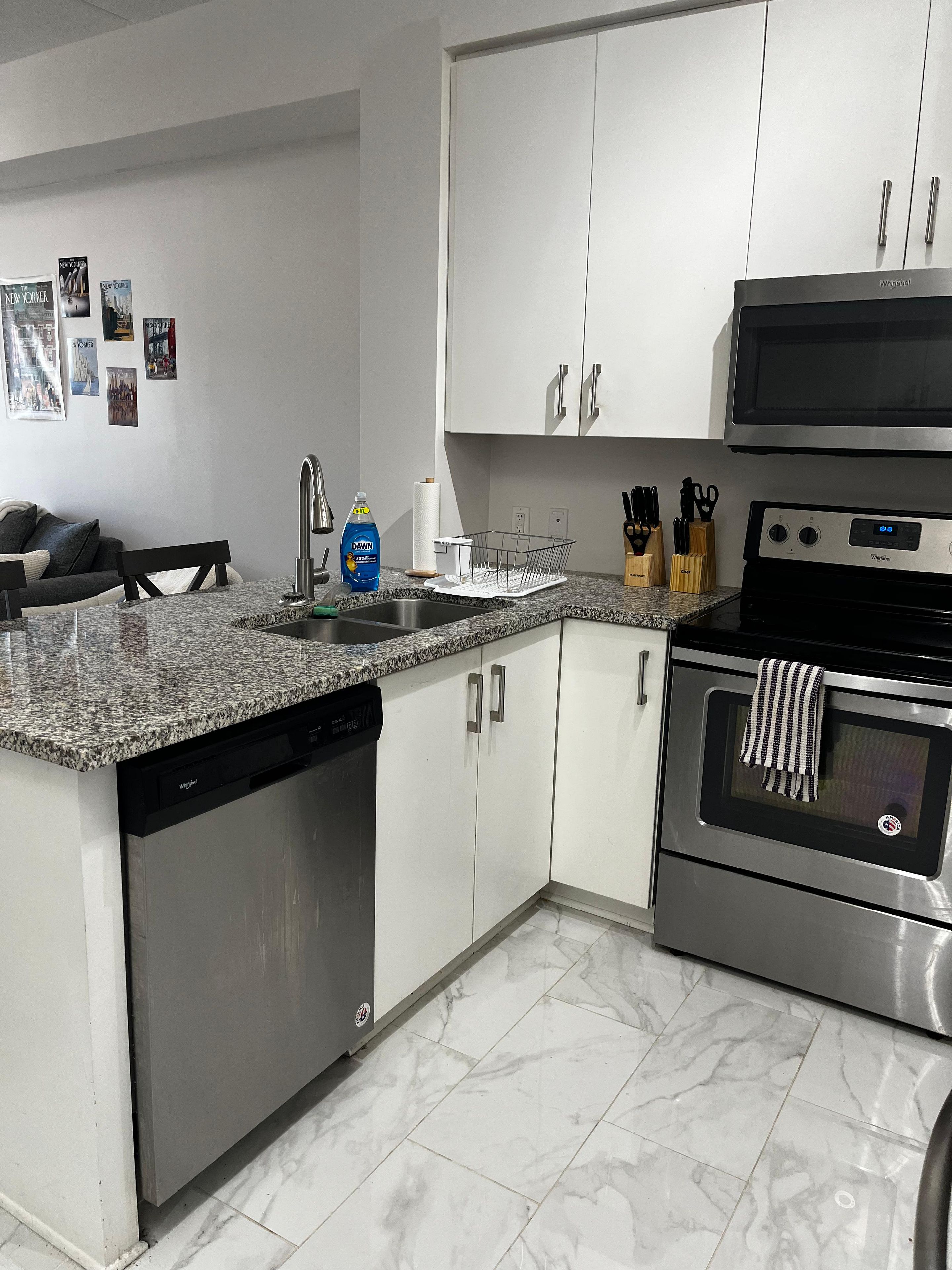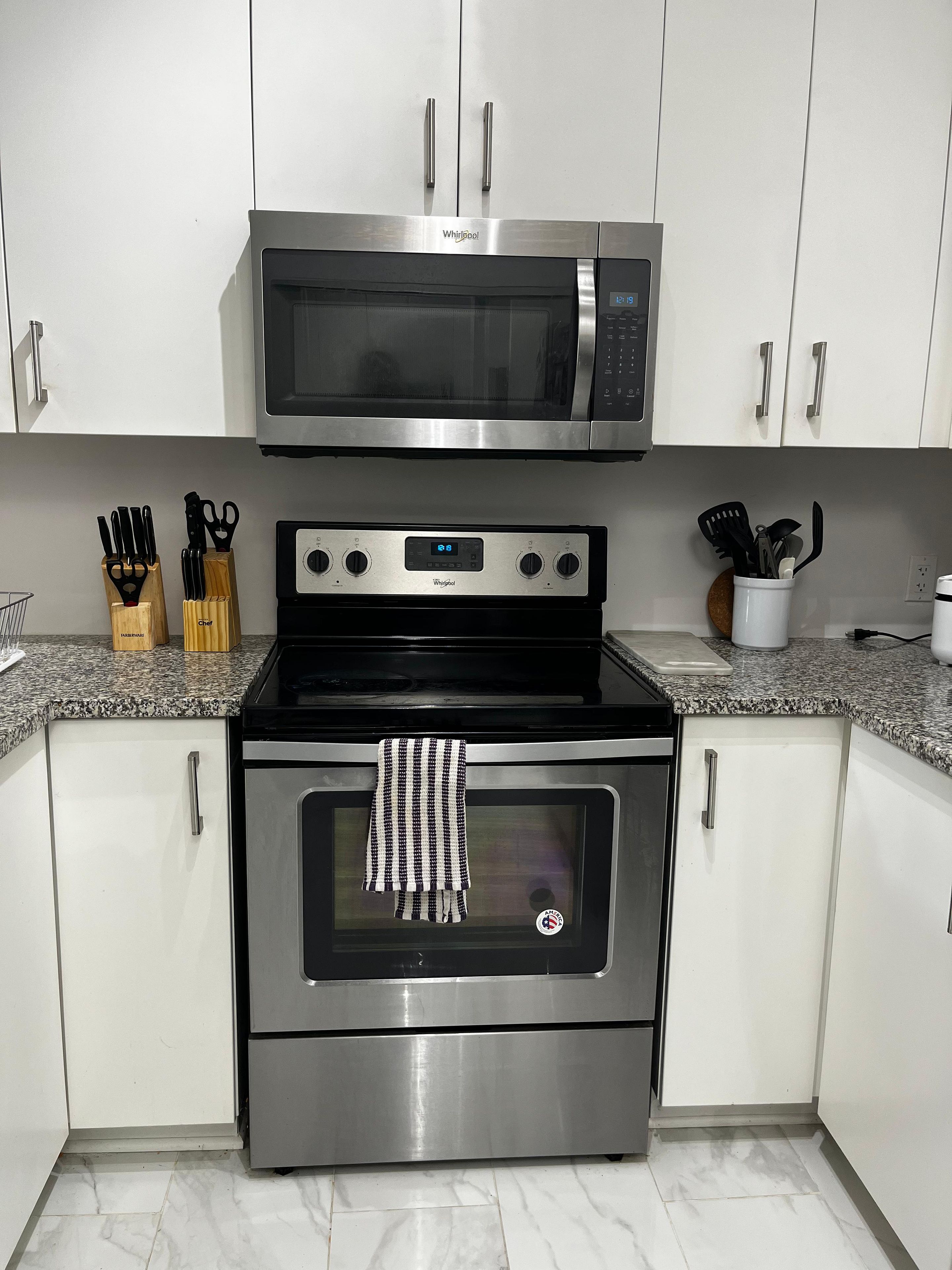 • Upgraded kitchen with granite countertops and stainless steel appliances.