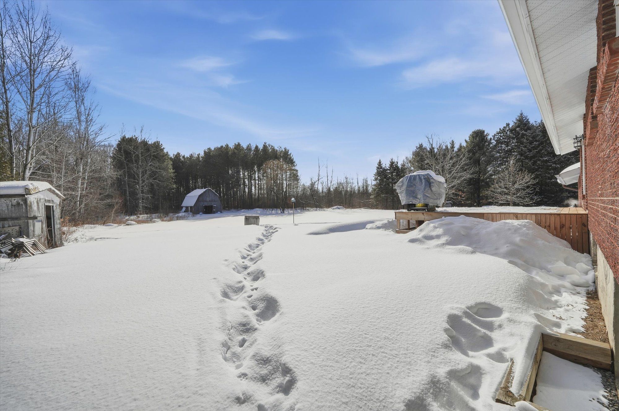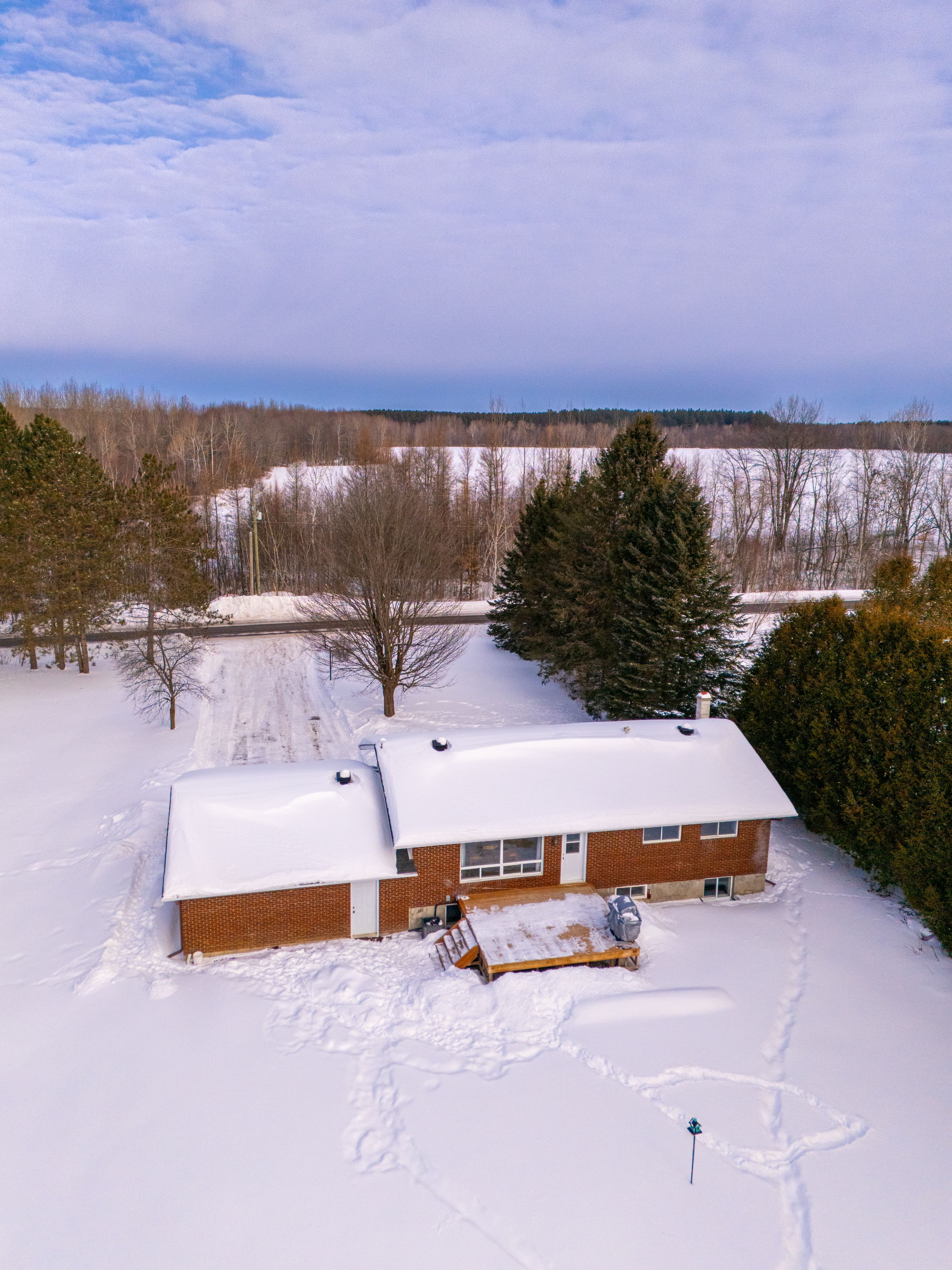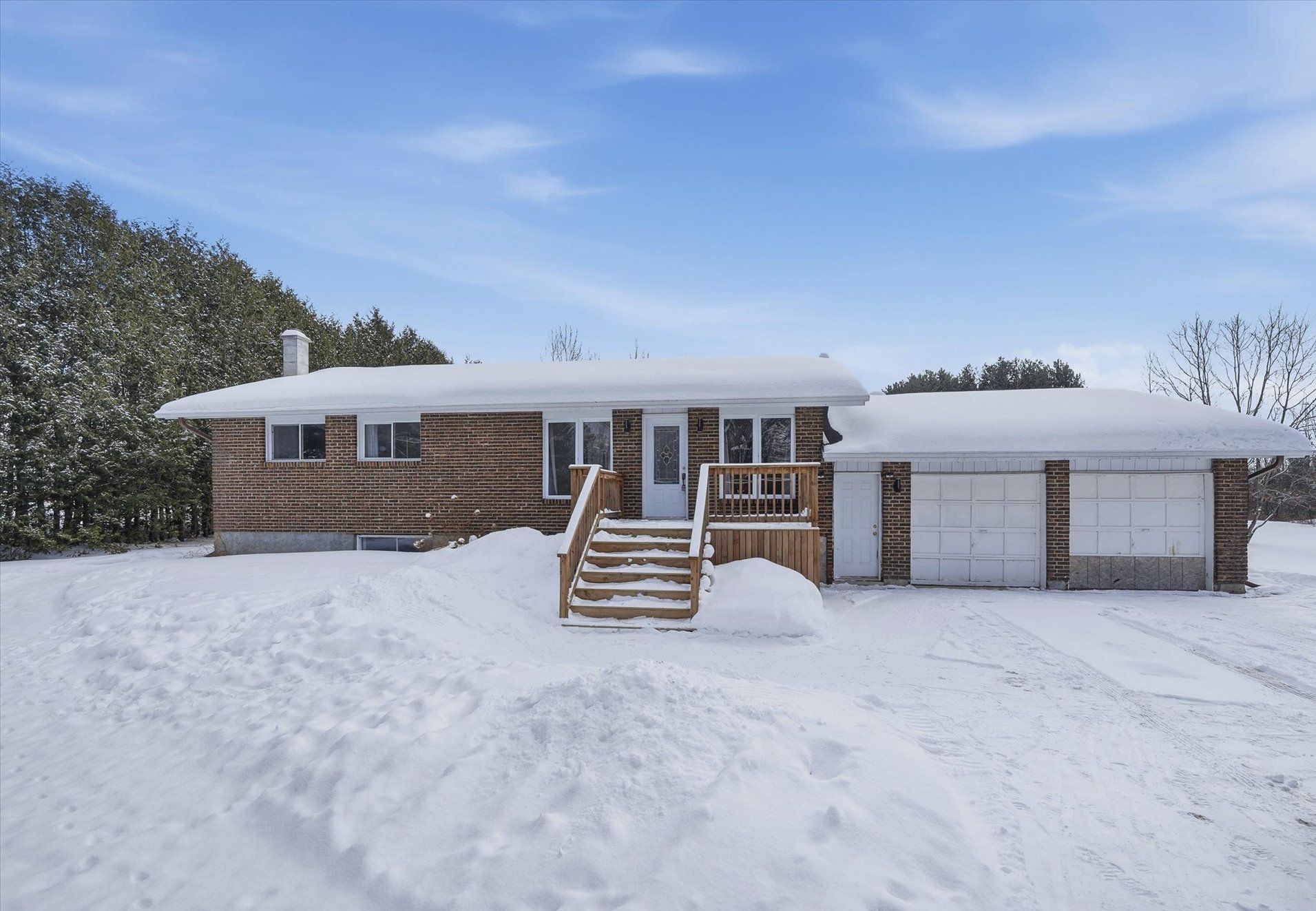 Welcome to 1285 calypso street, an exceptional country property set on approximately 17 acres, conveniently located just minutes from highway 417. This unique offering delivers the perfect blend of privacy, natural beauty, and outdoor potential, making it ideal for hobby farm enthusiasts, nature lovers, or those seeking a peaceful rural retreat. Upon entry, you're welcomed by a bright and spacious oversized living room, filled with natural light. The open-concept kitchen and dining area is well-suited for family living and entertaining, with patio doors leading to the rear deck (2023), providing a seamless connection to the outdoors. Down the hall, the main level offers a comfortable primary bedroom, two additional bedrooms, and a 4-piece main bathroom. The lower level, recently finished in 2026, expands the living space with a versatile rec room and workout area, an additional fourth bedroom, a full bathroom, and laundry and ample storage. The expansive grounds are a true highlight, featuring winding walking trails lined with raspberry bushes throughout the acreage, perfect for quiet exploration and enjoying the natural surroundings. Approximately 20 mature maple trees offer the opportunity for seasonal maple syrup tapping, while a scenic pond (perfect for ice skating in the winter!) located beside the barn adds charm and attracts local wildlife. Additional features include front and rear decks completed in 2023, enhancing outdoor living and enjoyment of the serene landscape. This rare property offers endless possibilities while remaining close to town amenities and commuter routes.