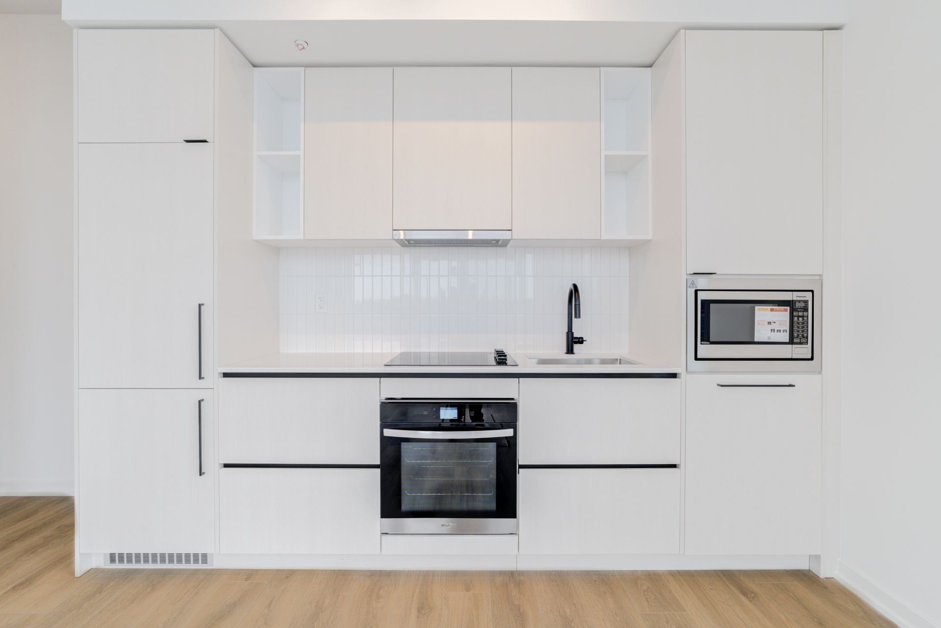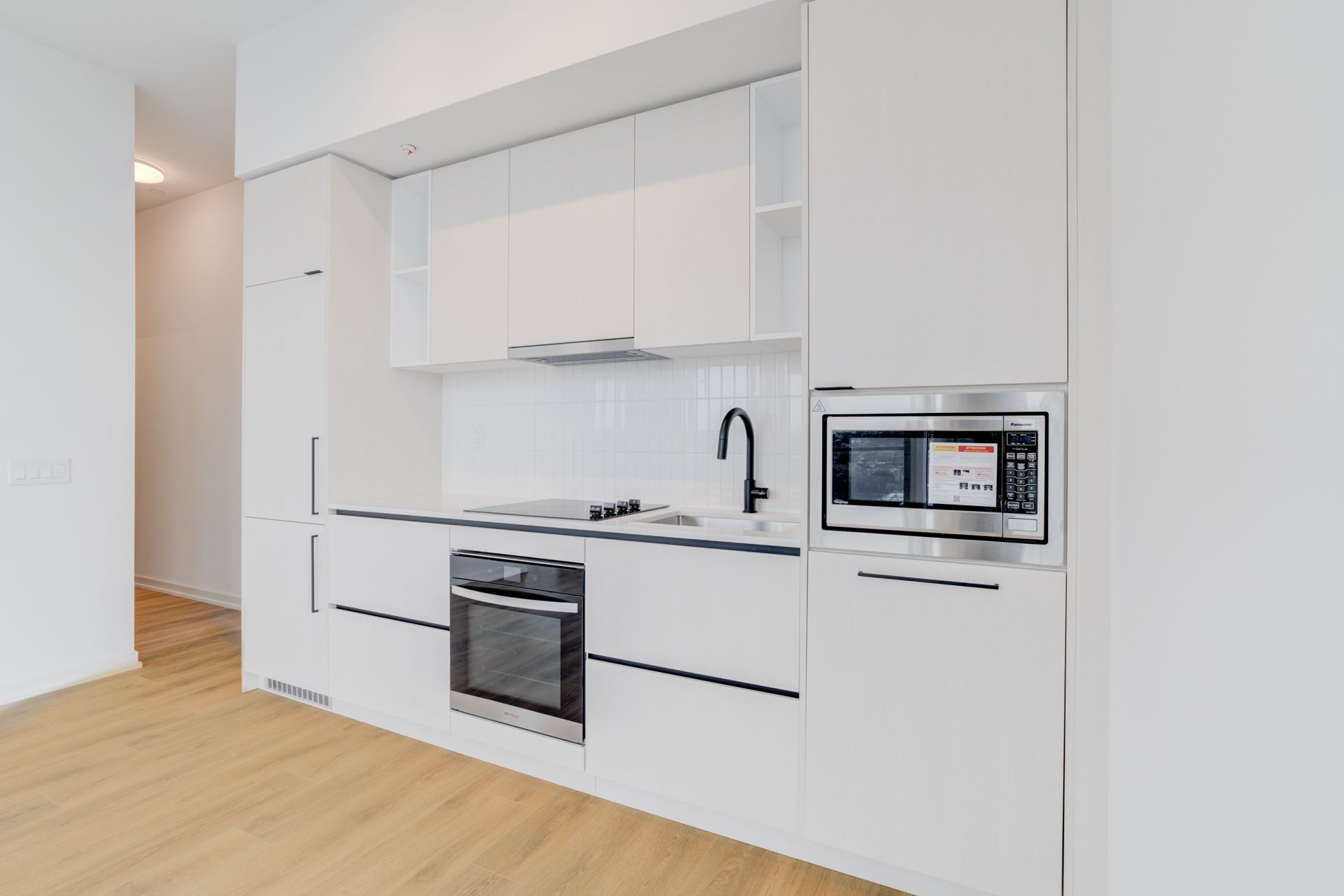 • Modern kitchen with quartz countertops and stainless steel appliances.