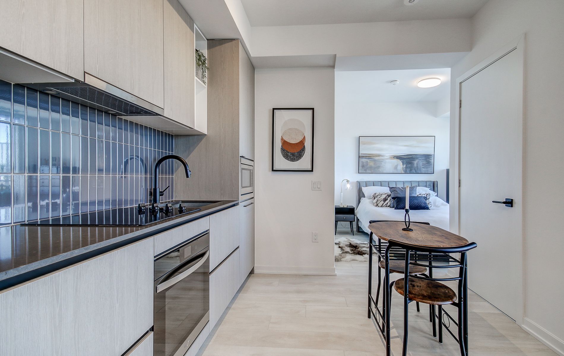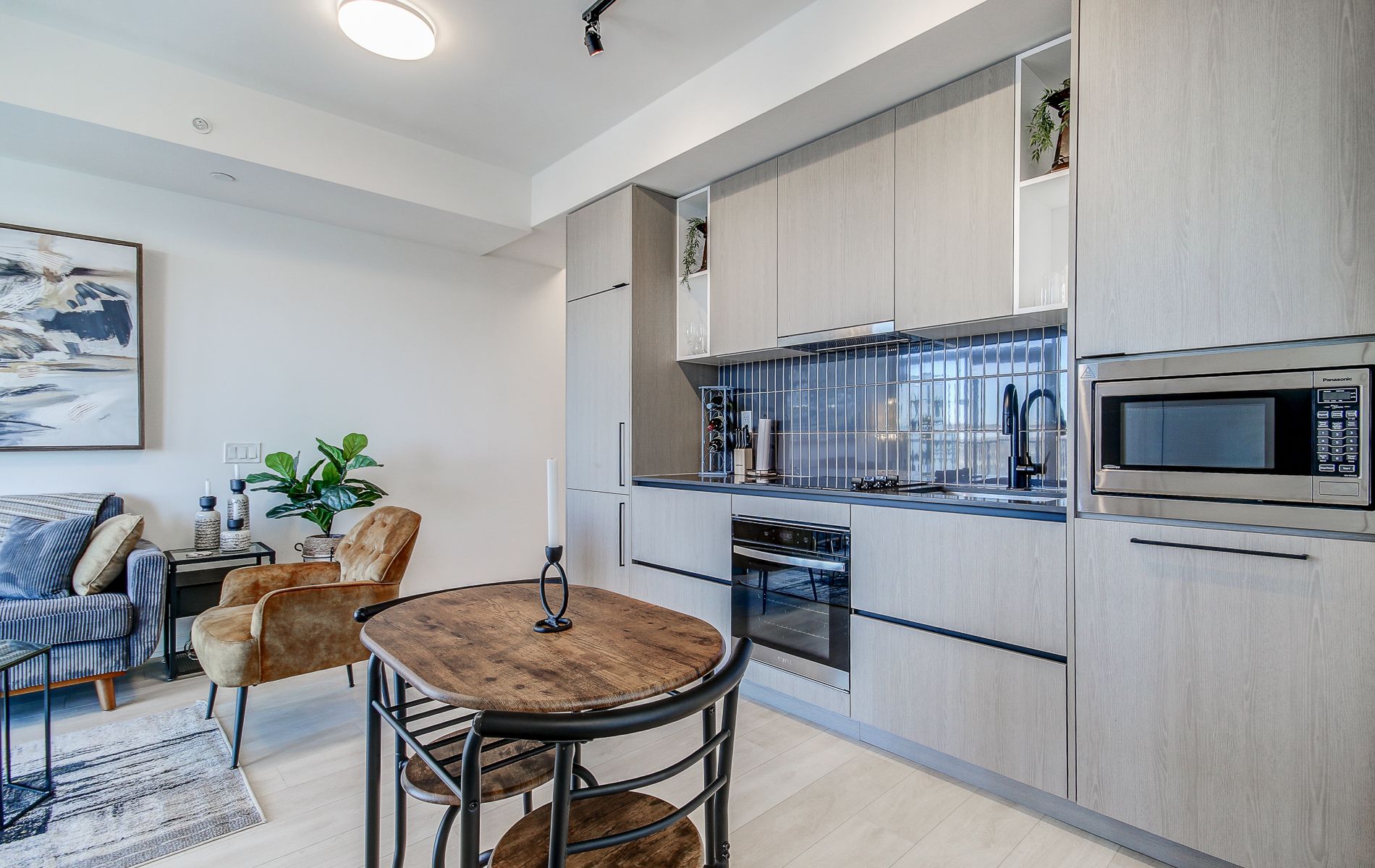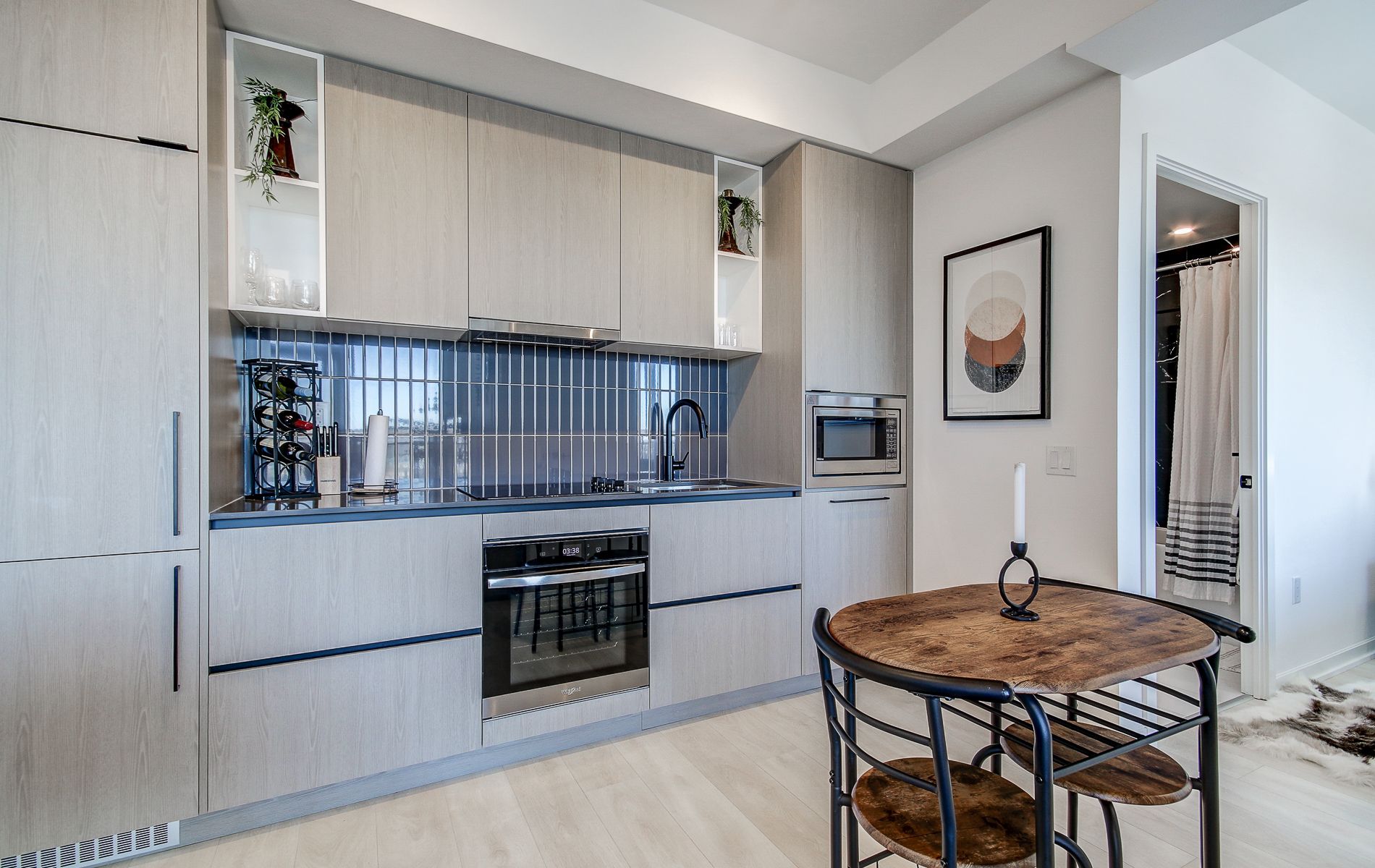 • Equipped kitchen with sleek built-in appliances for convenience.