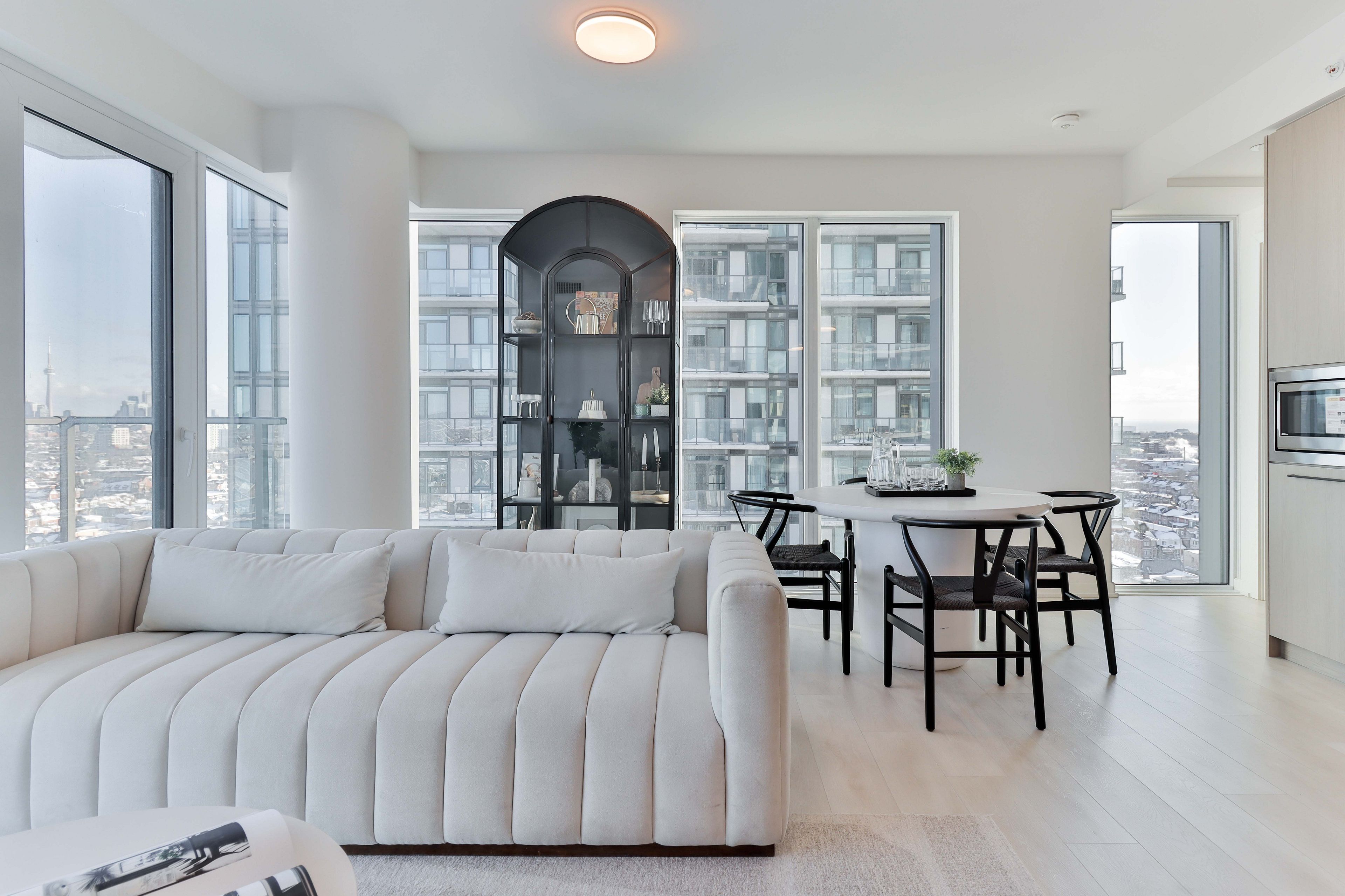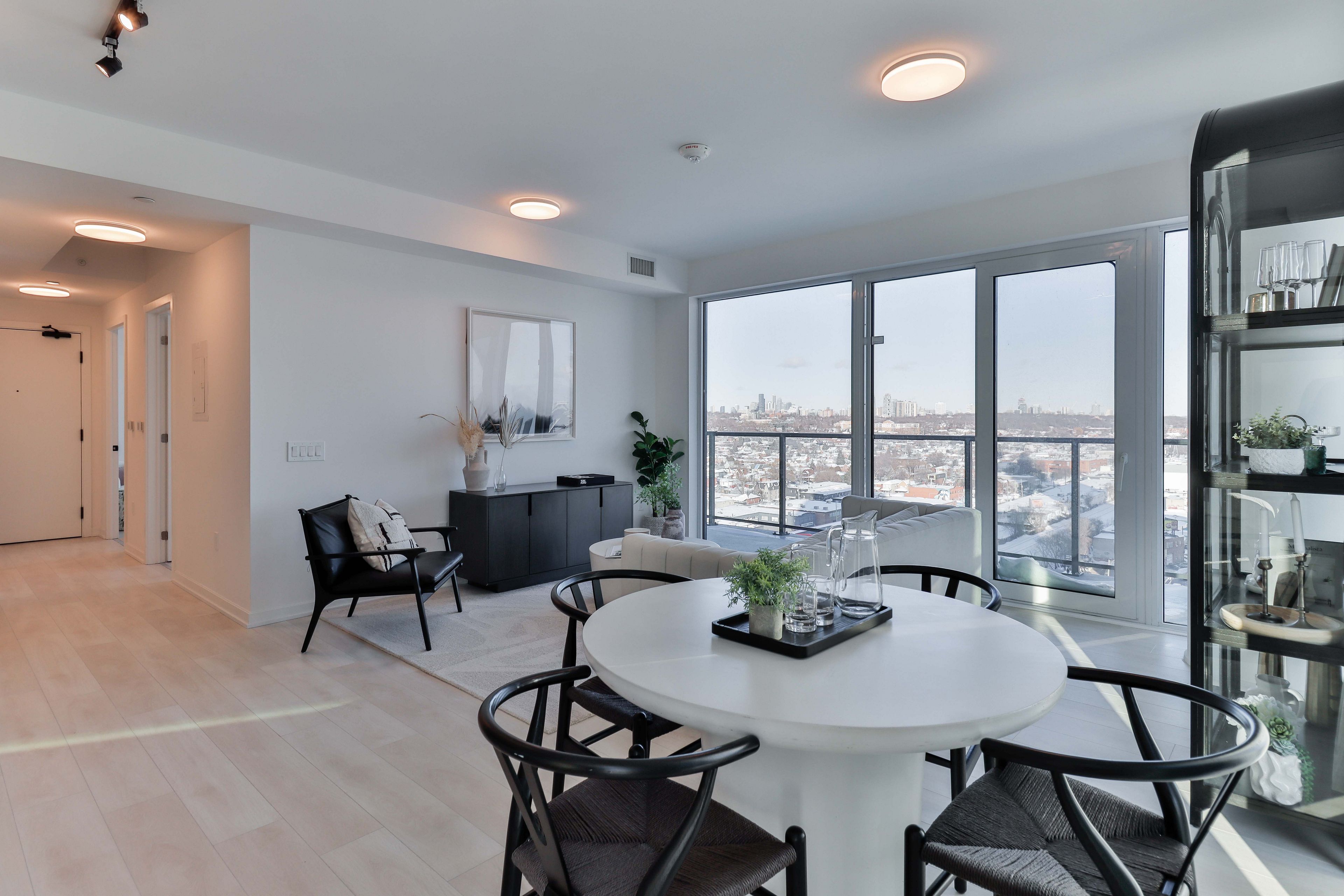 Welcome to this beautifully designed 3-bedroom + den! Offering 1,108 sq. Ft. Of thoughtfully planned interior space plus a 182 sq. Ft. South east-facing balcony, this home combines functionality with elevated modern design. Enjoy floor-to-ceiling windows, wide-plank laminate flooring throughout, and a sleek contemporary kitchen featuring integrated, panelled appliances. Residents have access to over 22,000 sq. Ft. Of world-class amenities, including a rooftop pool, 24-hour concierge, state-of-the-art fitness centre, kids' playroom, co-working lounge, theatre room, bbq stations, fire pits, and so much more. Nestled within a vibrant, one-of-a-kind master-planned community, you'll be surrounded by over 300,000 sq. Ft. Of brand new retail and commercial space, a new 8-acre park, and a 90,000+ sq. Ft. Community centre currently under construction. Enjoy the convenience of multiple ttc stops, easy access to grocery stores, and the lively restaurants and bars along geary avenue, all while being moments from bloor street, the junction, the annex, and ossington.