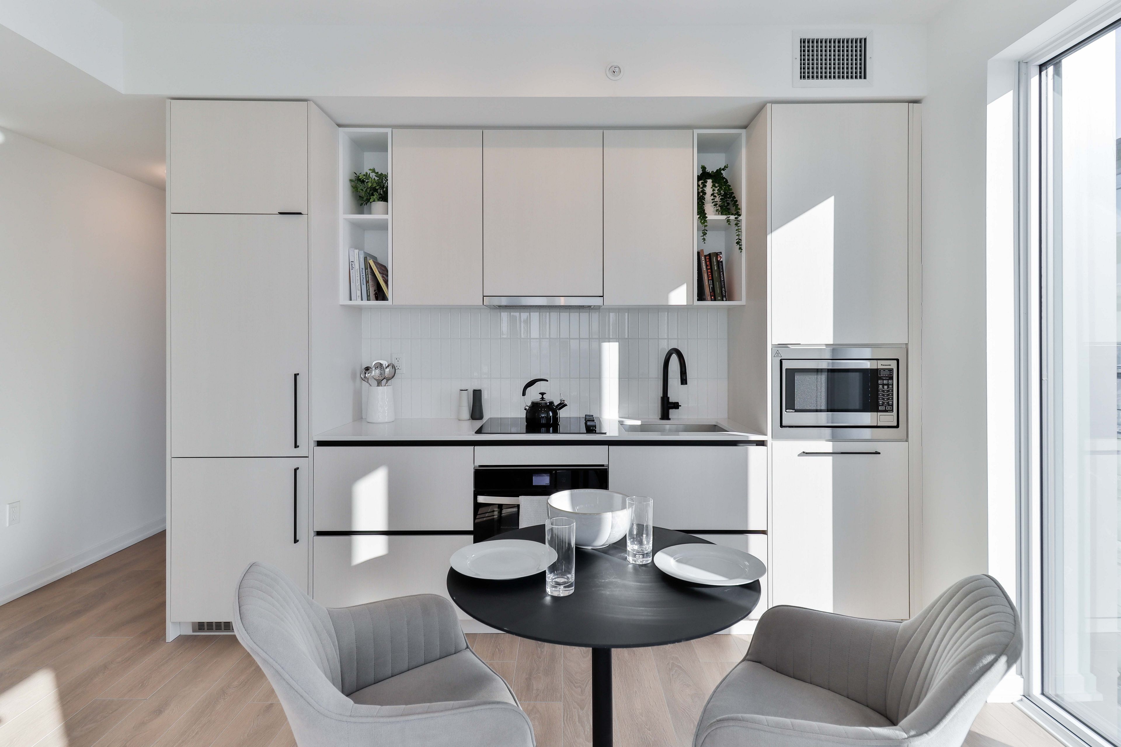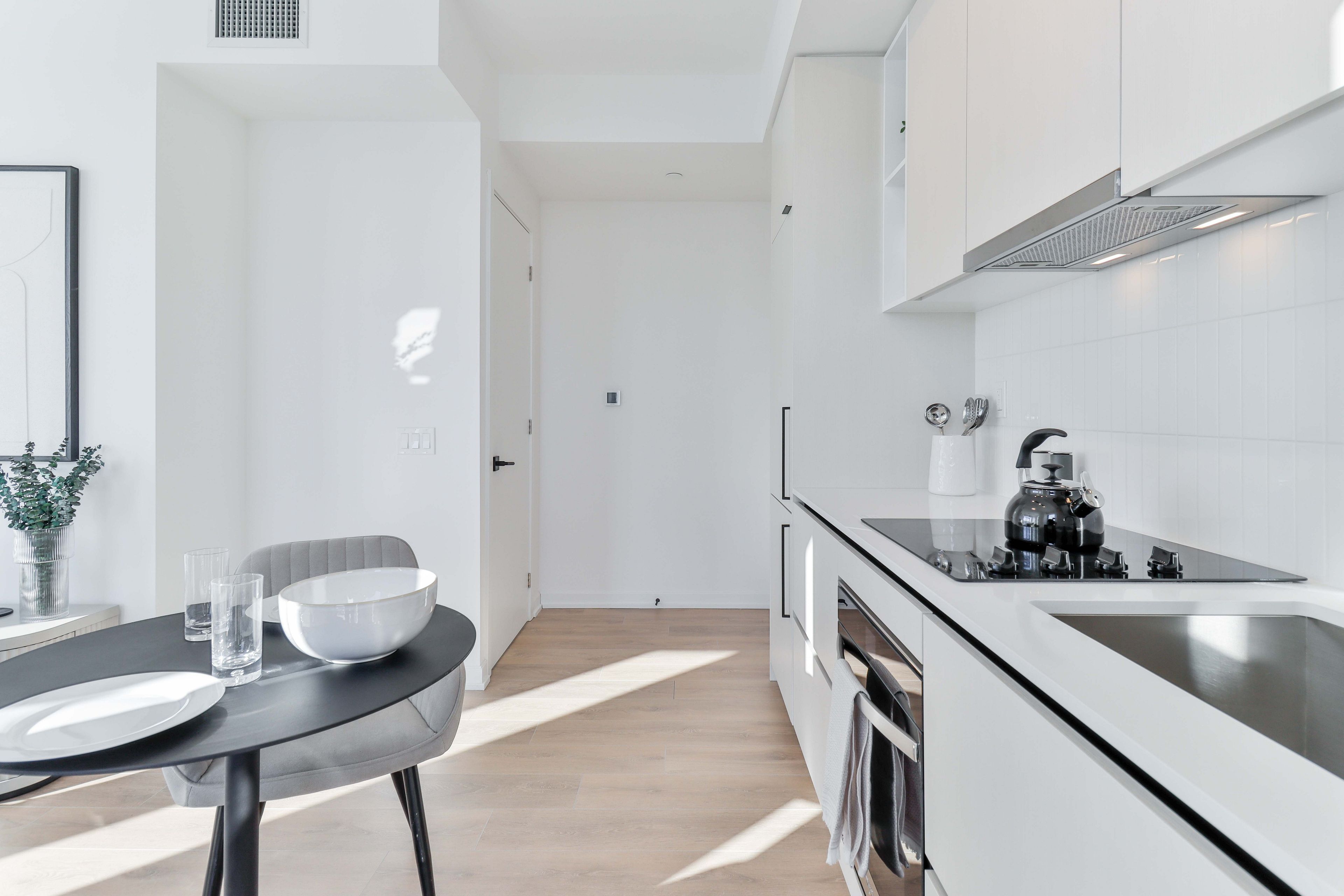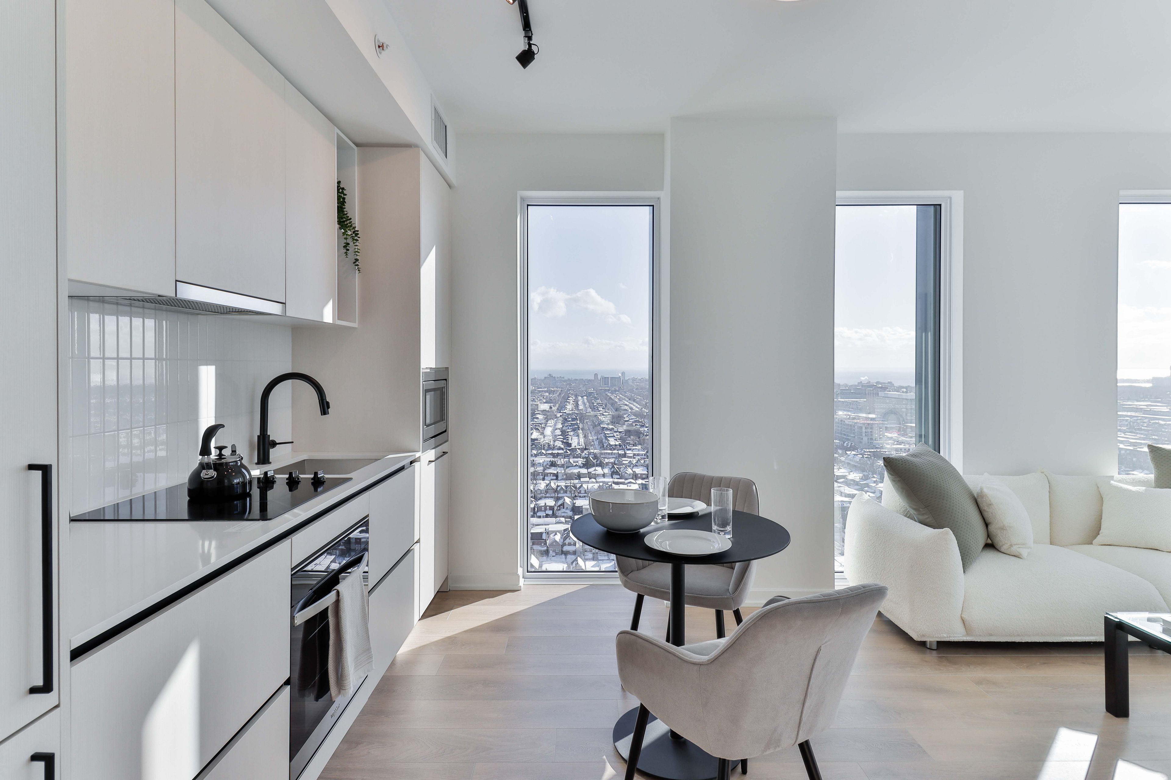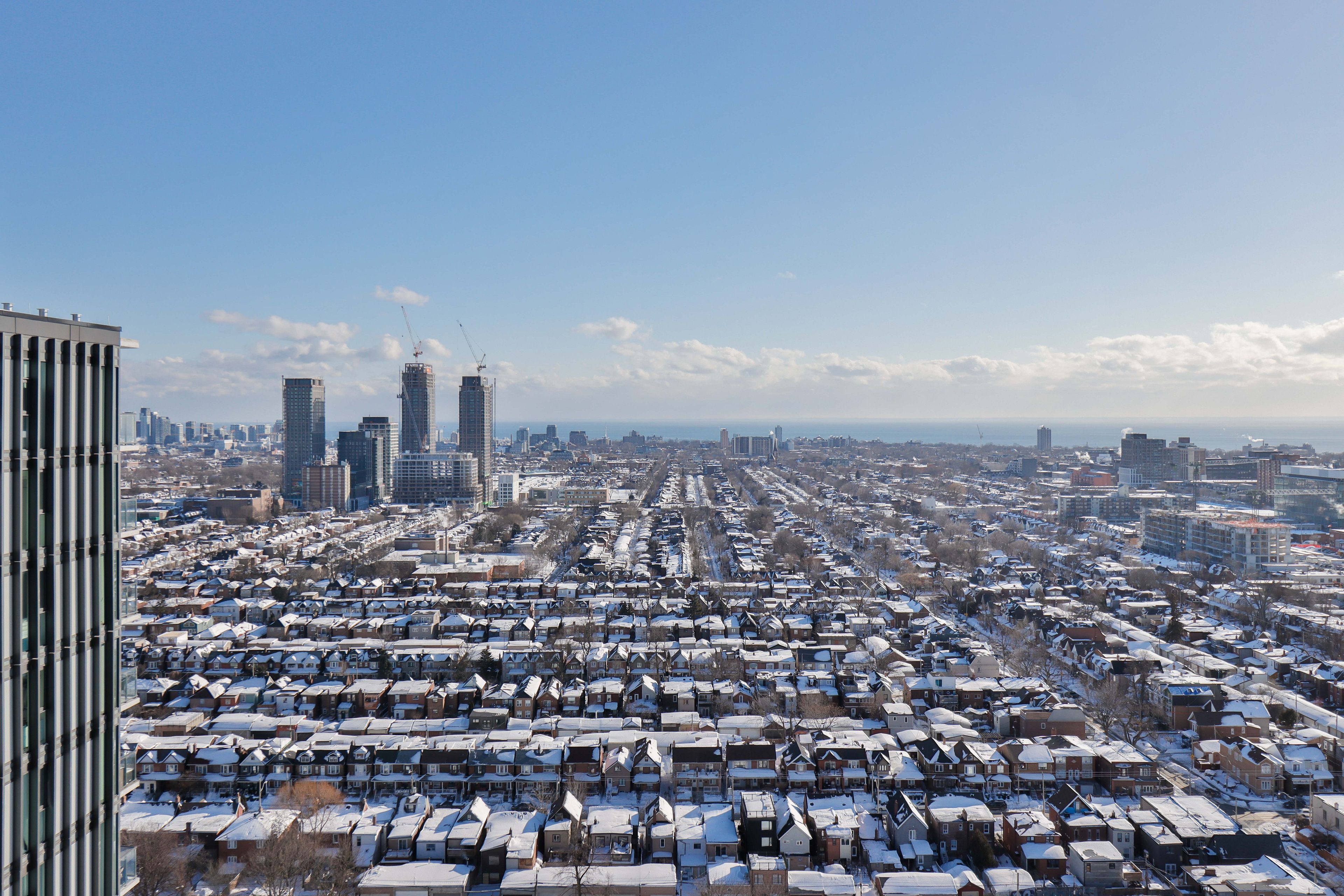Welcome to this beautifully designed 2-bedroom suite! Offering 708 sq. Ft. Of thoughtfully planned interior space plus a 104 sq. Ft. South west-facing balcony, this home combines functionality with elevated modern design. Enjoy floor-to-ceiling windows, wide-plank laminate flooring throughout, and a sleek contemporary kitchen featuring integrated, panelled appliances. Residents have access to over 22,000 sq. Ft. Of world-class amenities, including a rooftop pool, 24-hour concierge, state-of-the-art fitness centre, kids' playroom, co-working lounge, theatre room, bbq stations, fire pits, and so much more. Nestled within a vibrant, one-of-a-kind master-planned community, you'll be surrounded by over 300,000 sq. Ft. Of brand new retail and commercial space, a new 8-acre park, and a 90,000+ sq. Ft. Community centre currently under construction. Enjoy the convenience of multiple ttc stops, easy access to grocery stores, and the lively restaurants and bars along geary avenue, all while being moments from bloor street, the junction, the annex, and ossington.