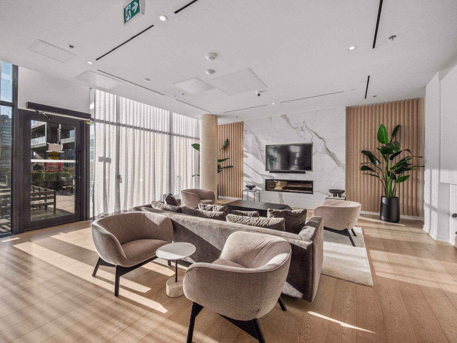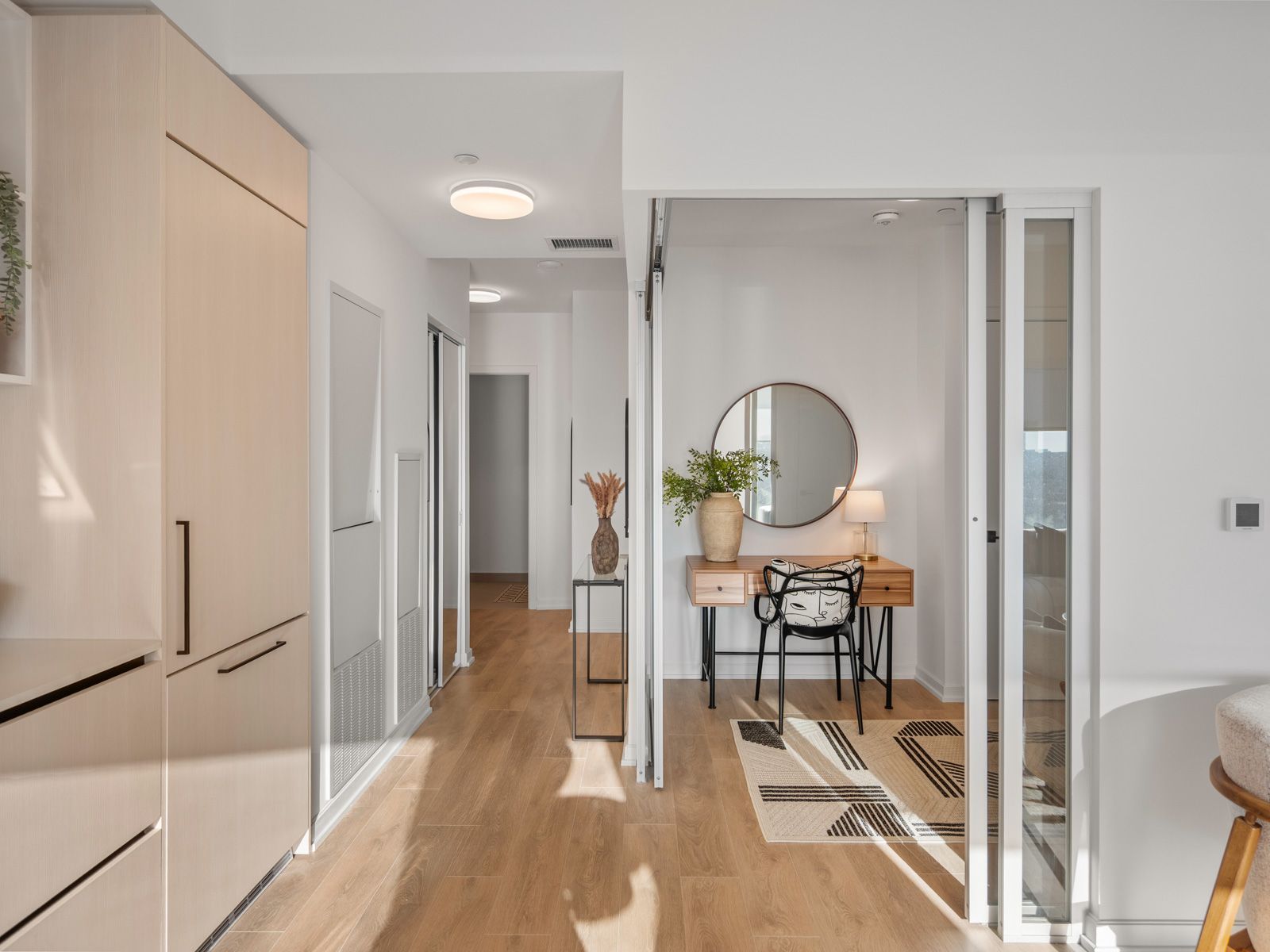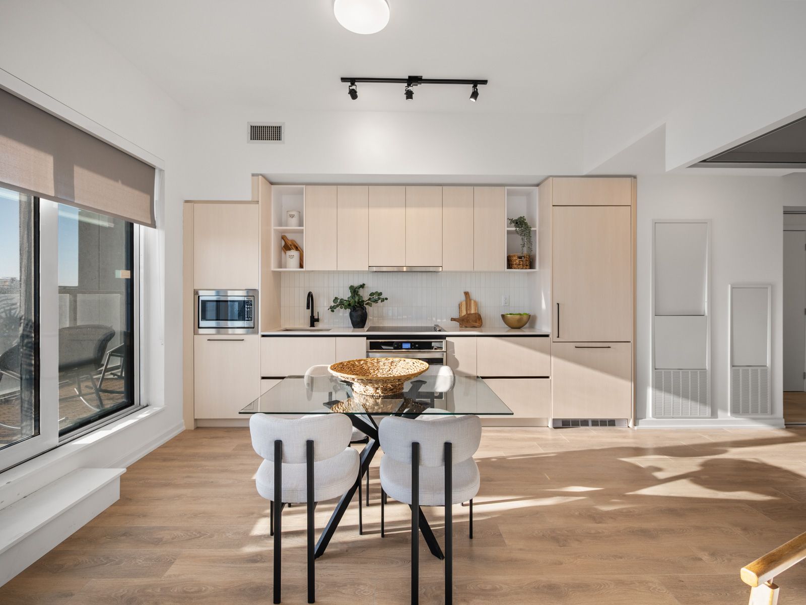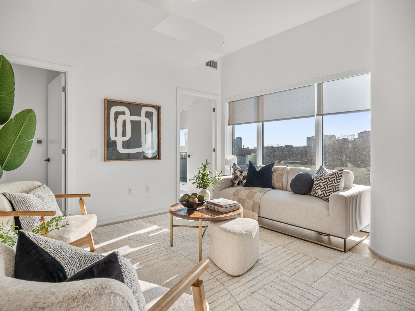 • Bright open-concept living area with large windows for natural light.