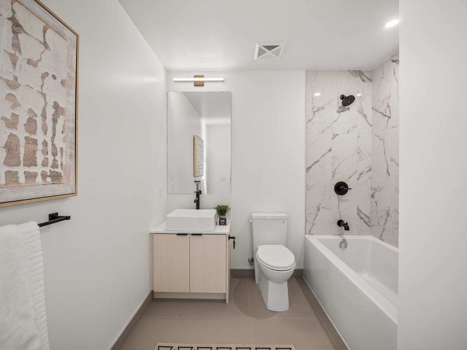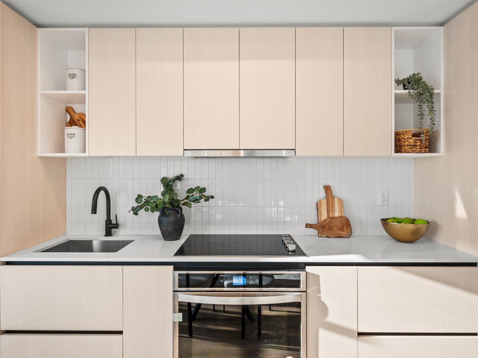 • Modern kitchen with integrated appliances and plenty of storage.